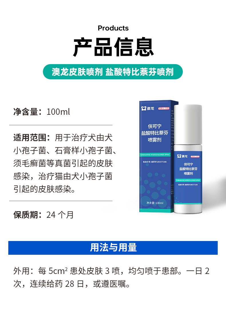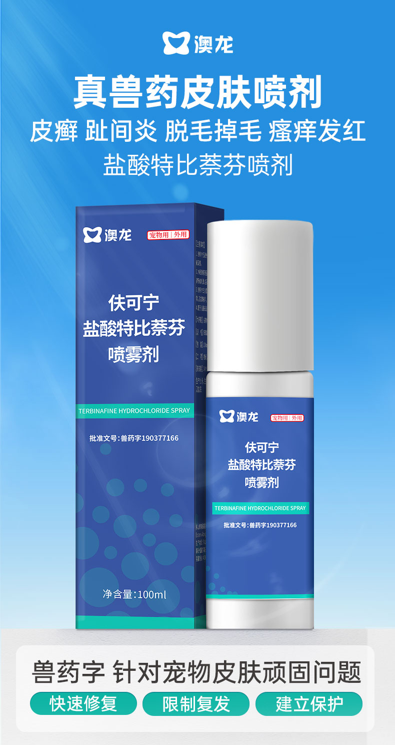 【澳龙】盐酸特比萘芬显克宁喷雾剂真菌感染狗狗猫咪宠物皮肤病猫癣药 皮肤喷剂1支