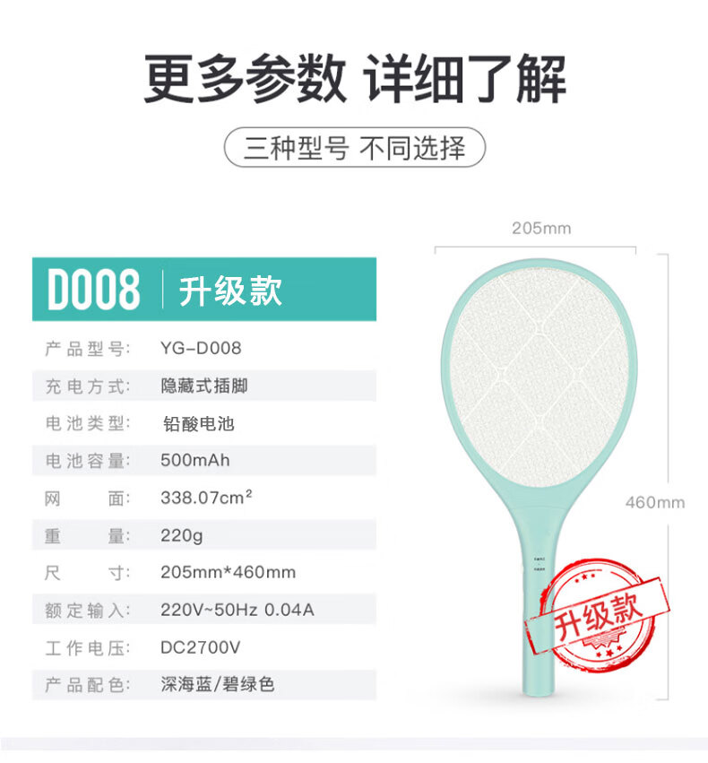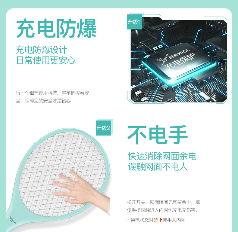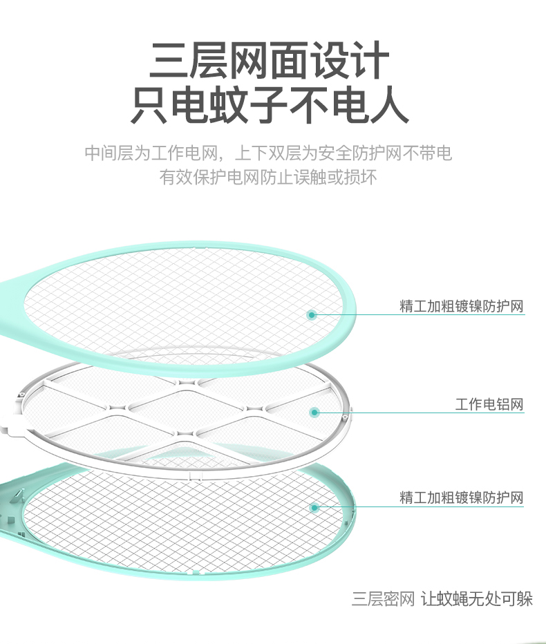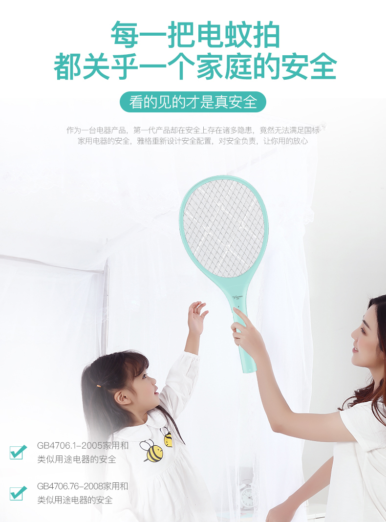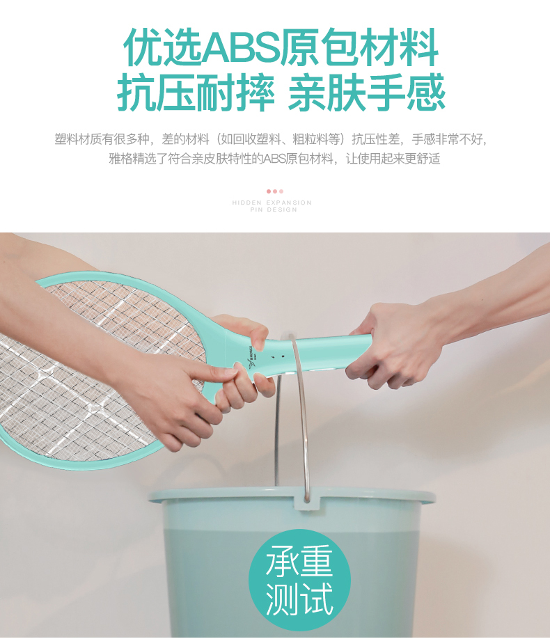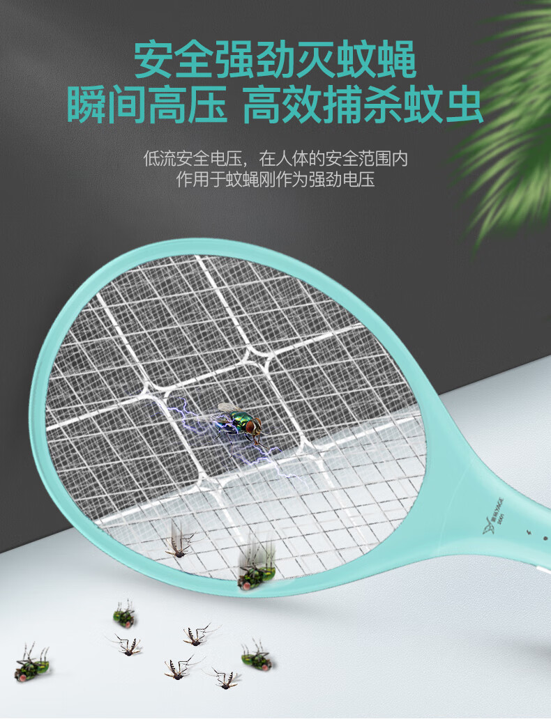 雅格 电蚊拍灭蚊拍充电式苍蝇拍灭蝇拍驱蚊灭蚊器三层网面D008
