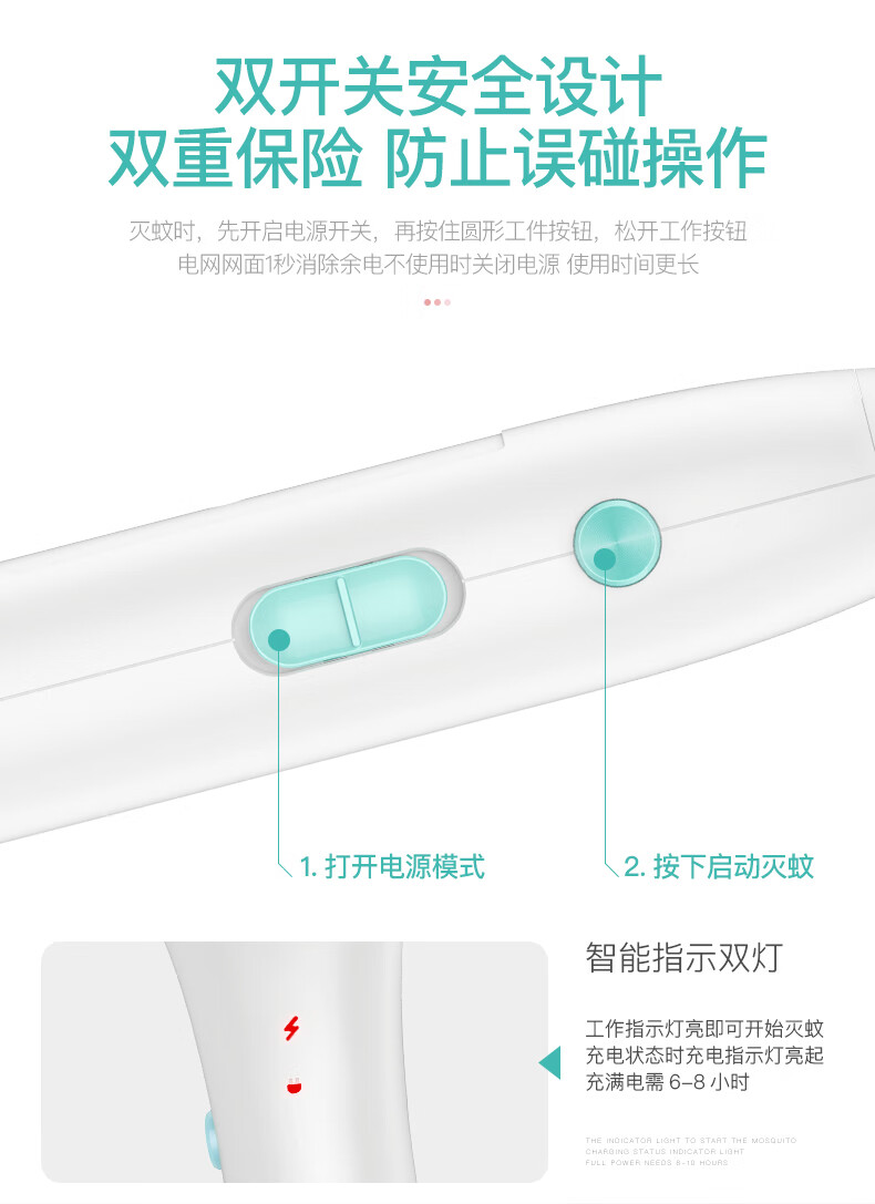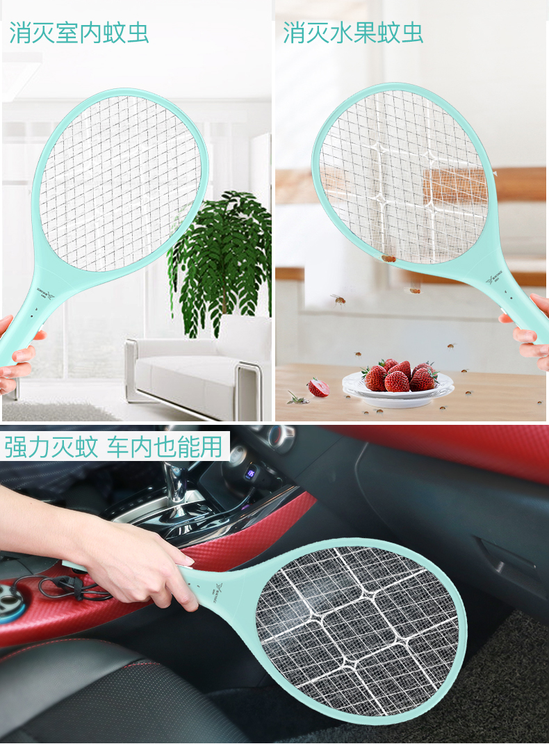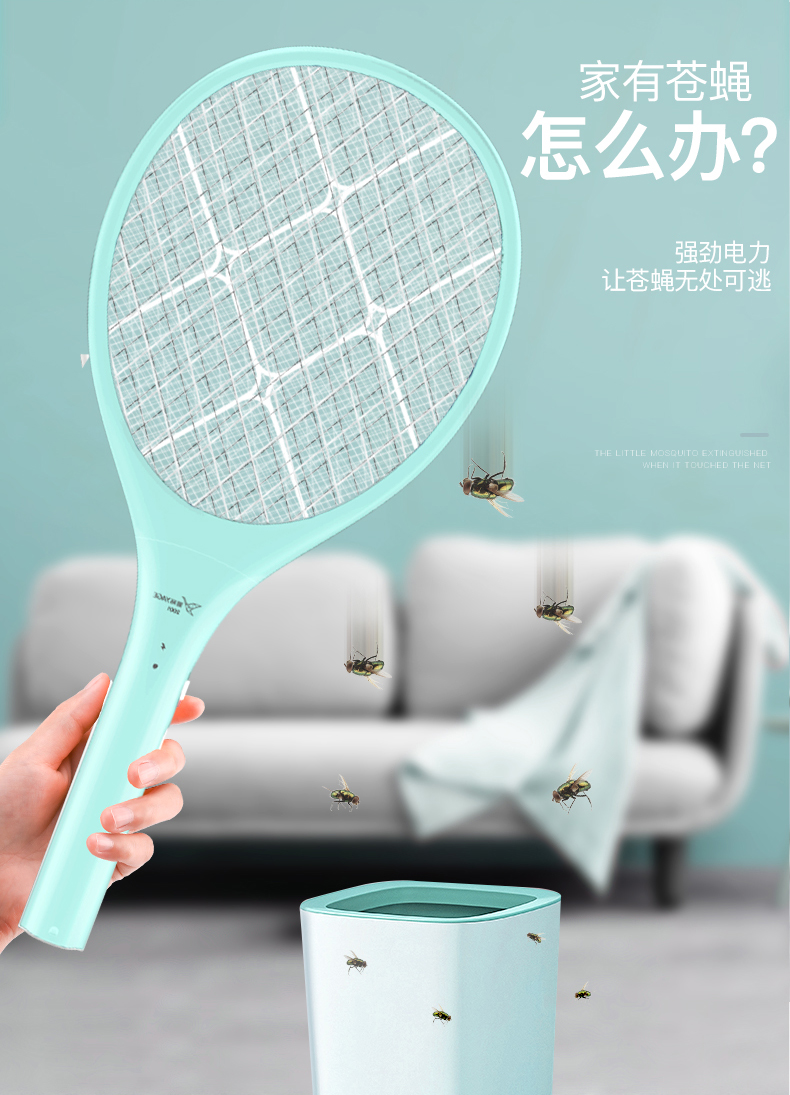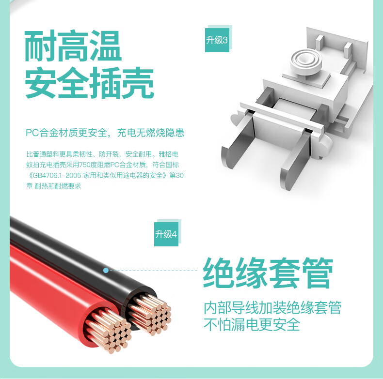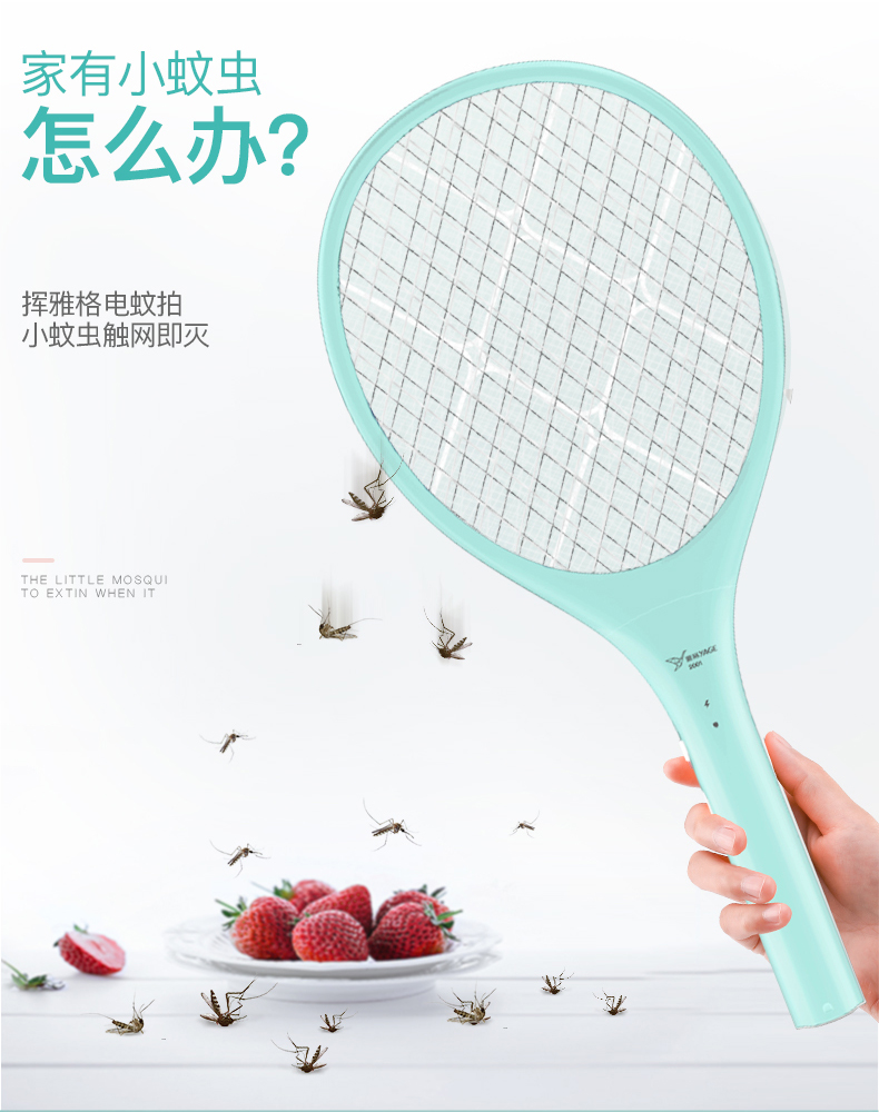 雅格 电蚊拍灭蚊拍充电式苍蝇拍灭蝇拍驱蚊灭蚊器三层网面D008
