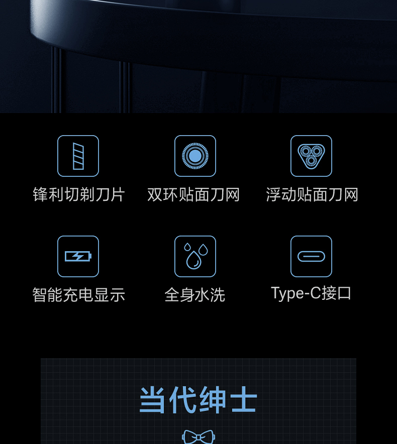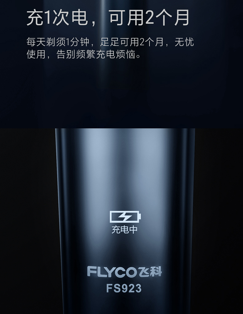 飞科(FLYCO)电动剃须刀 全身水洗刮胡刀 智能充电显示 男士电胡须刀 FS923魅力蓝