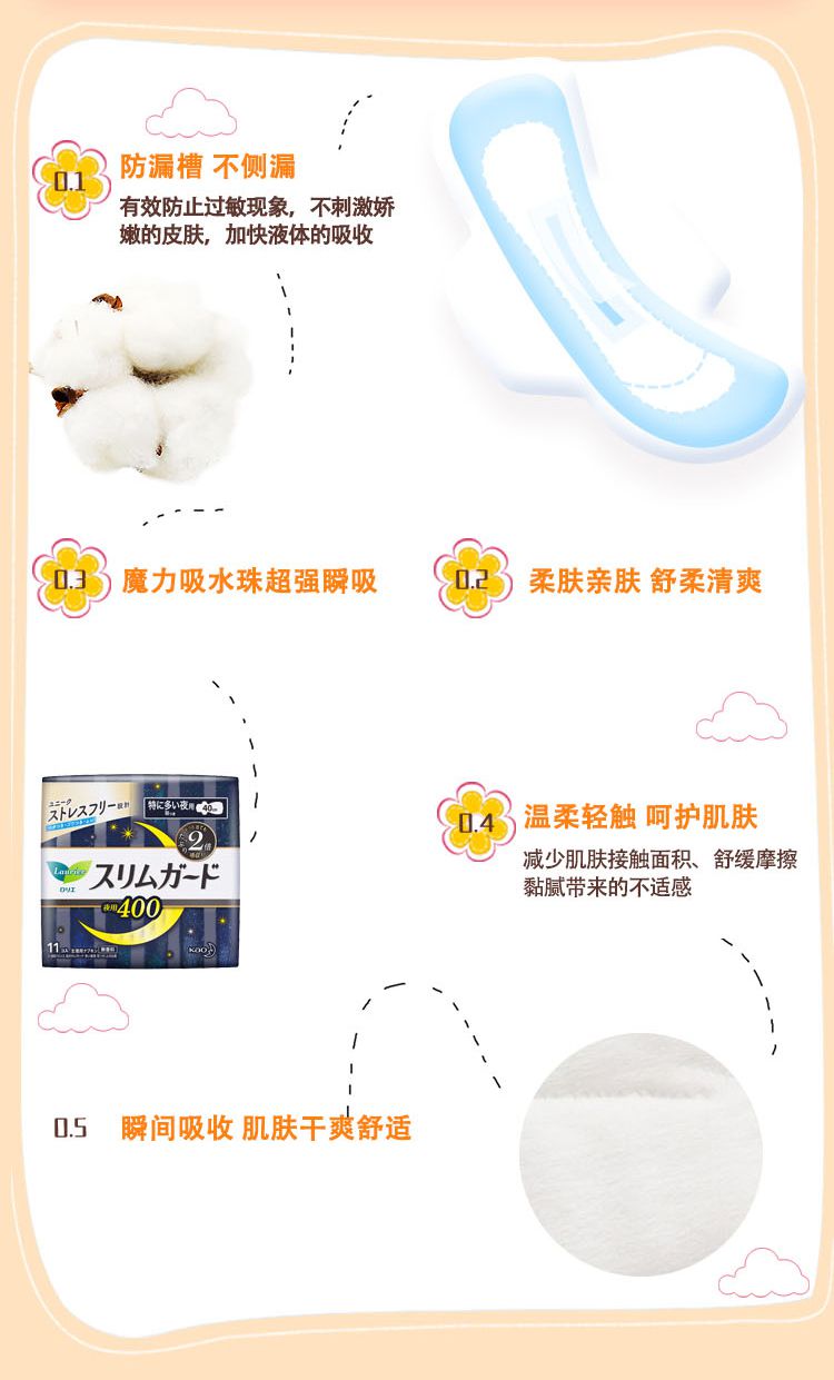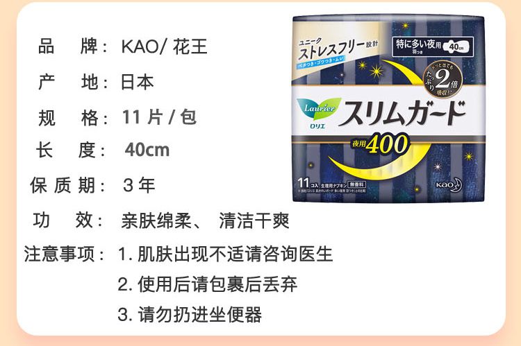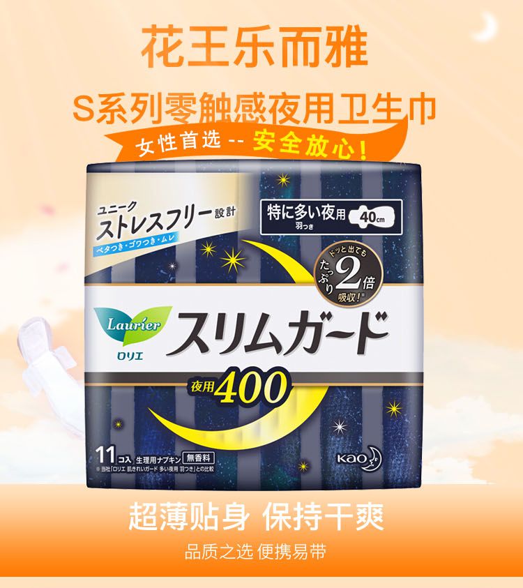 【3包装】KAO花王 乐而雅S系列超薄夜用卫生巾40cm*11片/包