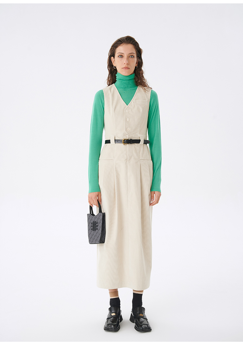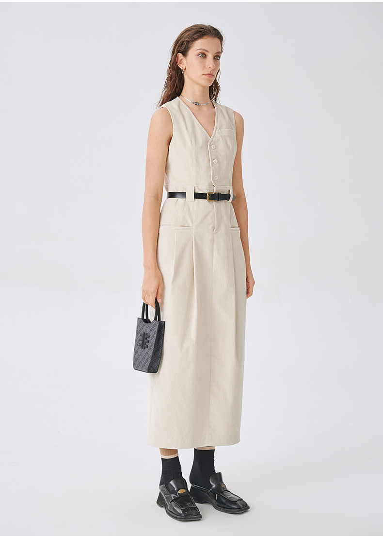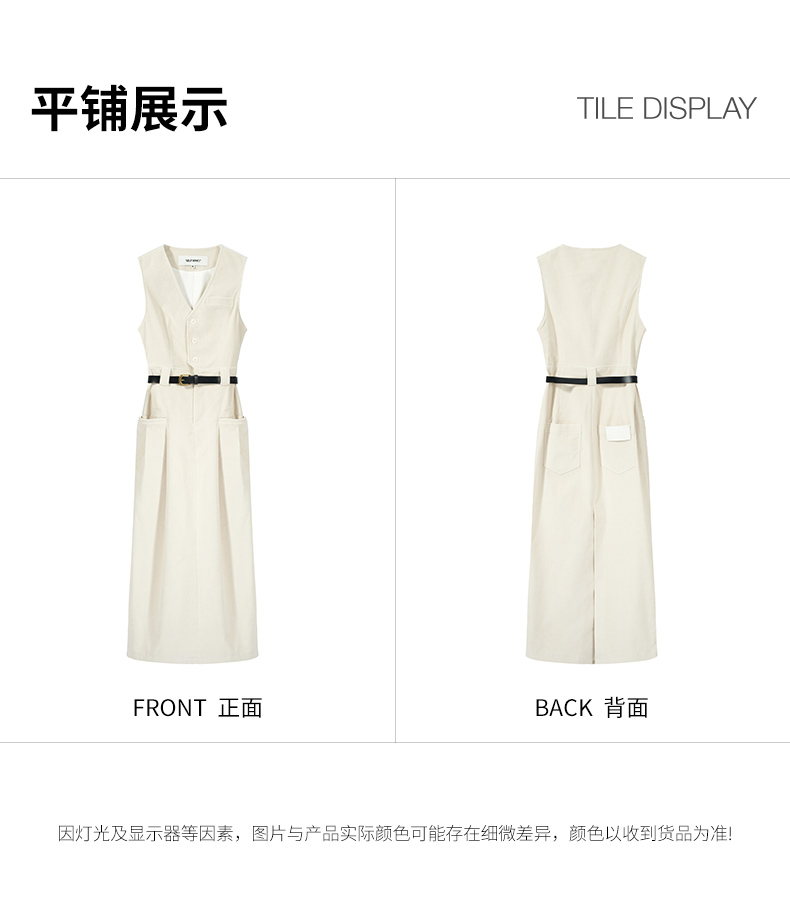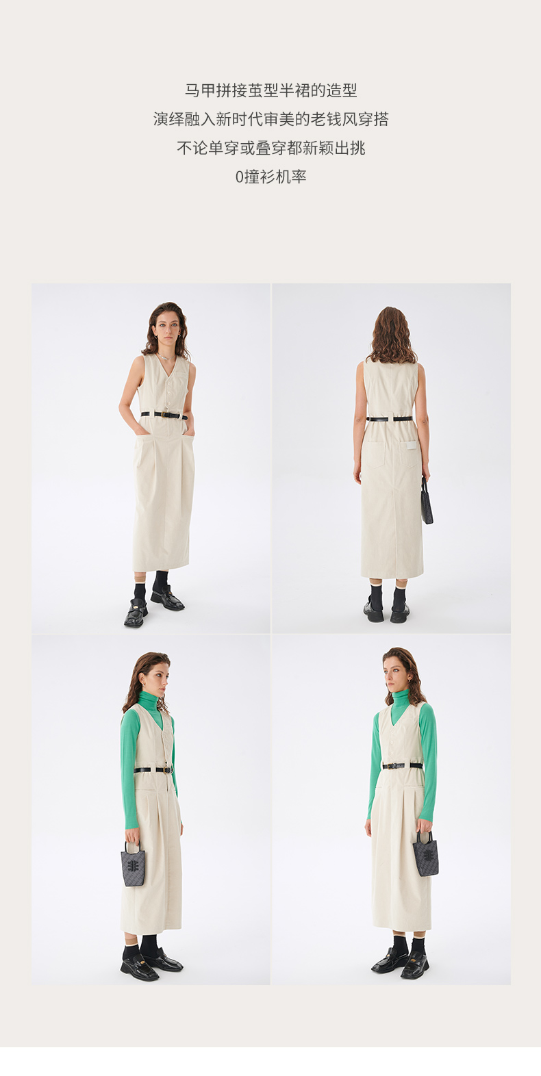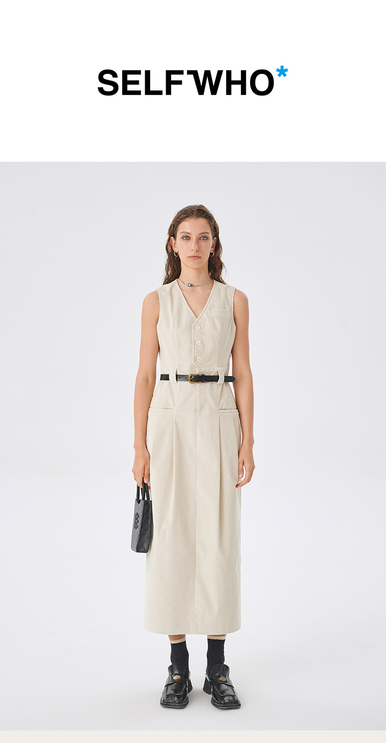 Self Who2023新款纯棉v领廓形显瘦半身裙子女茧型时髦马甲连衣裙