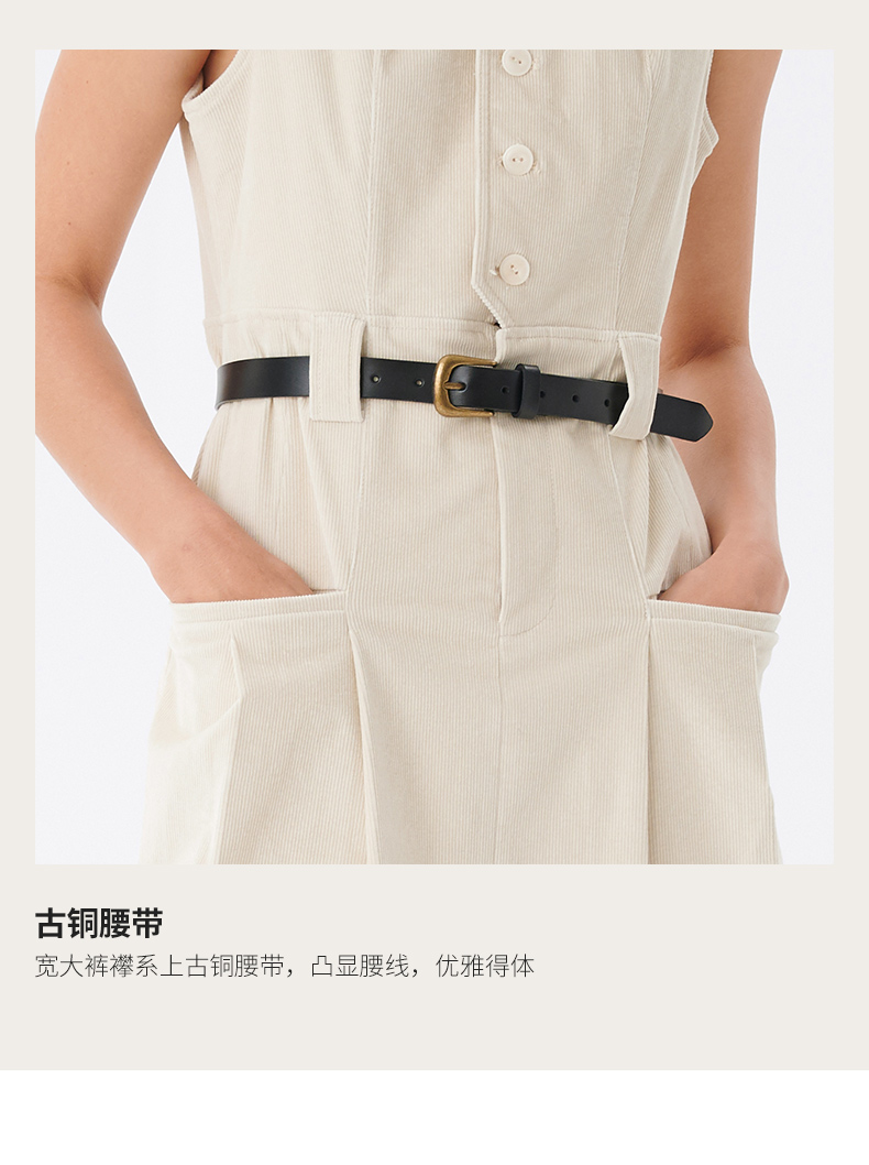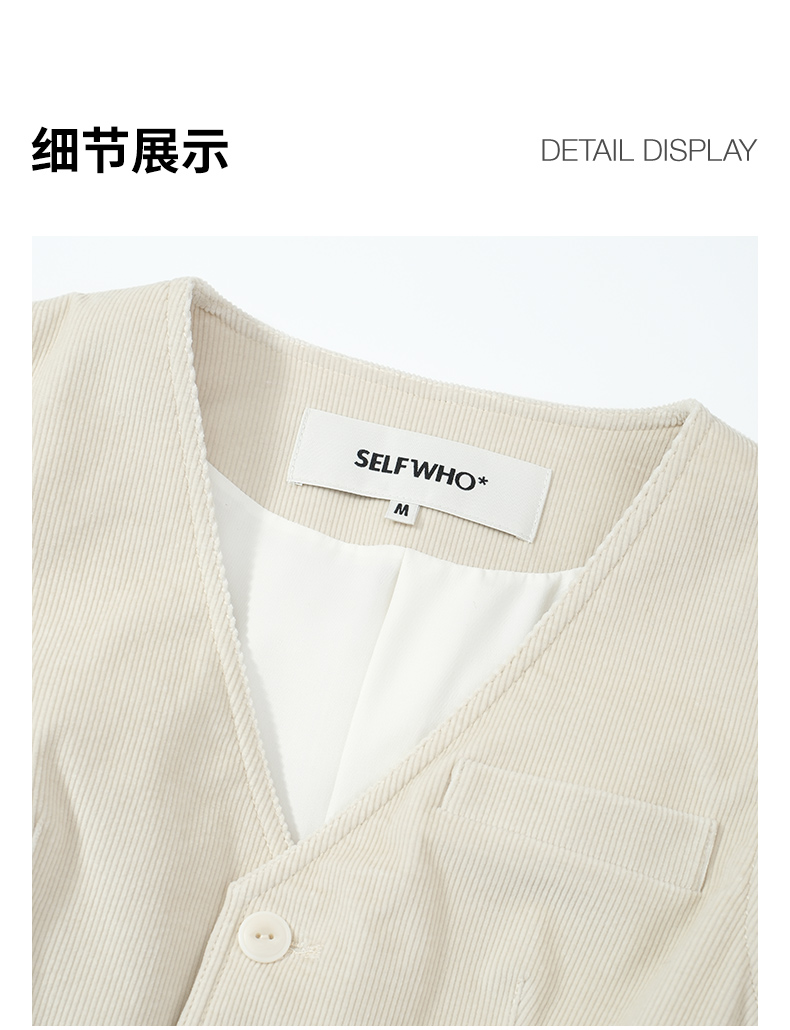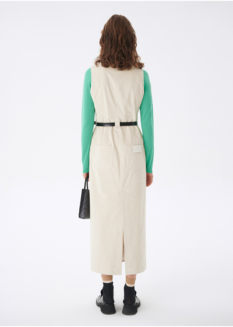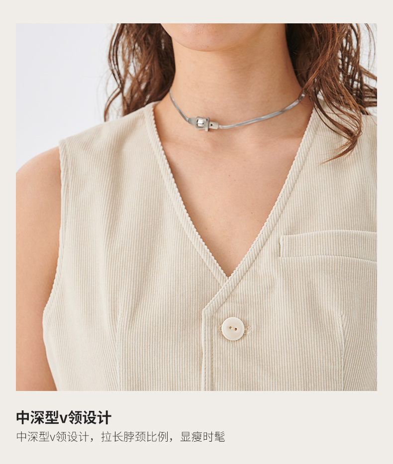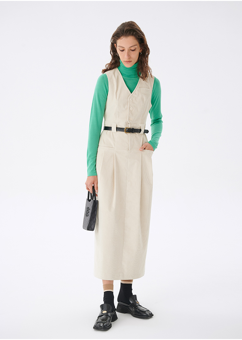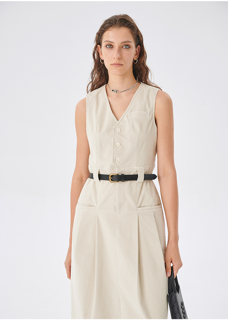 Self Who2023新款纯棉v领廓形显瘦半身裙子女茧型时髦马甲连衣裙