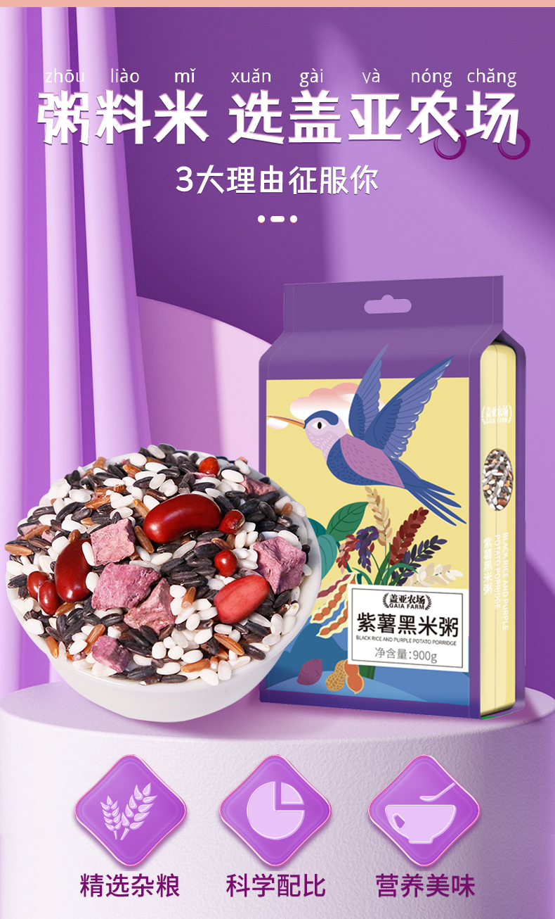 优选丨盖亚农场【内蒙古黄小米】1.25kg 盖亚农场-昌旺【有机五常大米】2.5kg 盖亚农场【紫薯黑米粥】900g