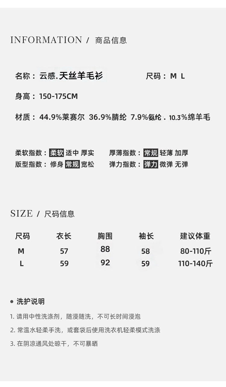 成分:44.9%莱赛尔 10.3%绵羊毛 36.9%腈纶7.9%氨纶