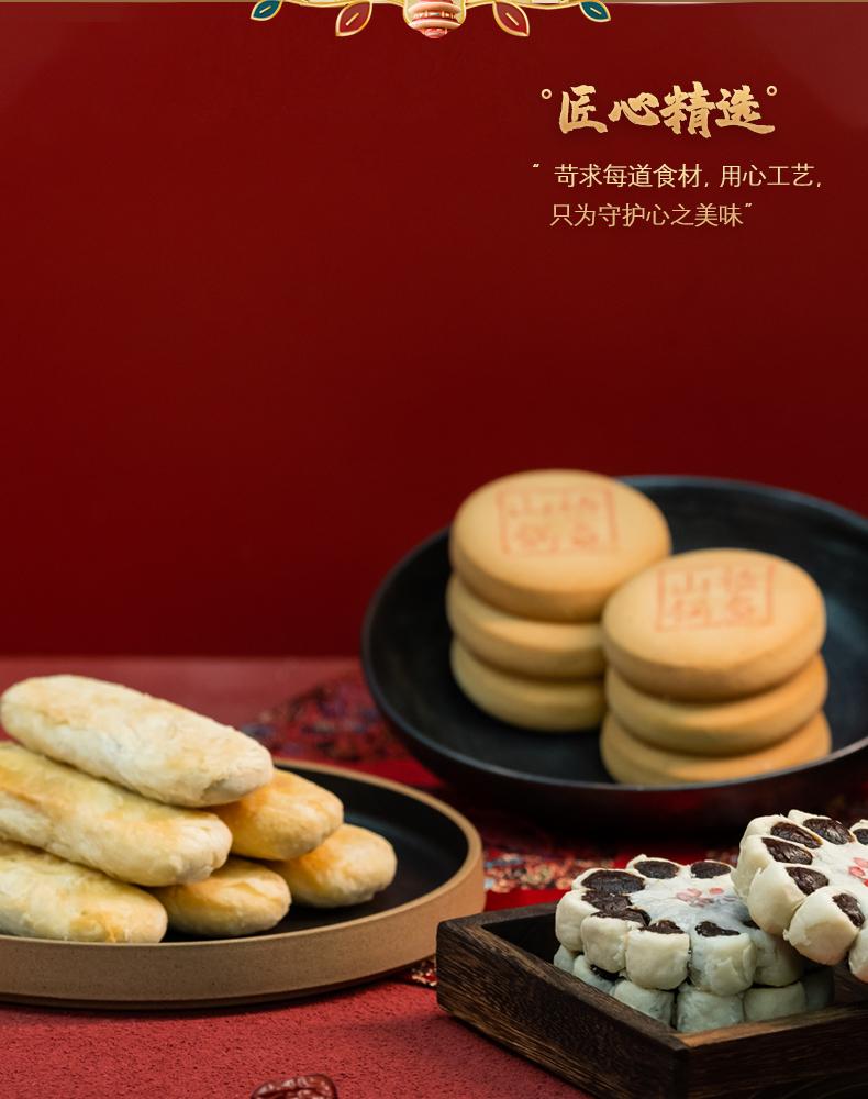 产品规格:牛舌饼*6/枣花酥*3/山楂锅盔*6/枣泥方酥*3