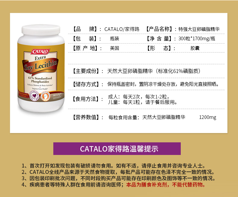 Catalo 家得路 进口浓缩大豆卵磷脂软胶囊 300粒 【 有效期:2026年3月】