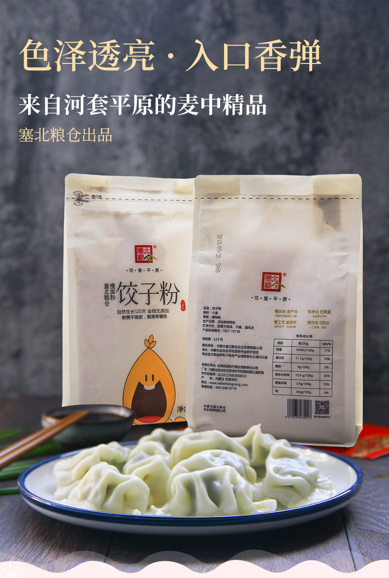 【塞北粮仓·饺子粉1kg 两包送大米500g】 无添加小麦麦芯粉饺子馄饨儿童家庭多用途面粉