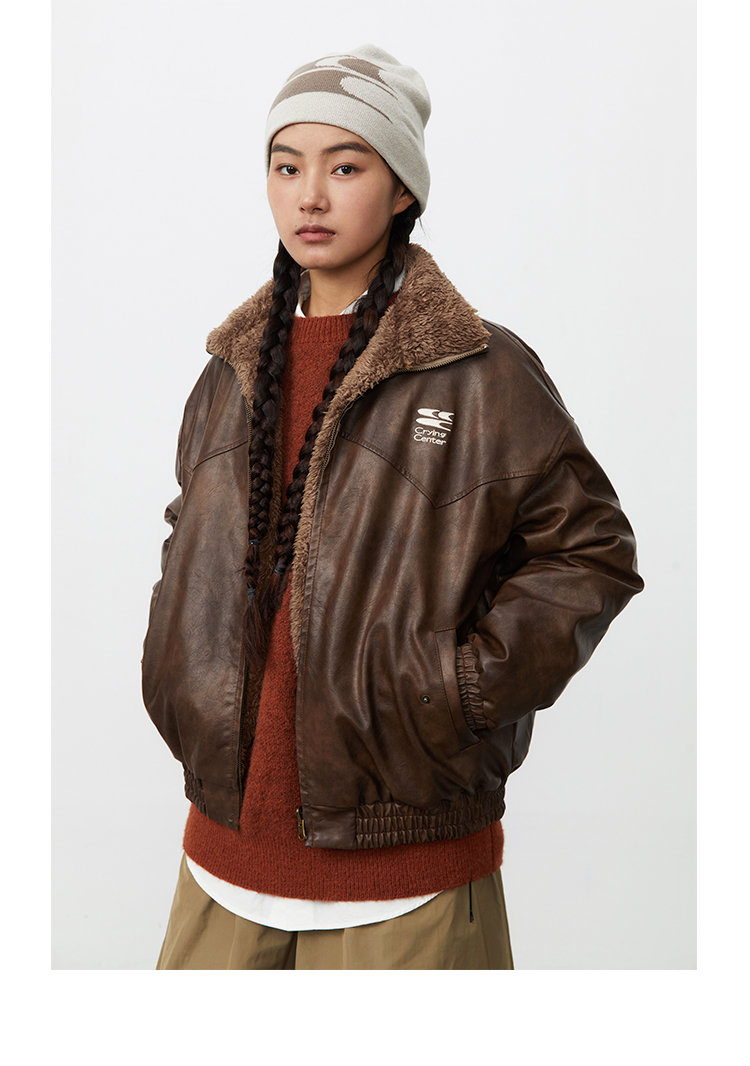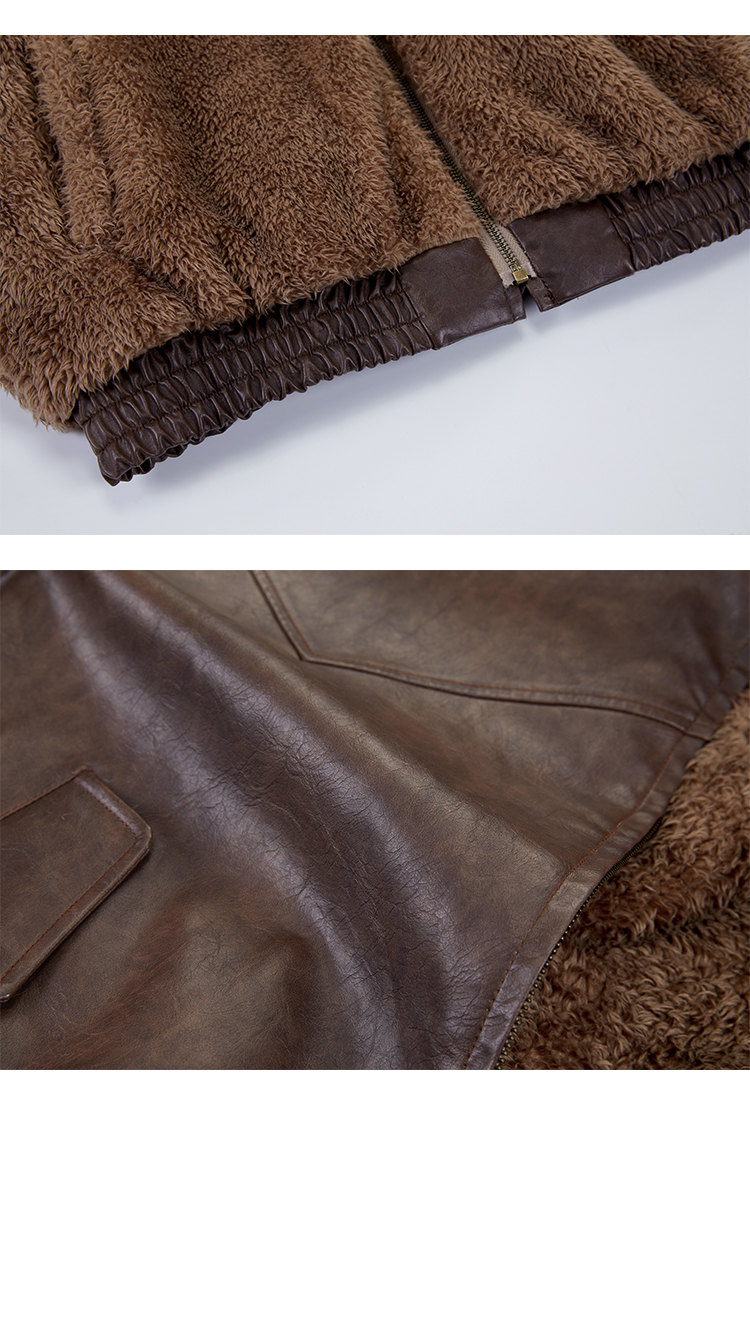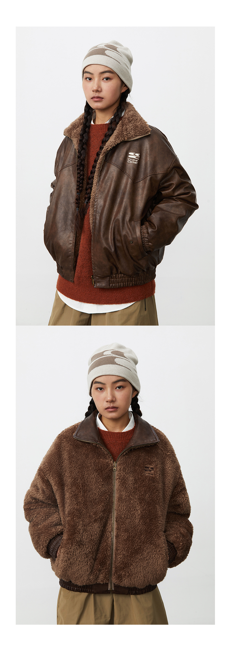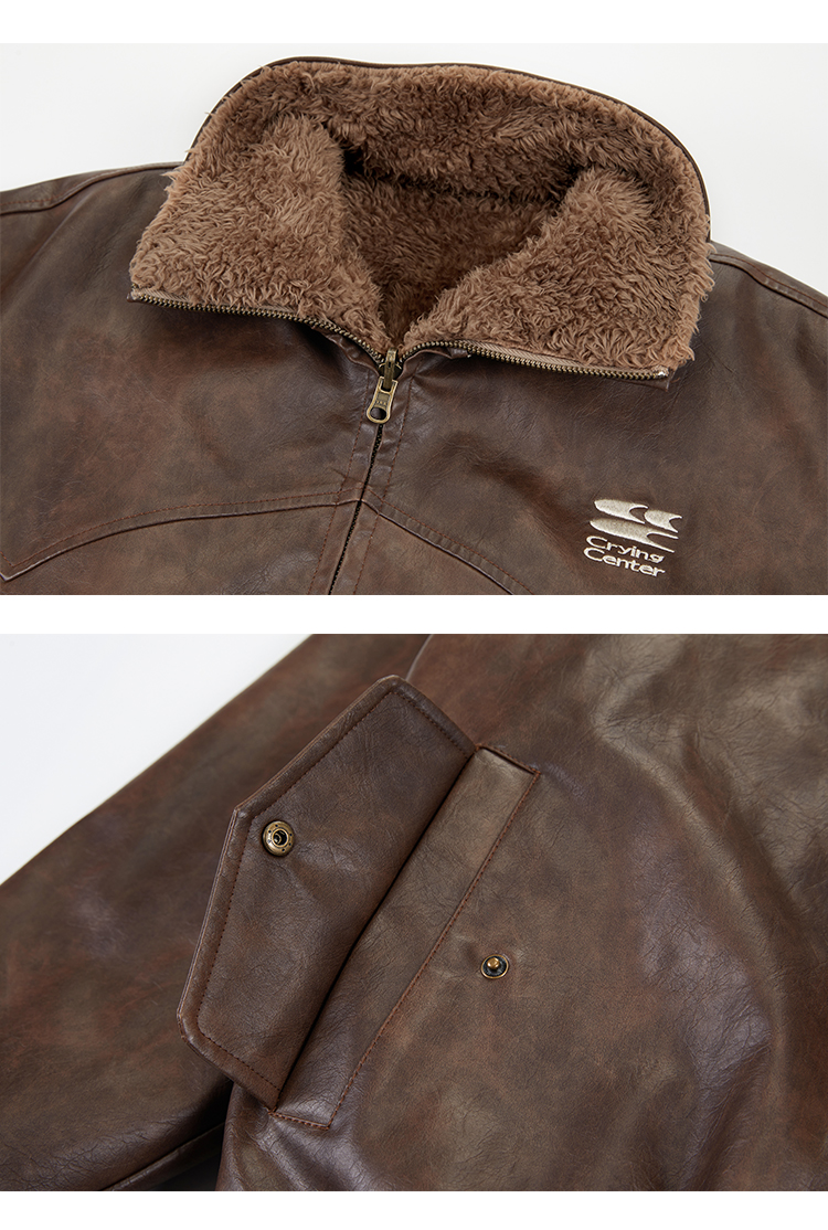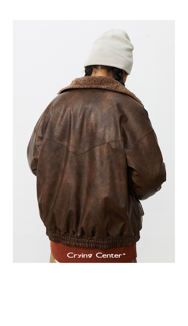 CryingCenter 棕色美拉德皮毛做旧感夹克外套 正反可穿哭喊中心