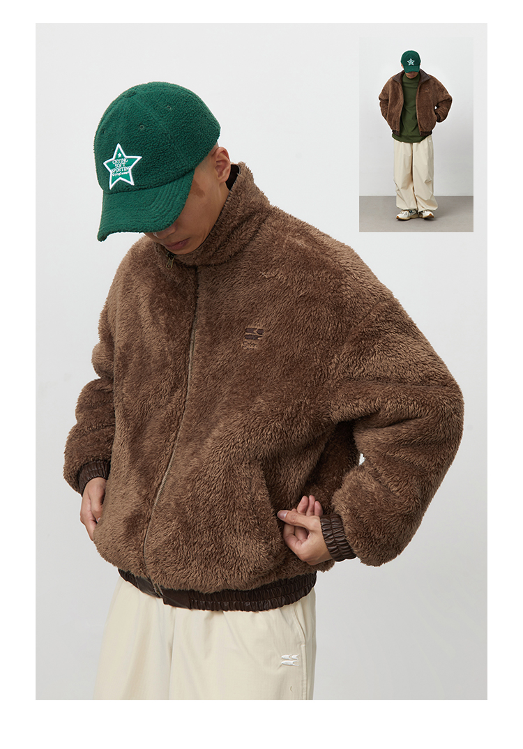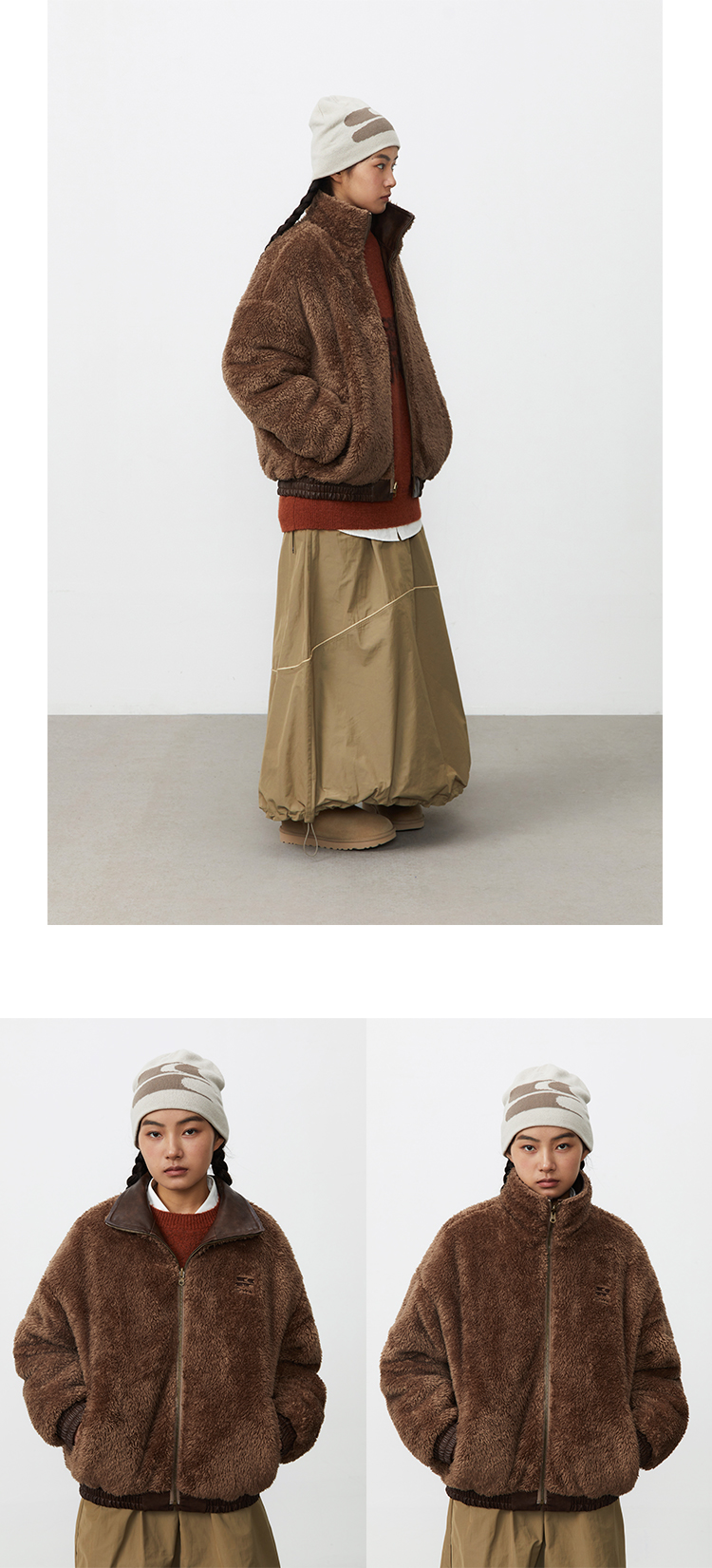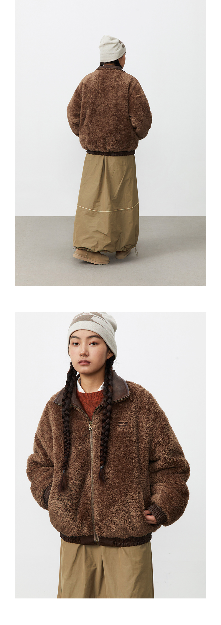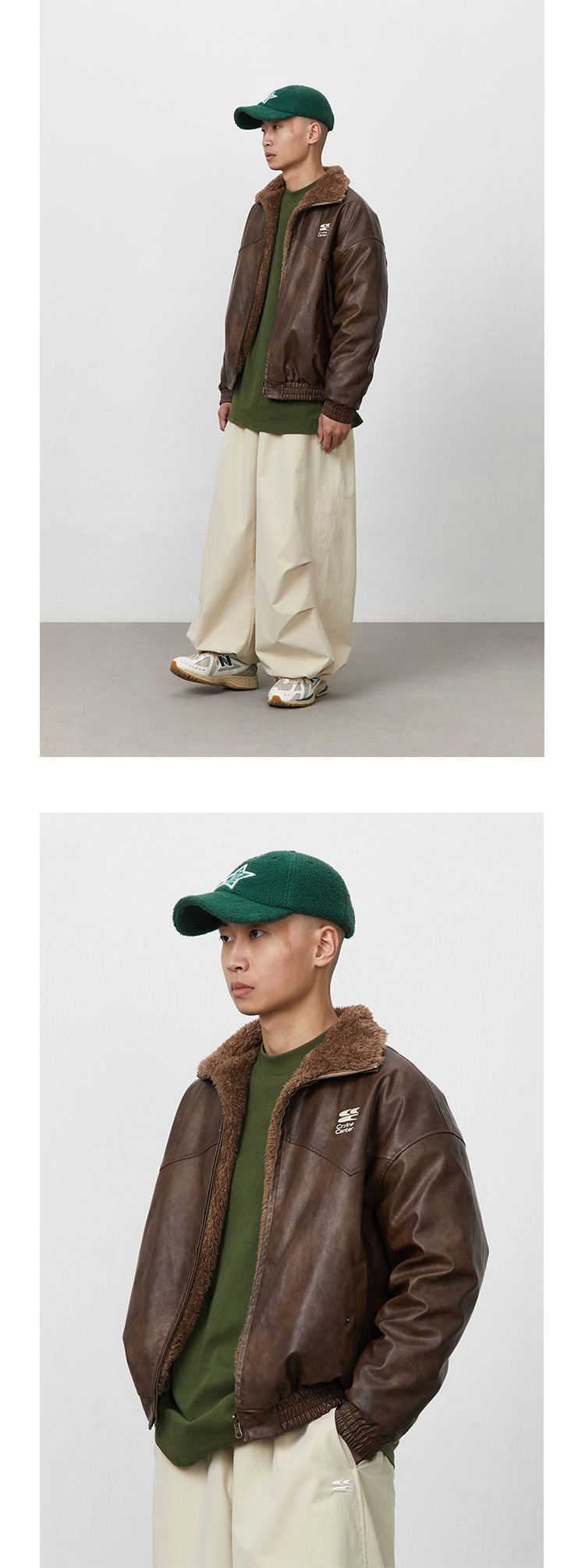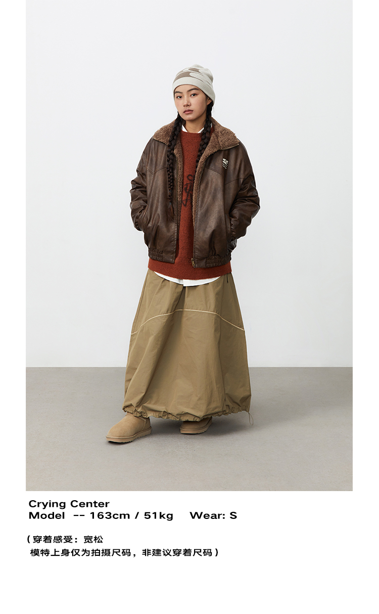 CryingCenter 棕色美拉德皮毛做旧感夹克外套 正反可穿哭喊中心