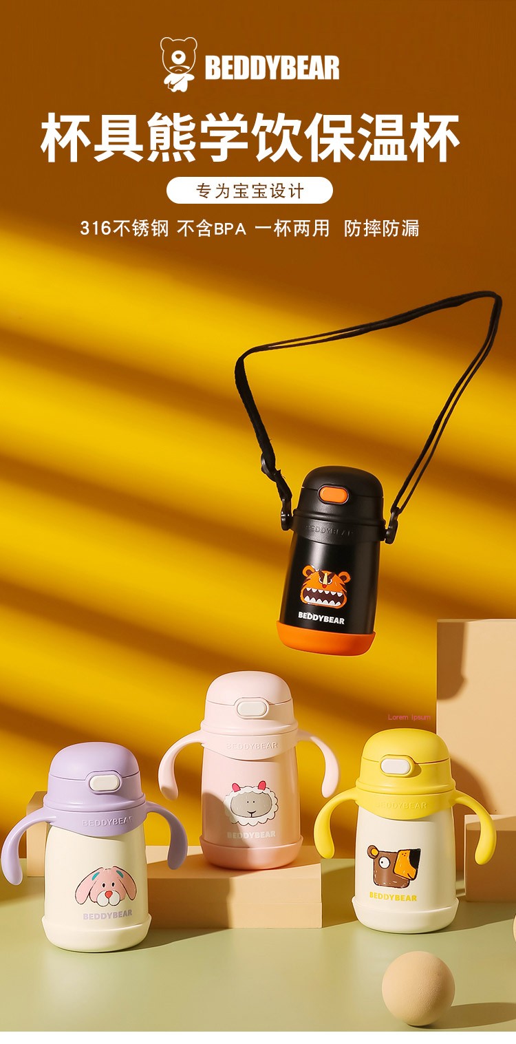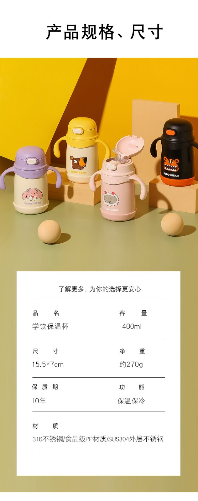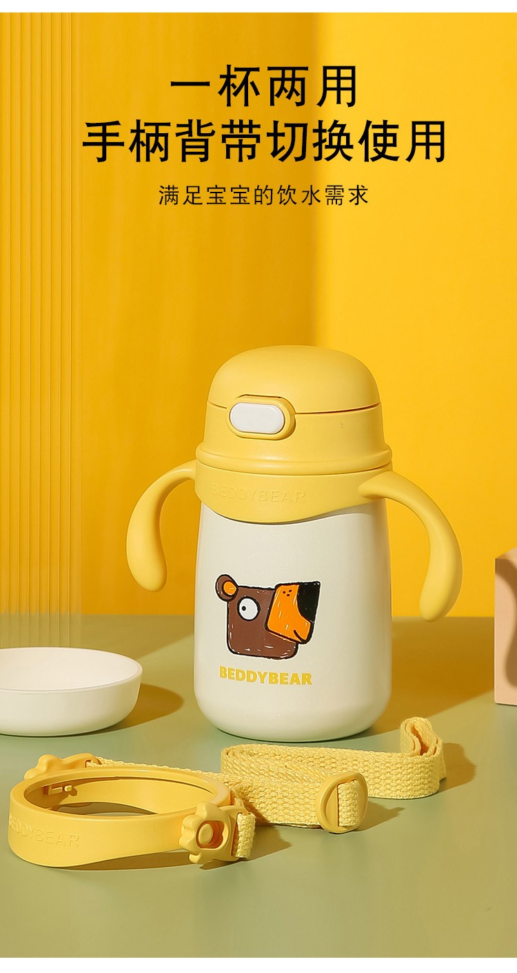 BEDDYBEAR杯具熊 一杯两用学饮保温杯儿童卡通吸管杯背带水瓶 400ml