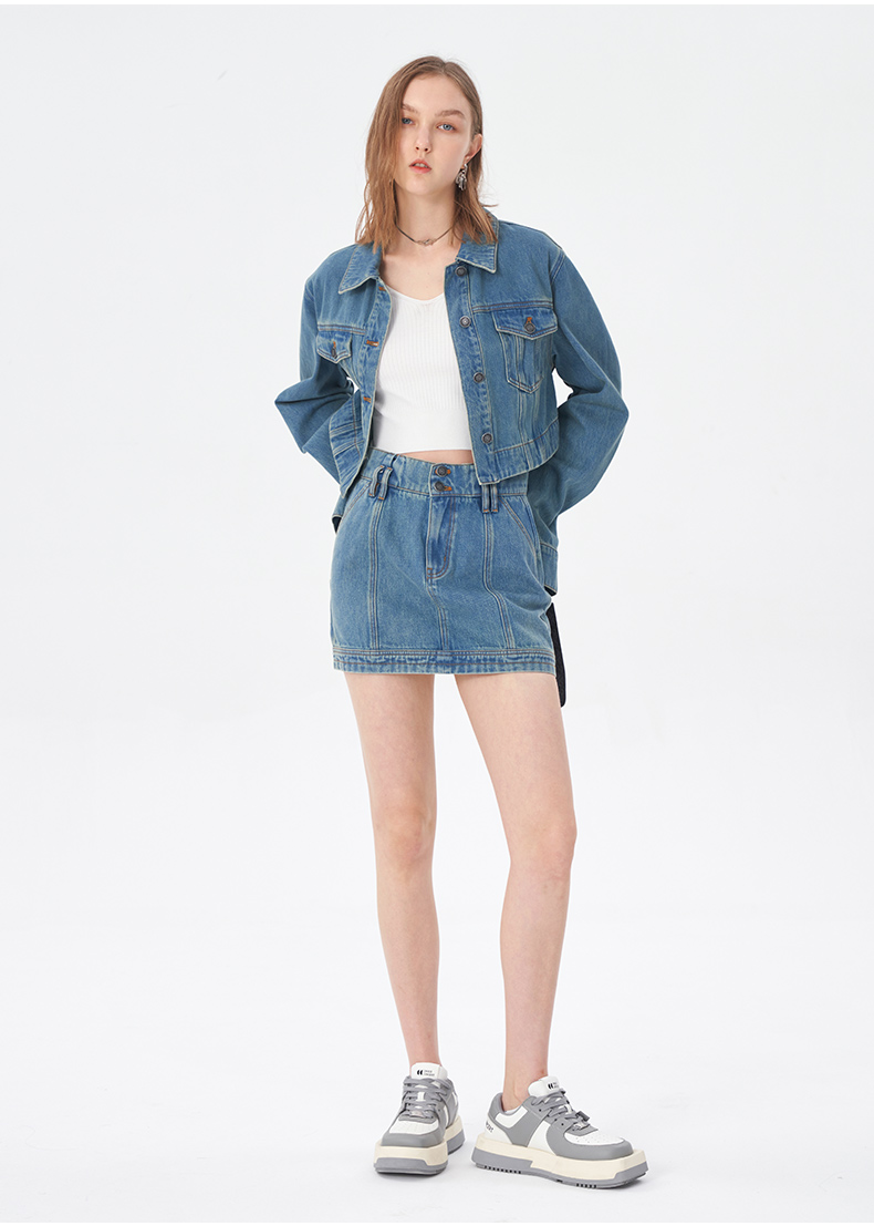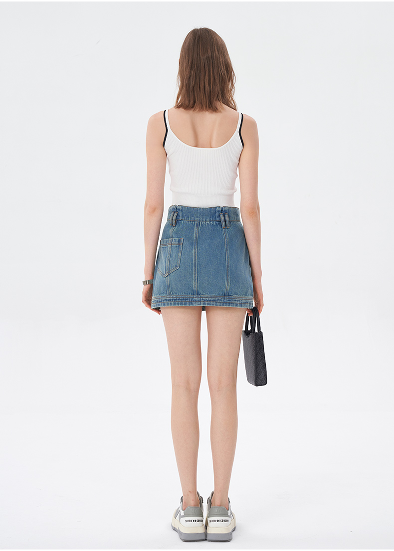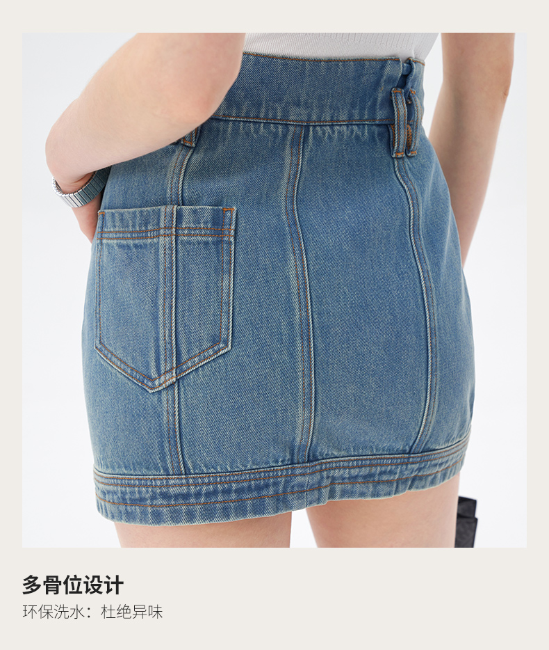 Self Who2023新款纯棉定制蓝灰绿洗水牛仔半身裙活力气质通勤裙子