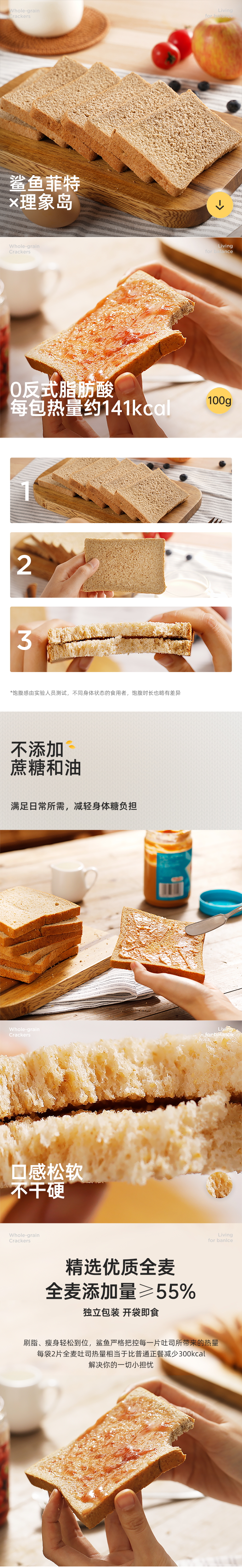 鲨鱼菲特低脂吐司面包1000g (原味麦香&黑麦)