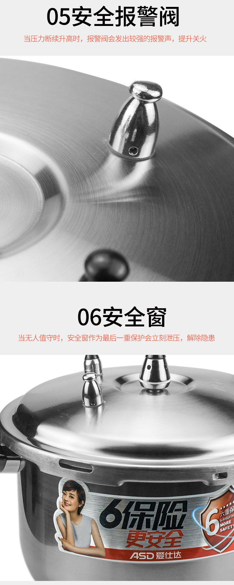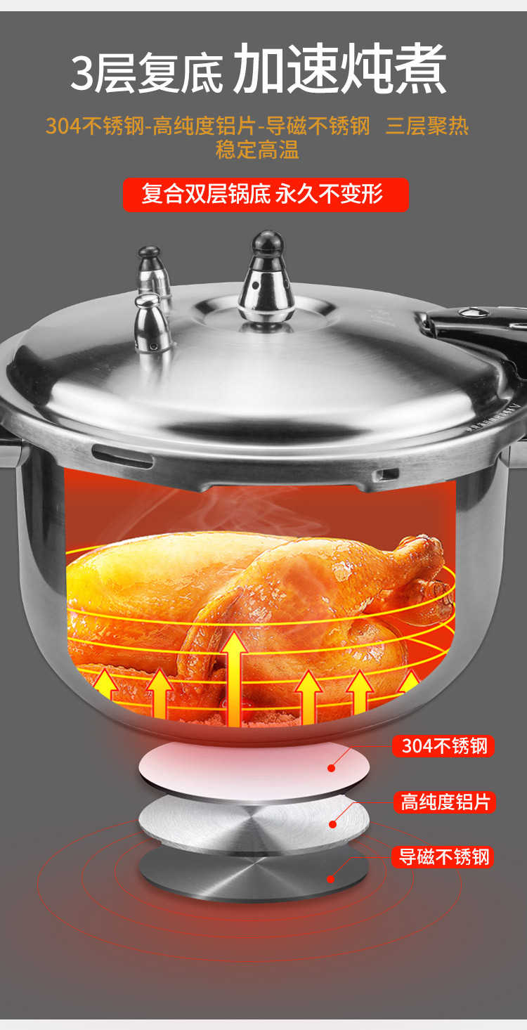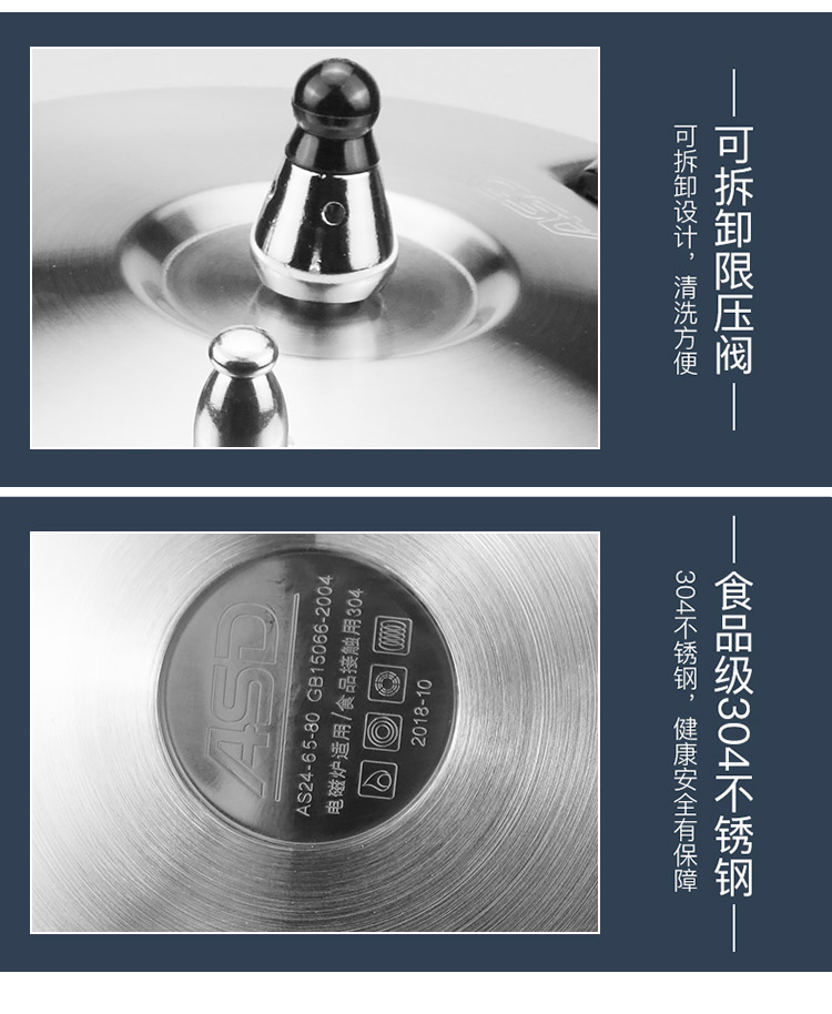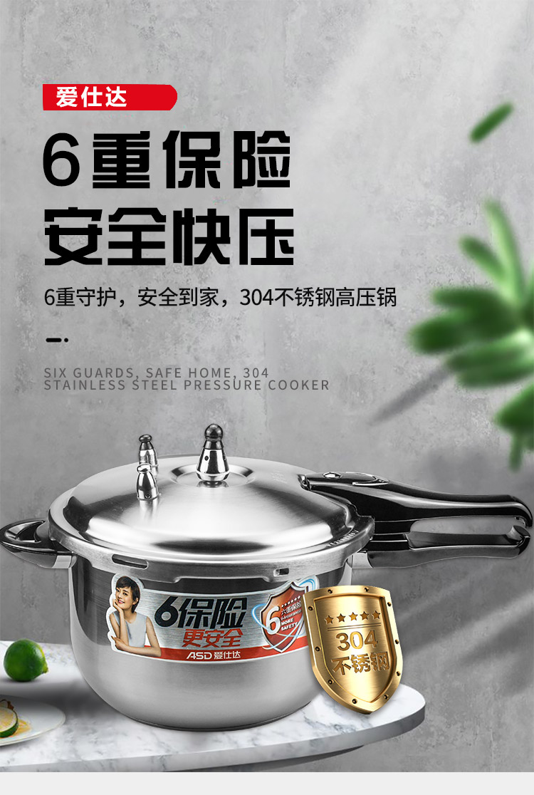 爱仕达304不锈钢高压锅 汤锅 家用6保险 燃气电磁炉通用YC1824