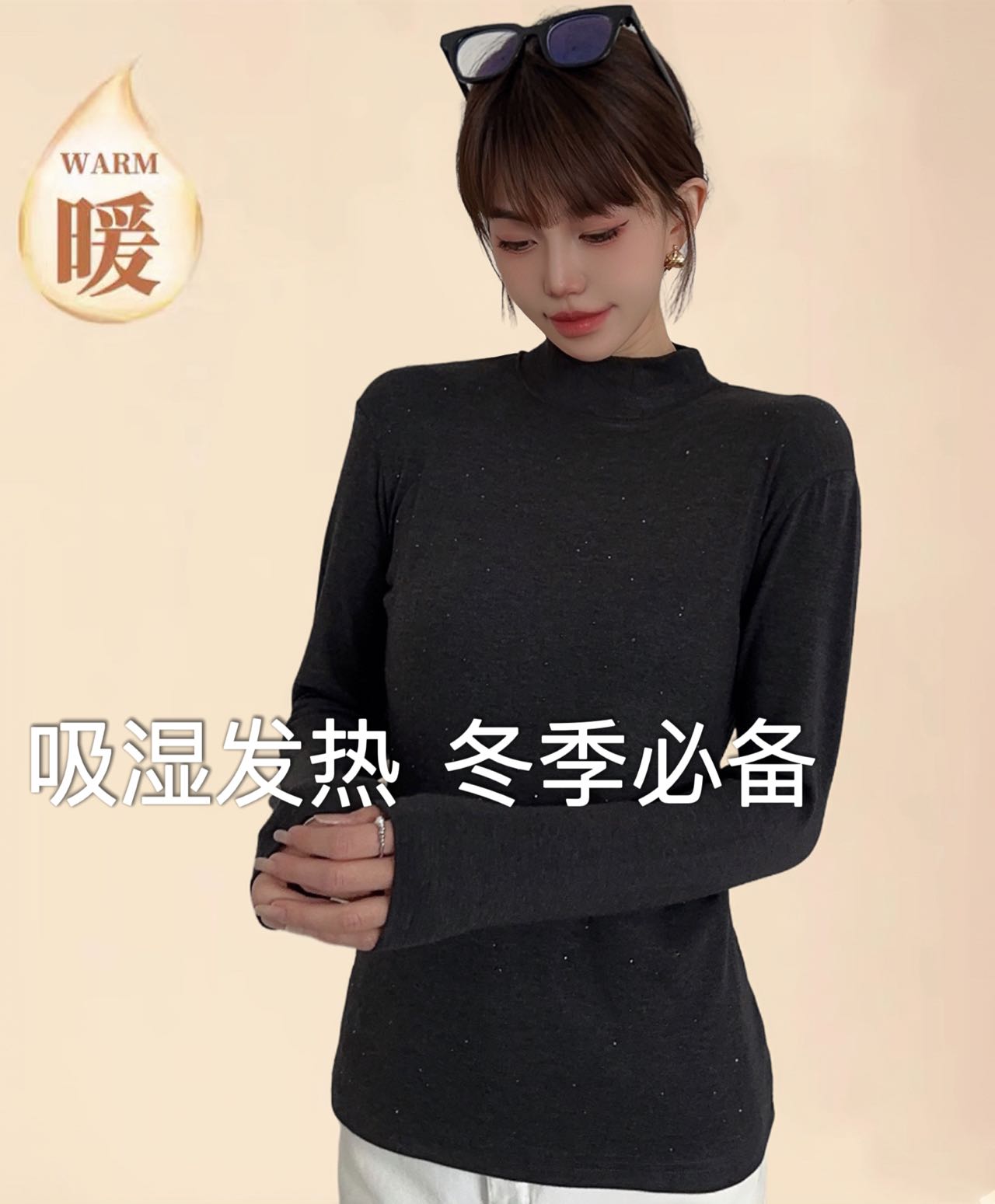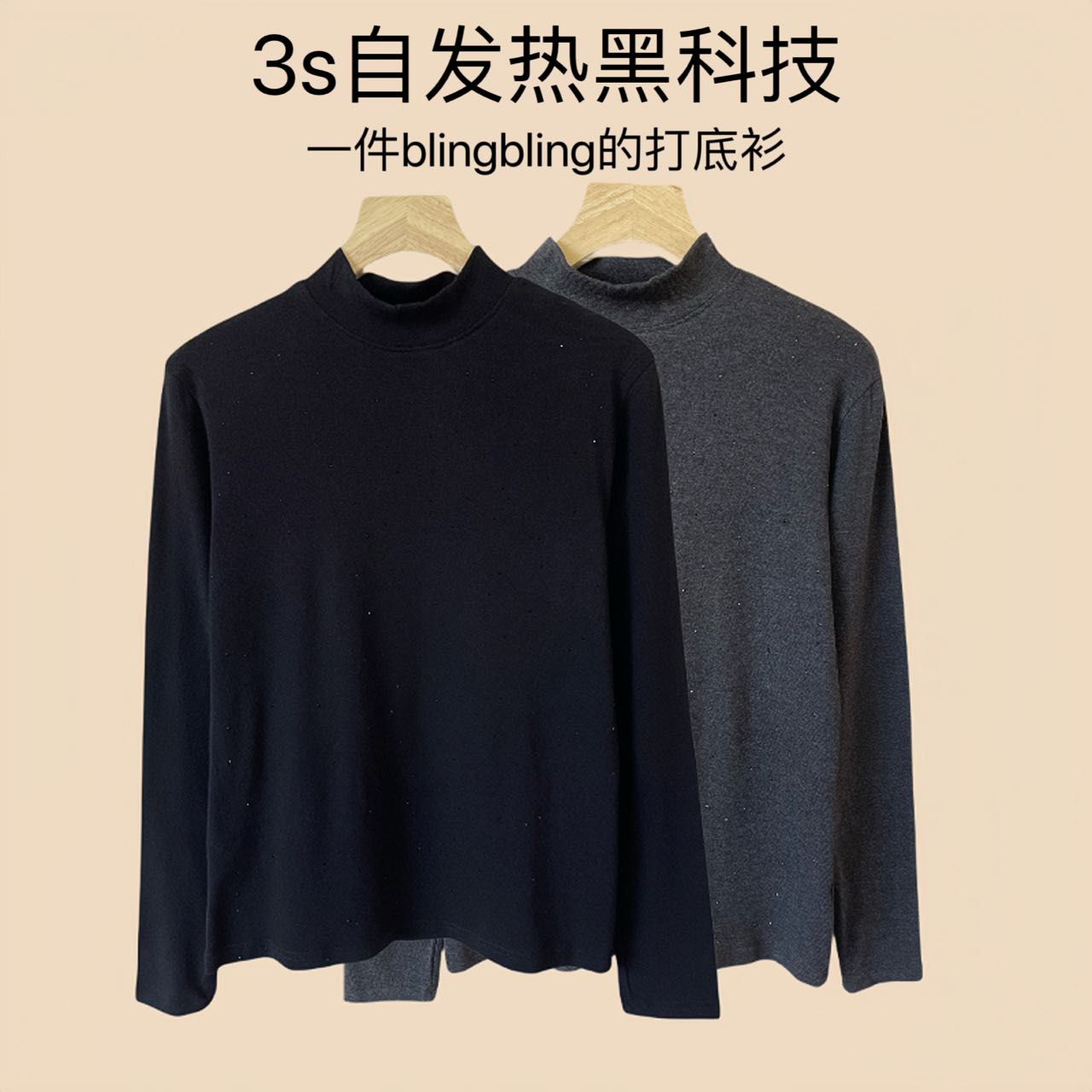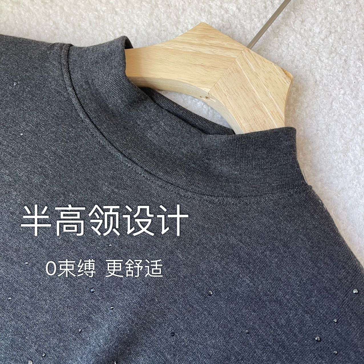 严选 | 依翡丝 圆领/半高领 高温重工烫钻打底衫 自发热黑科技双面磨毛【青岛即墨自有工厂】