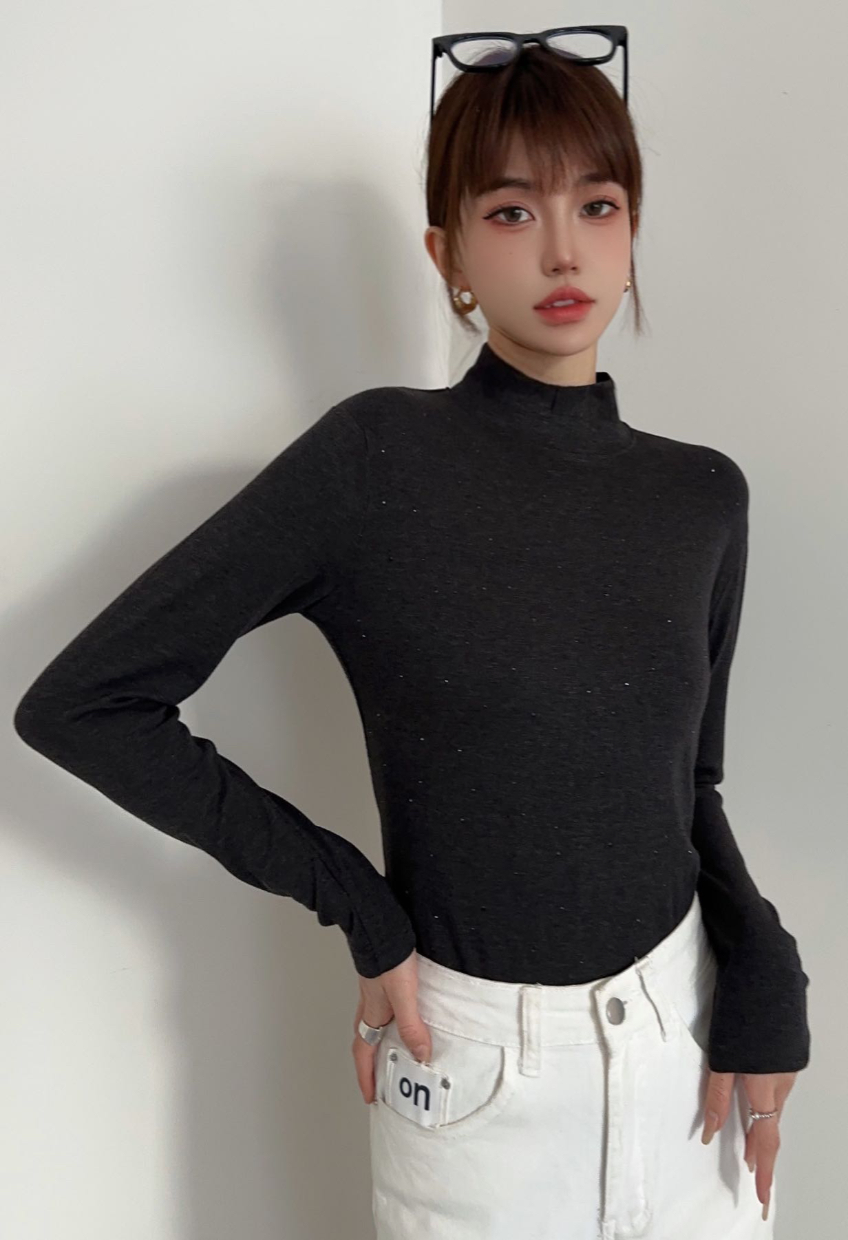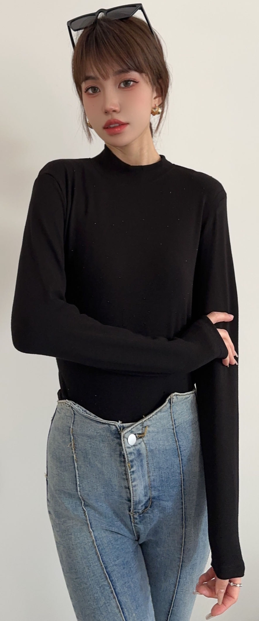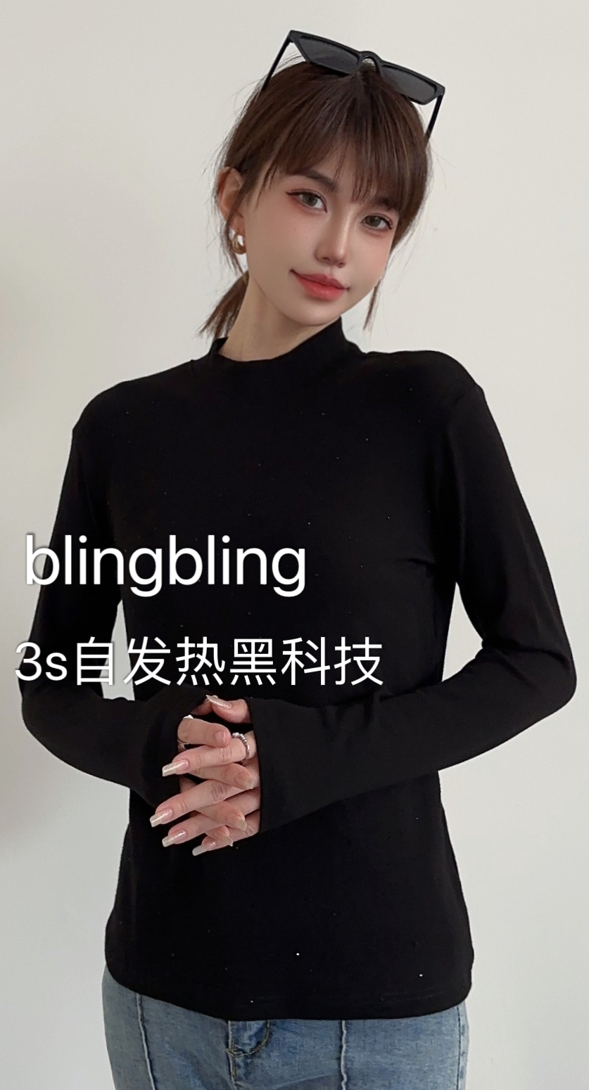 严选 | 依翡丝 圆领/半高领 高温重工烫钻打底衫 自发热黑科技双面磨毛【青岛即墨自有工厂】