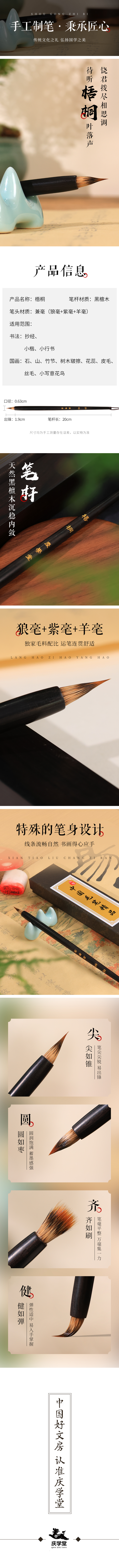 【庆学堂】梧桐 书画高级毛笔 兼毫毛笔 字帖描红抄经专用毛笔