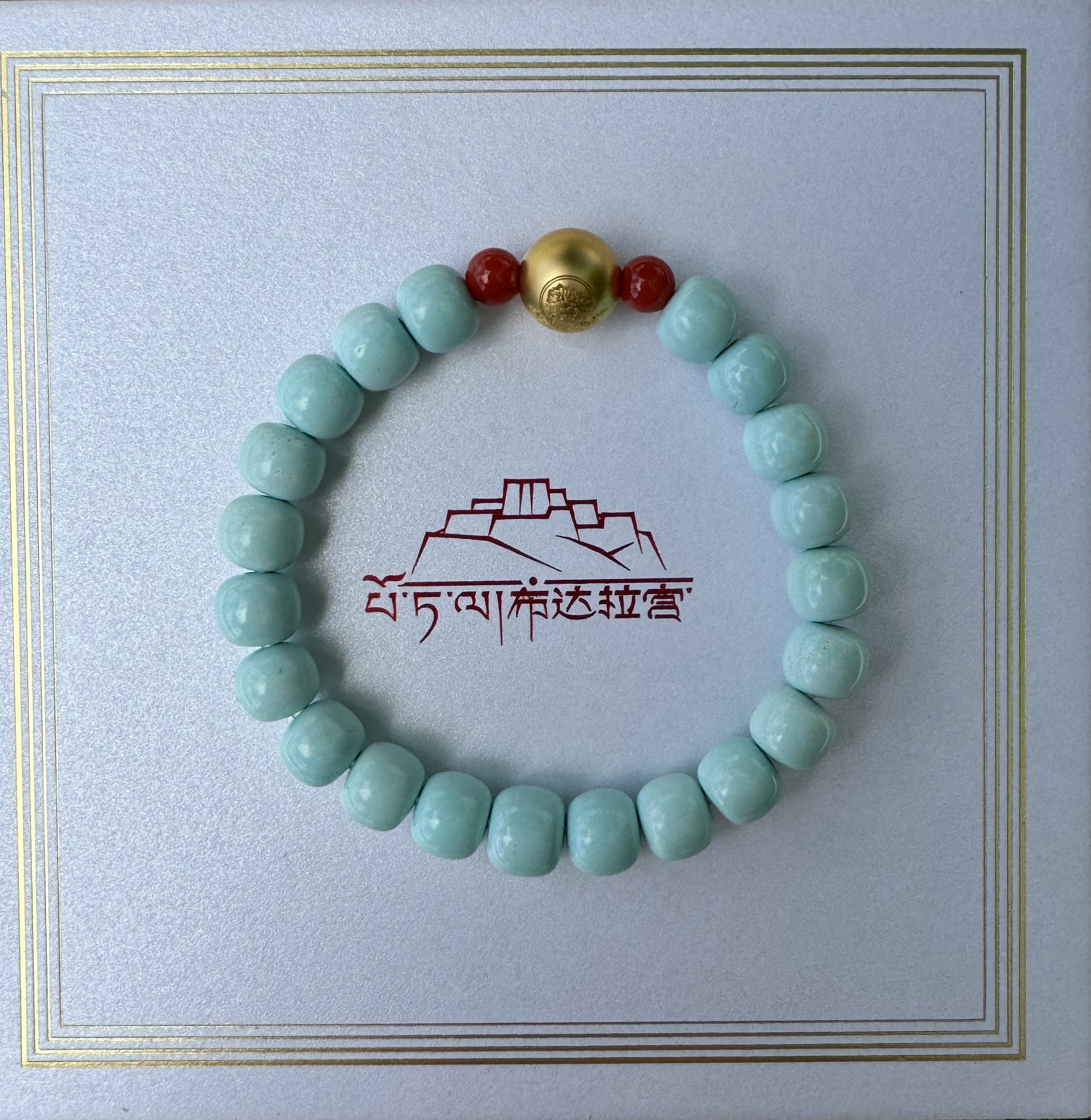 材质:绿松石、南红玛瑙、布达拉宫18k金logo珠