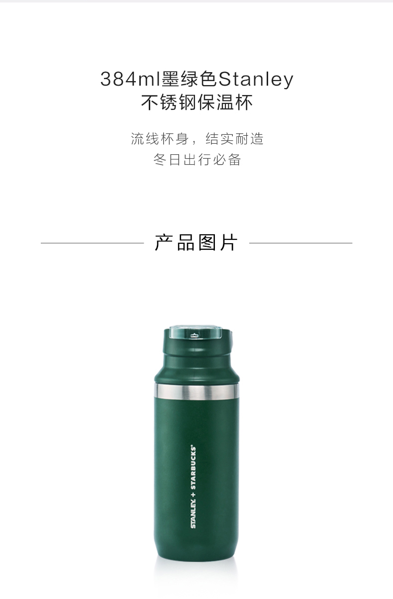 星巴克 墨绿色Stanley不锈钢保温杯384ml