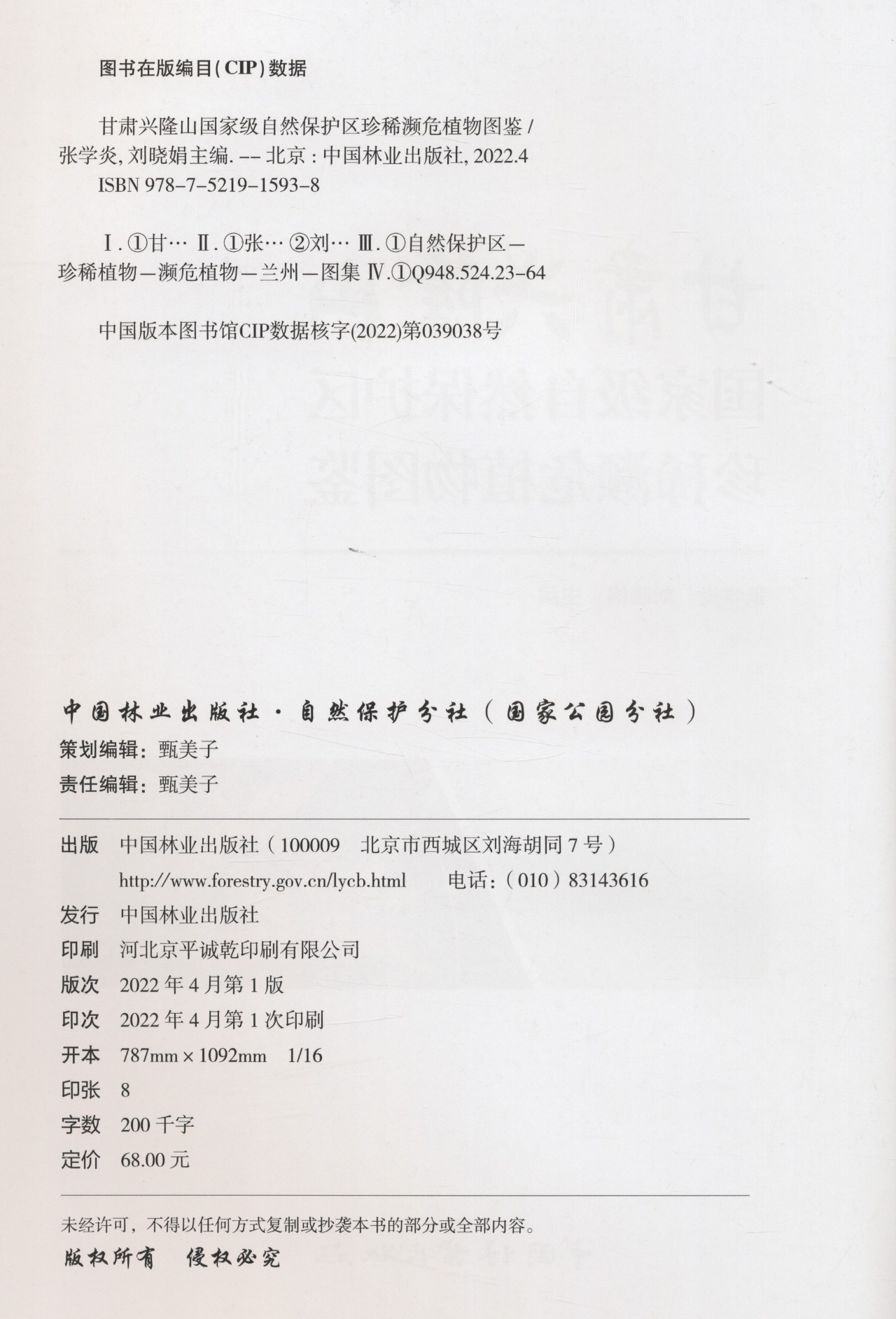 甘肃兴隆山国家级自然保护区珍稀濒危植物图鉴 张学炎//刘晓娟 1593 中国林业出版社