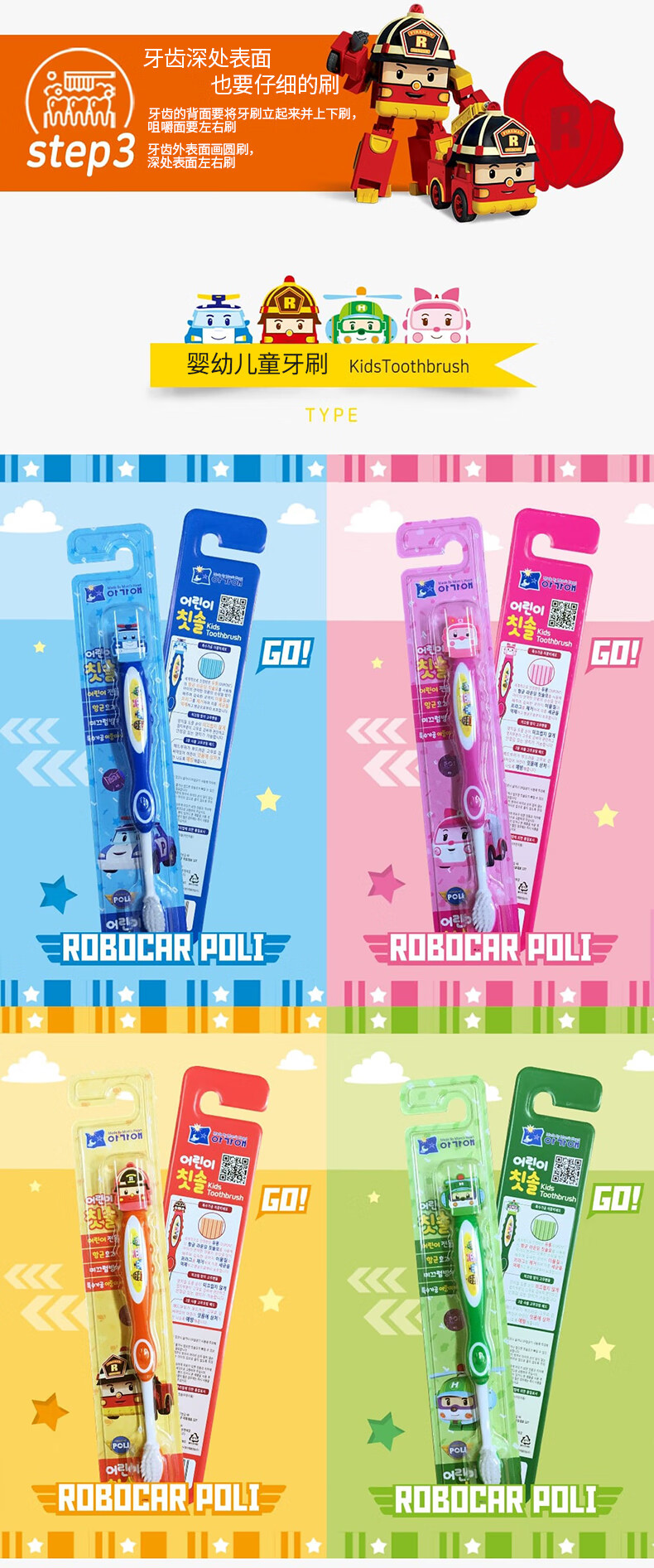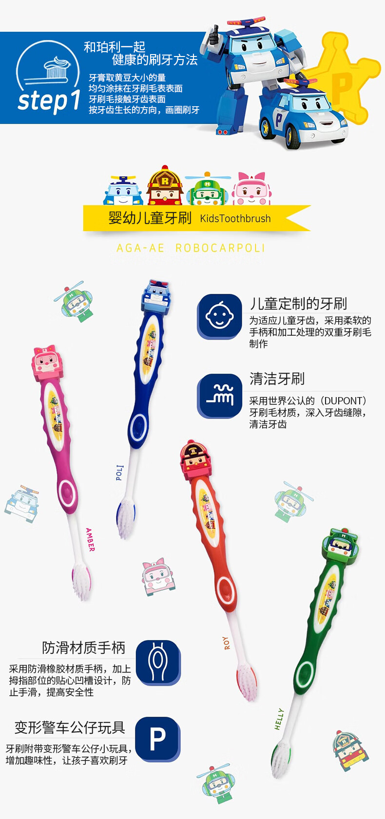 我珂爱 变形警车珀利儿童牙刷 1支装