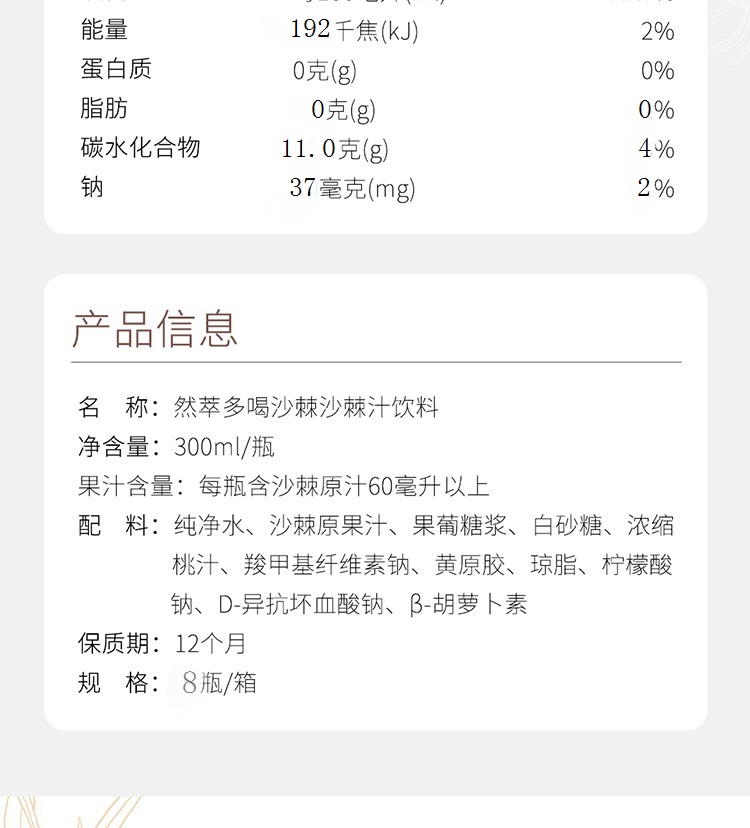 敦煌【沙棘果汁饮料300m1*8瓶】甘肃发货 甘肃敦煌特产沙棘果汁饮料低脂零添加