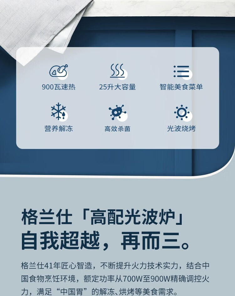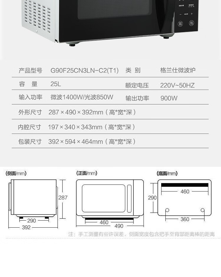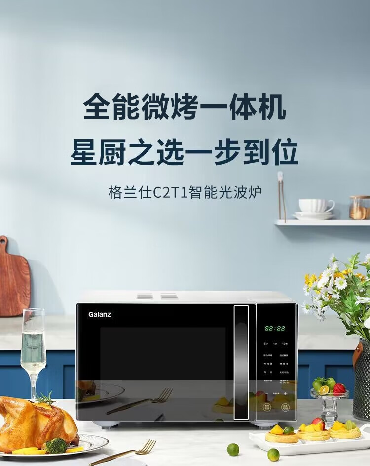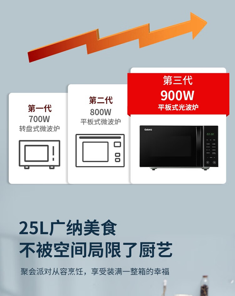 格兰仕(Galanz) 微波炉 光波炉 烤箱一体机 智能家用平板 25L大容量 升级款900瓦速热 G90F25CN3LN-C2(T1)