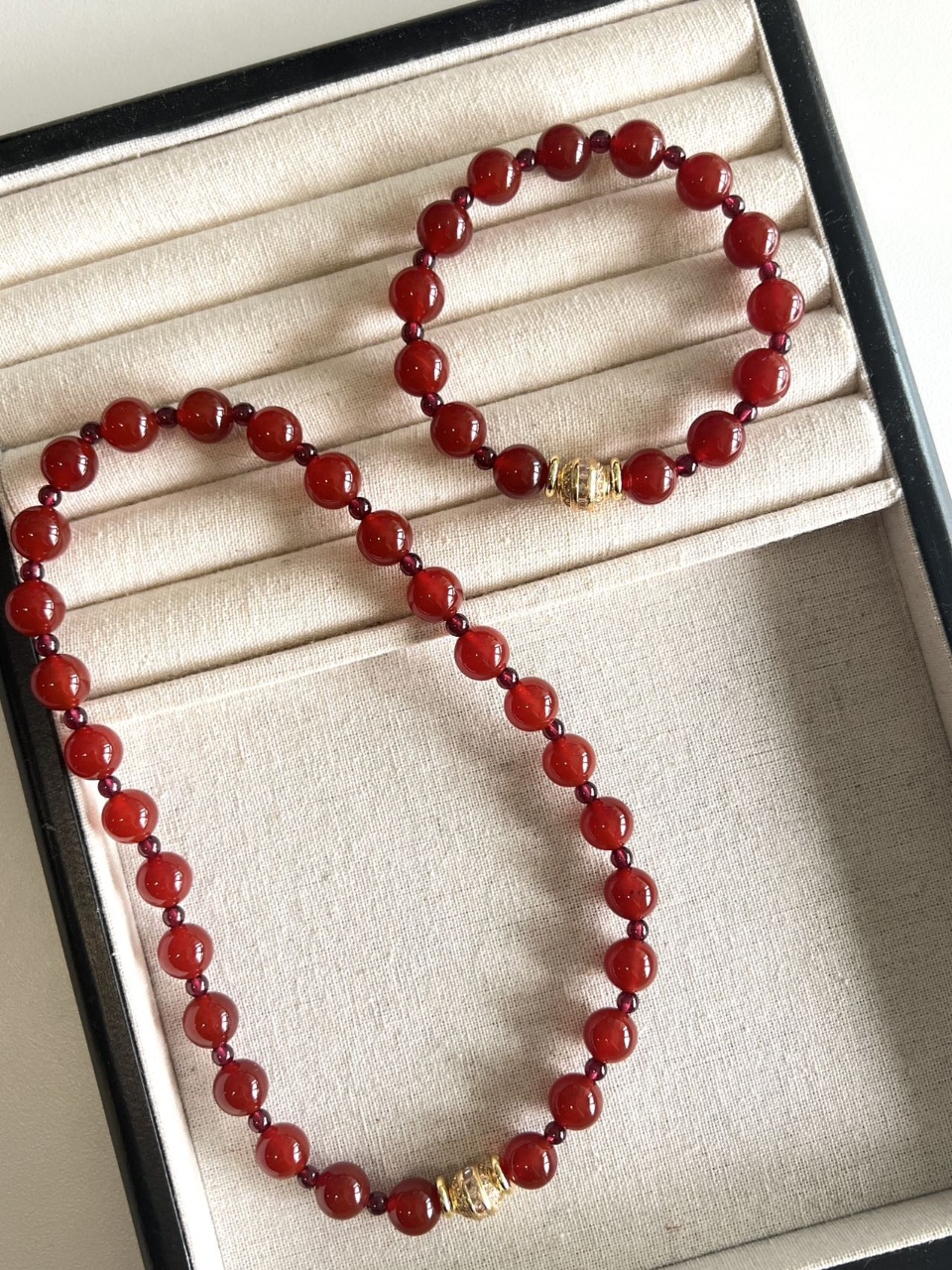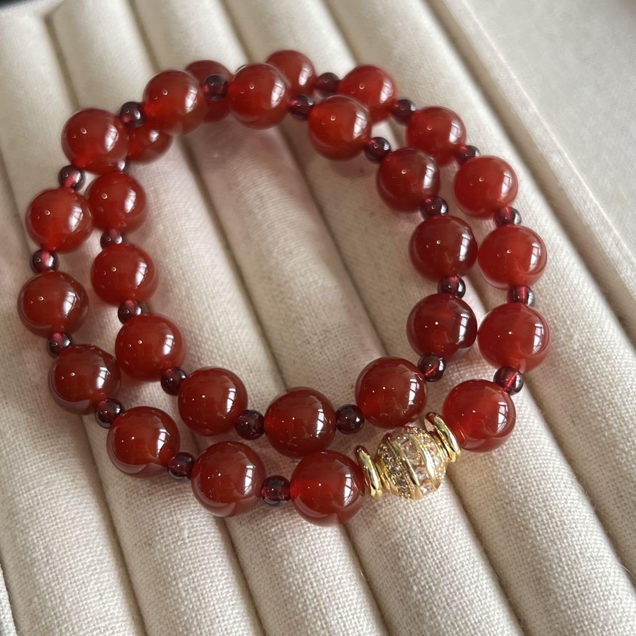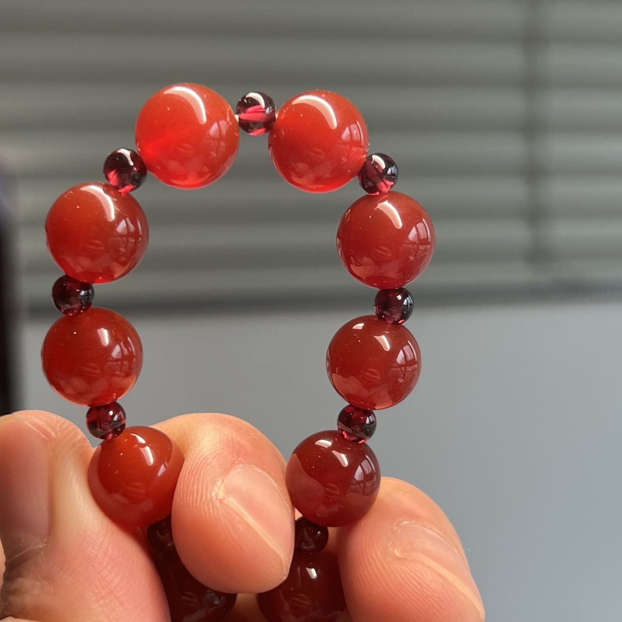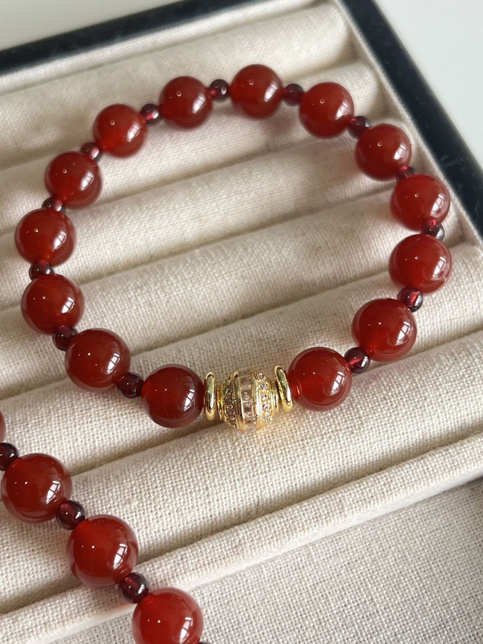 这个石榴石玛瑙手串也是我一眼相中