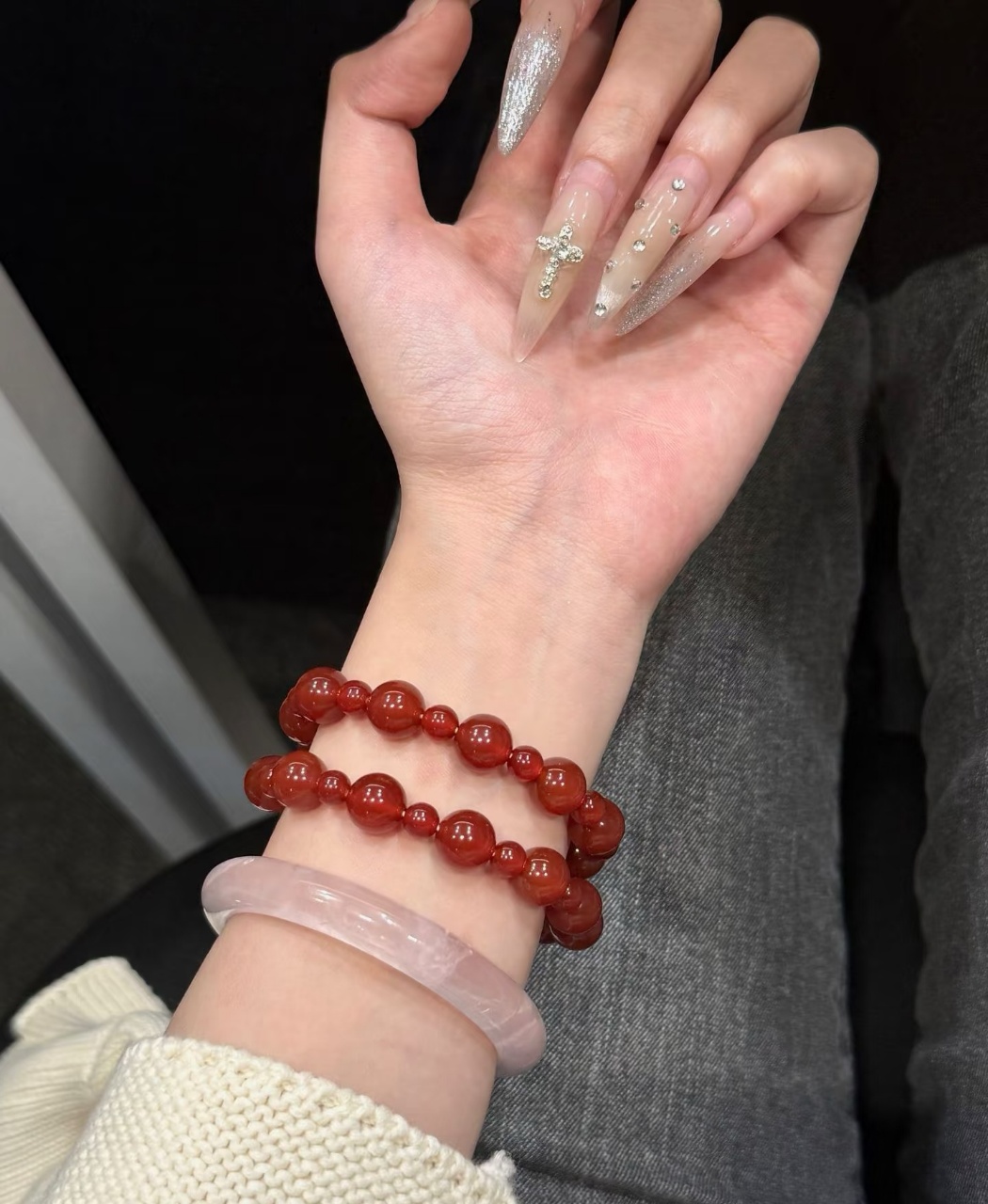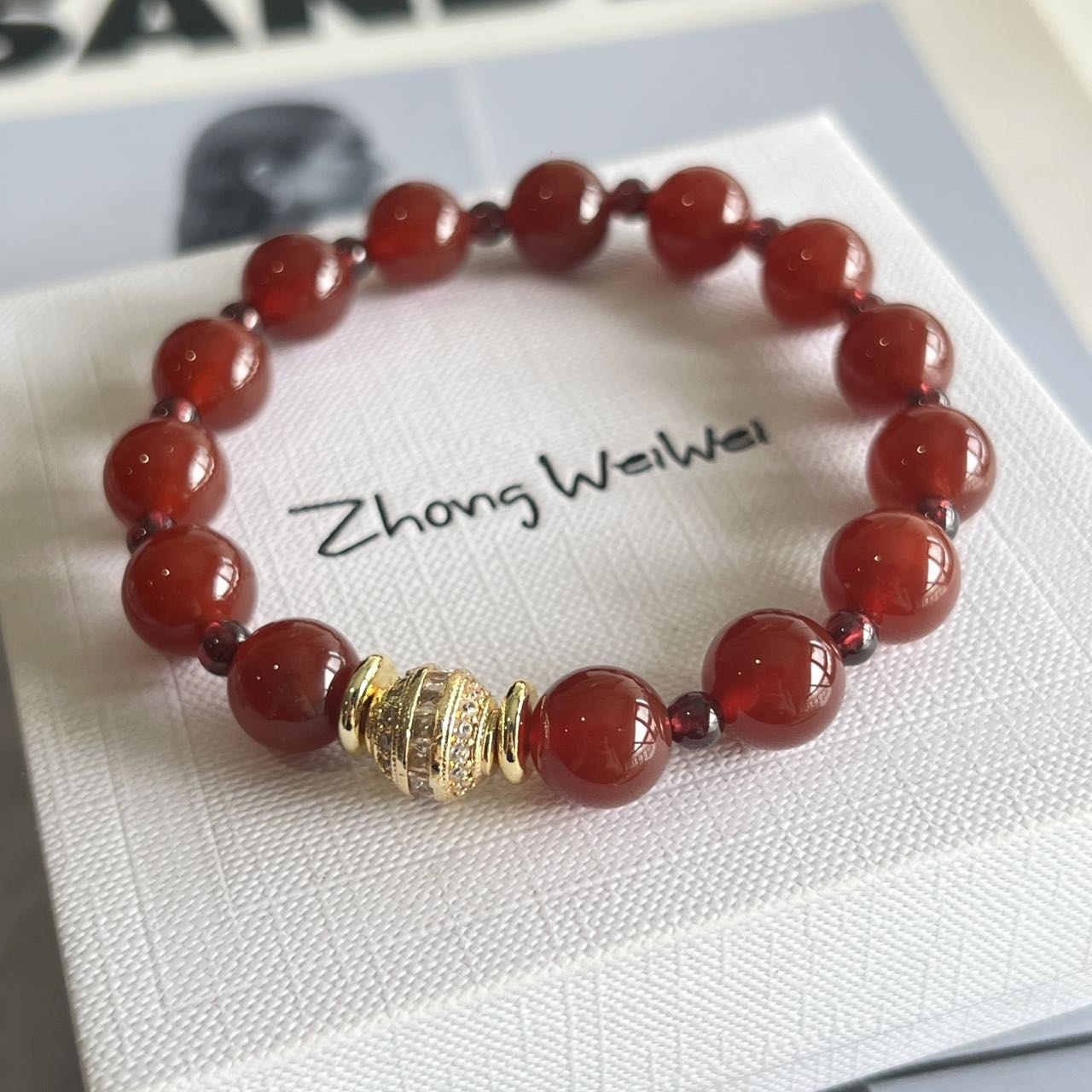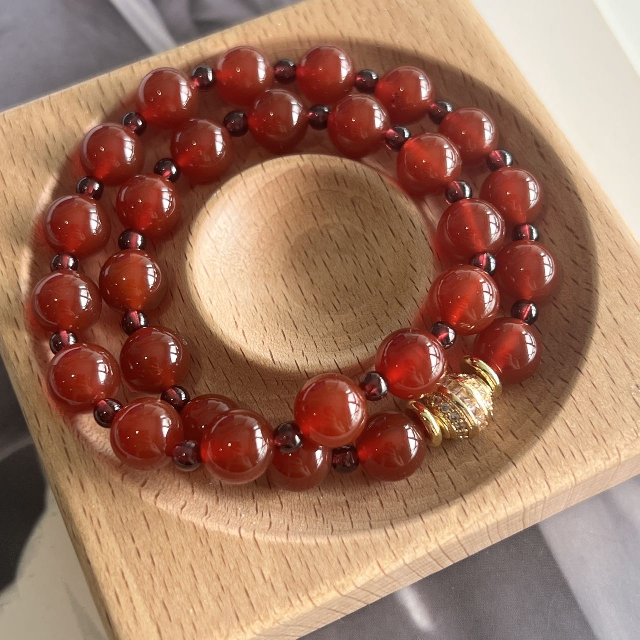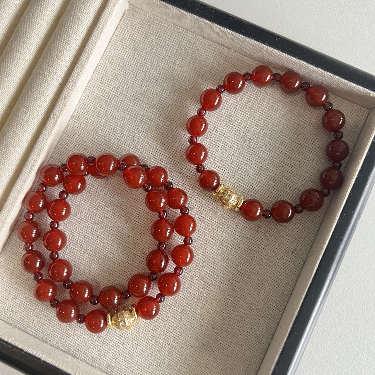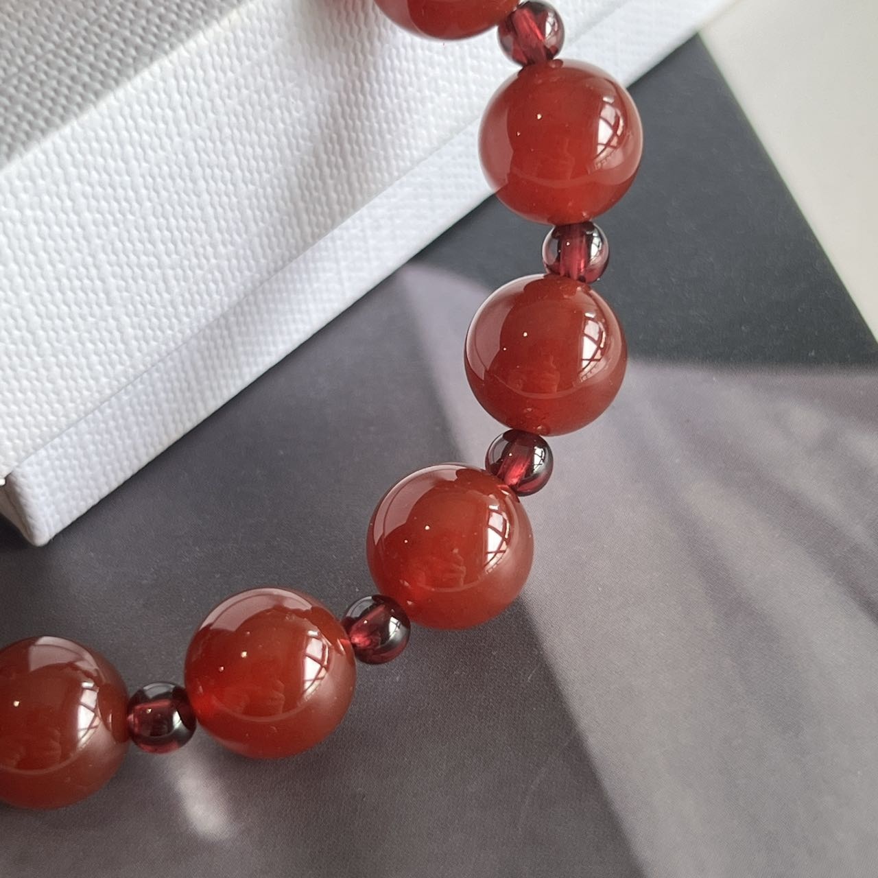 这个石榴石玛瑙手串也是我一眼相中
