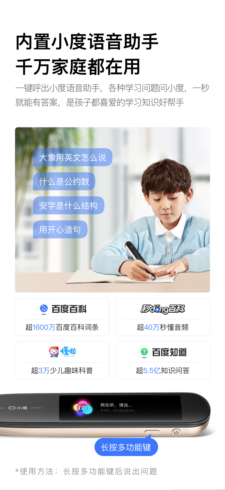 严选 | 小度智能词典笔(专业版)激活赠送学习会员一年 功能强大 精准识别