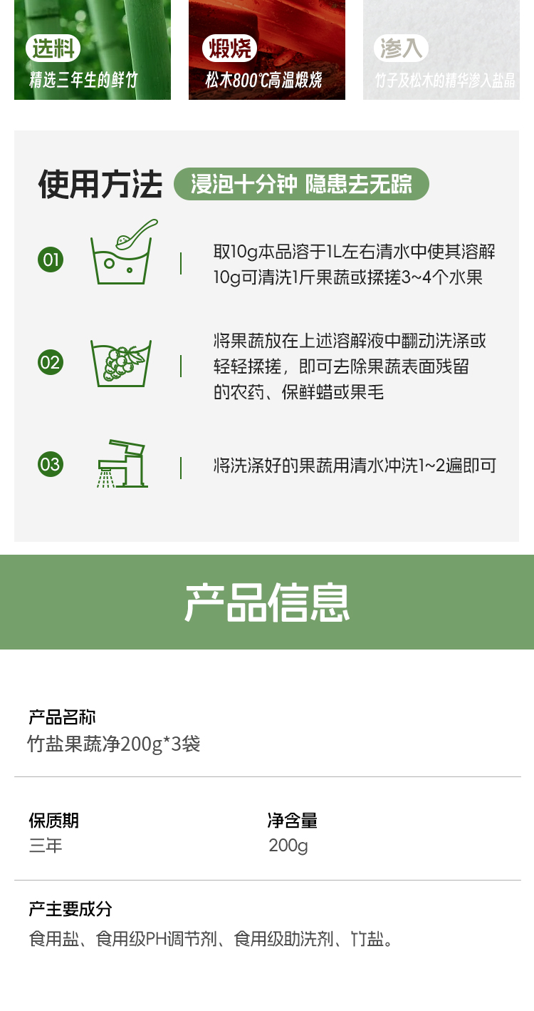 【竹盐果蔬净 】高效去除果蔬表面农药残留 食品级配料不影响果蔬口感