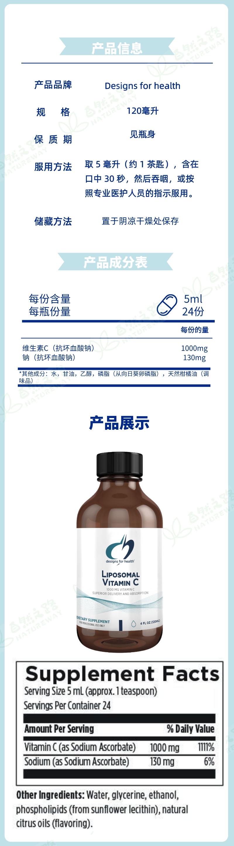 自然之路 美国DFH健康设计Liposomal Vitamin C 脂质体C120毫升