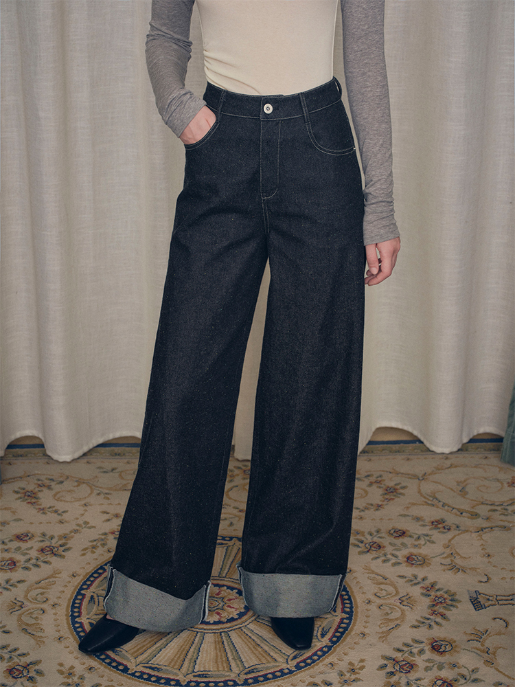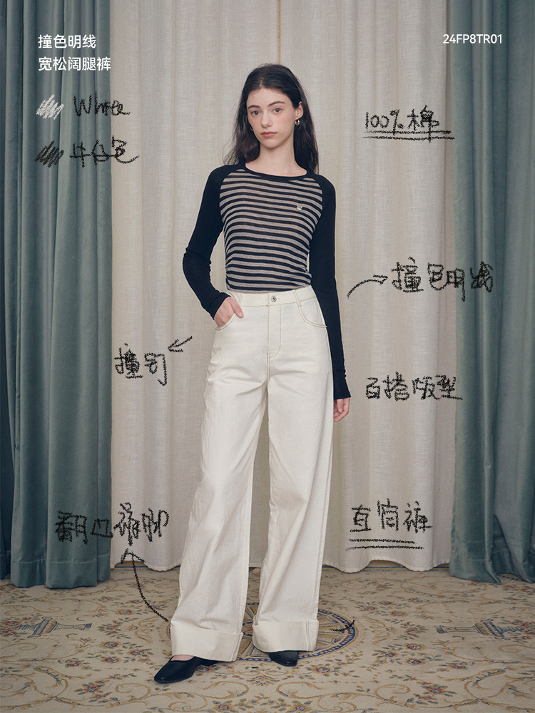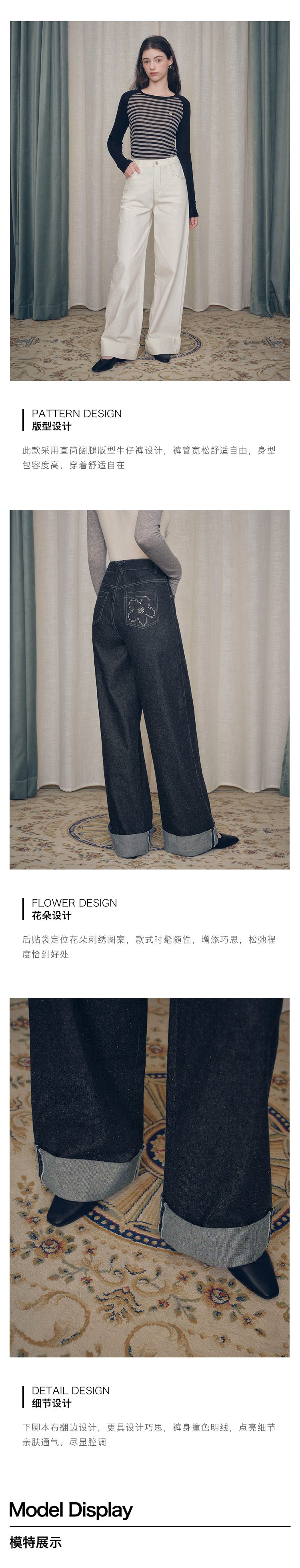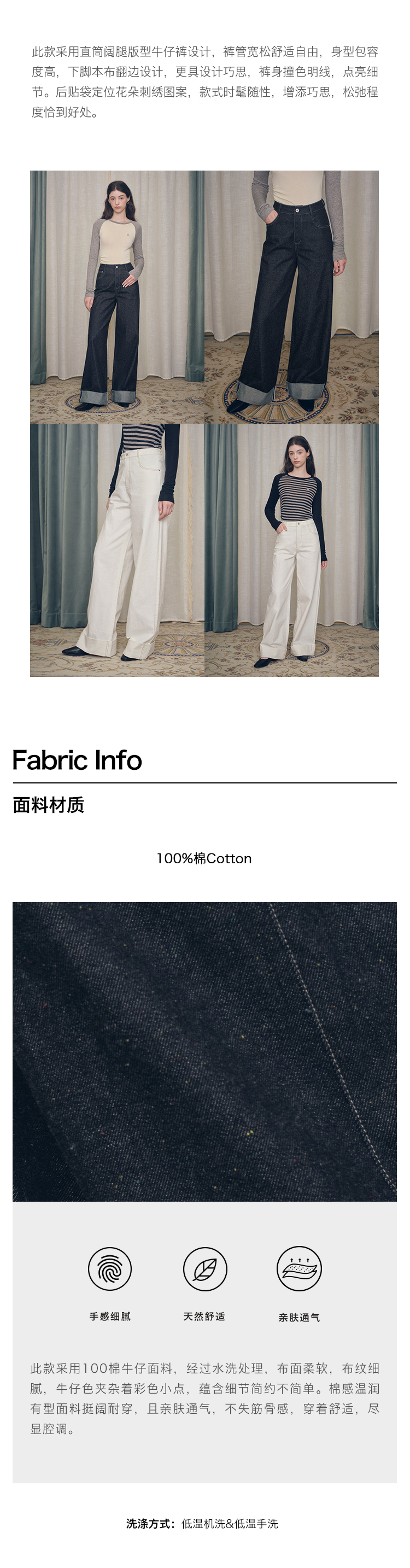 ForPoem 现货 24/FW原创设计彩点翻边撞色明线宽松百搭阔腿牛仔长裤