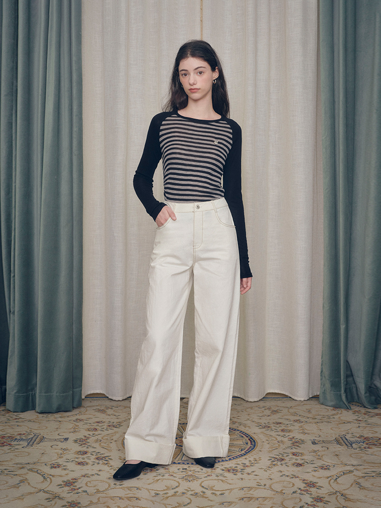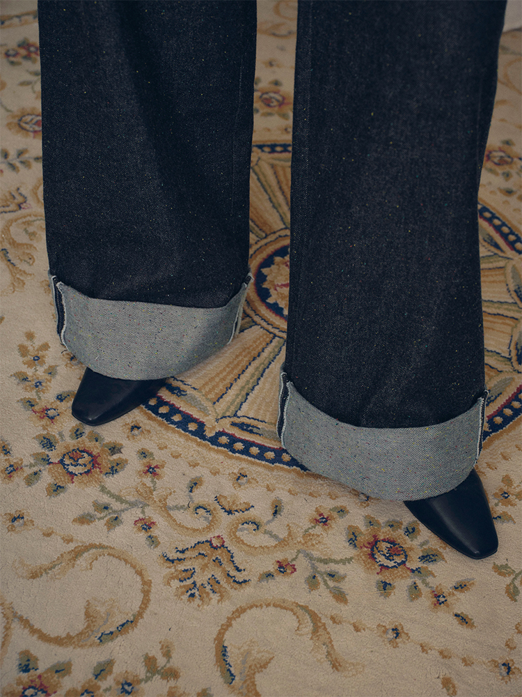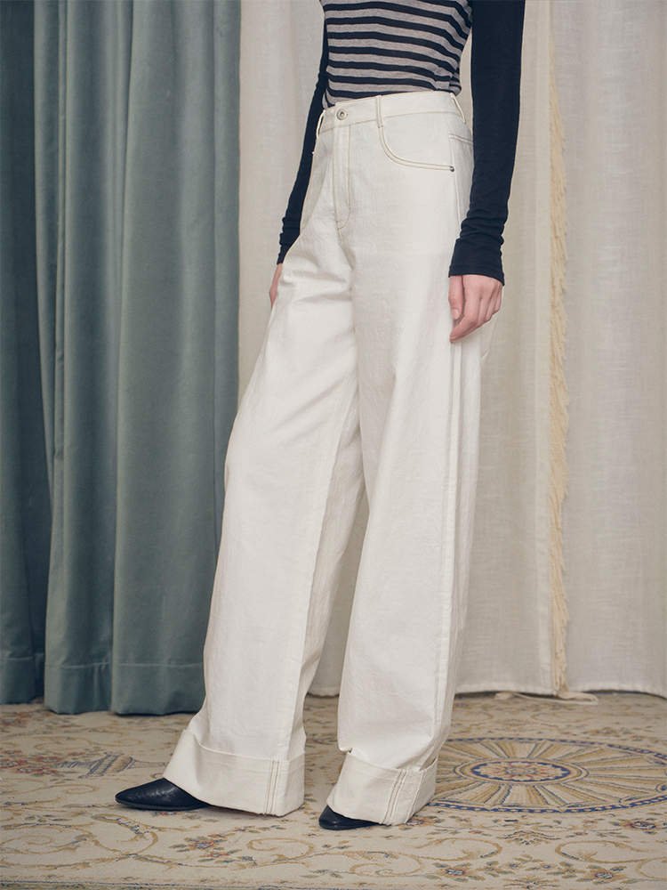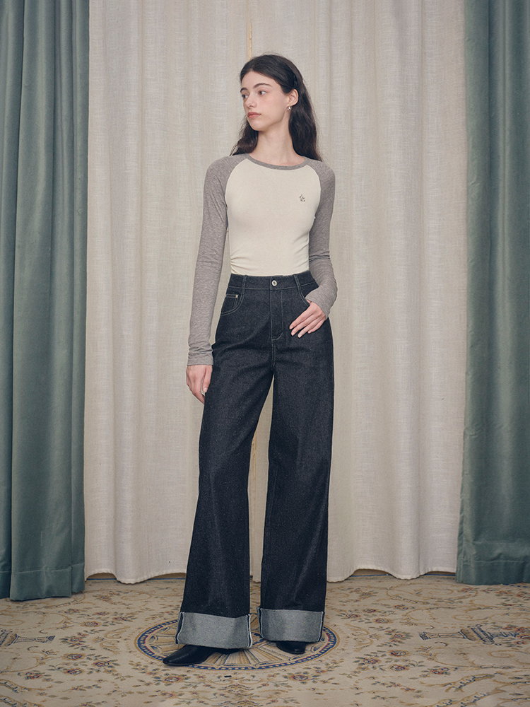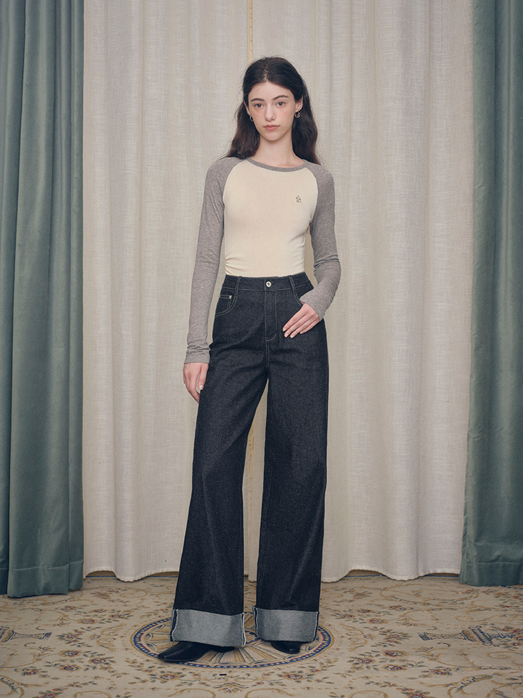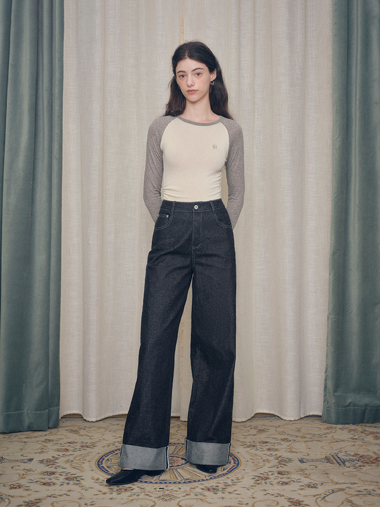ForPoem 现货 24/FW原创设计彩点翻边撞色明线宽松百搭阔腿牛仔长裤