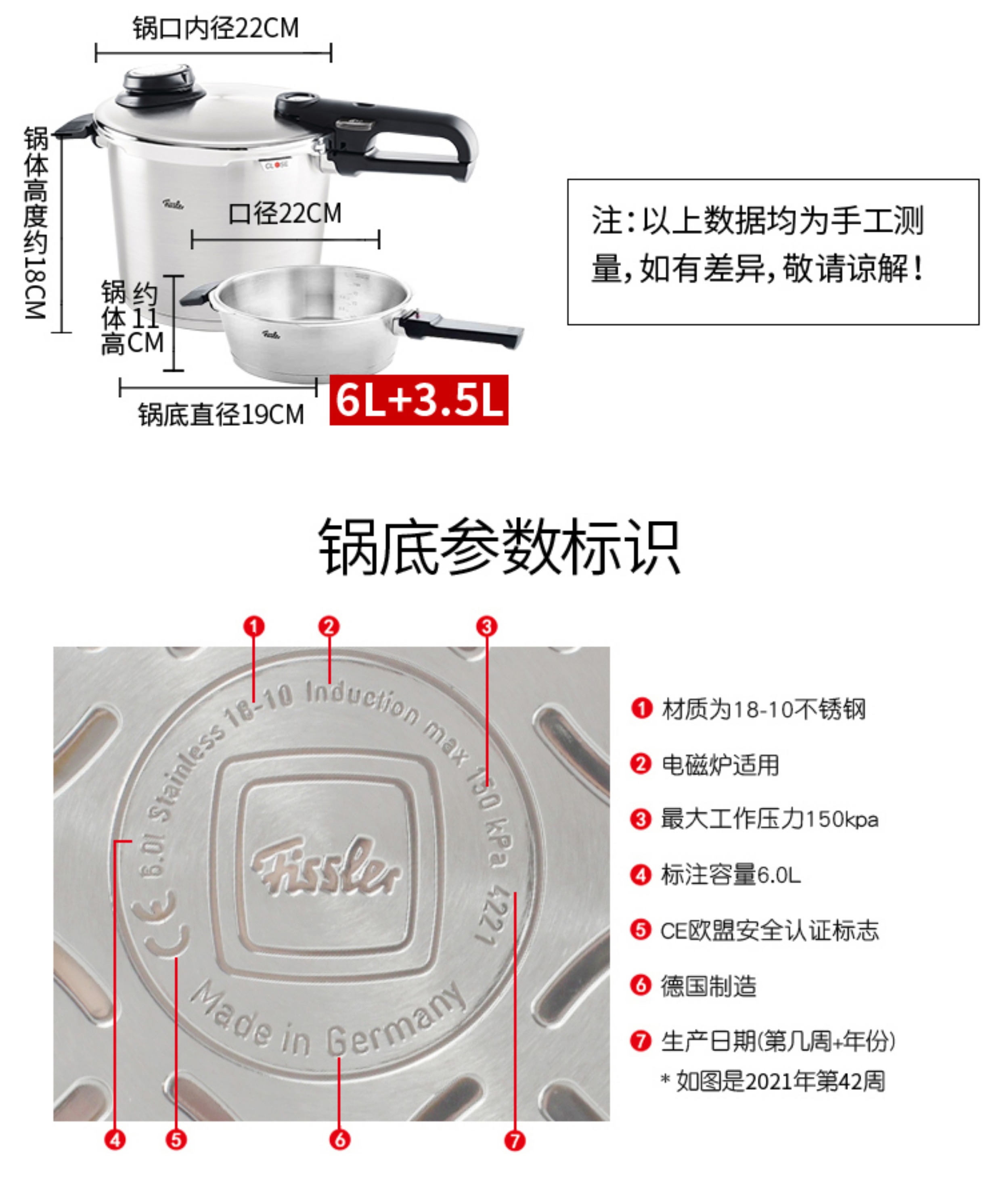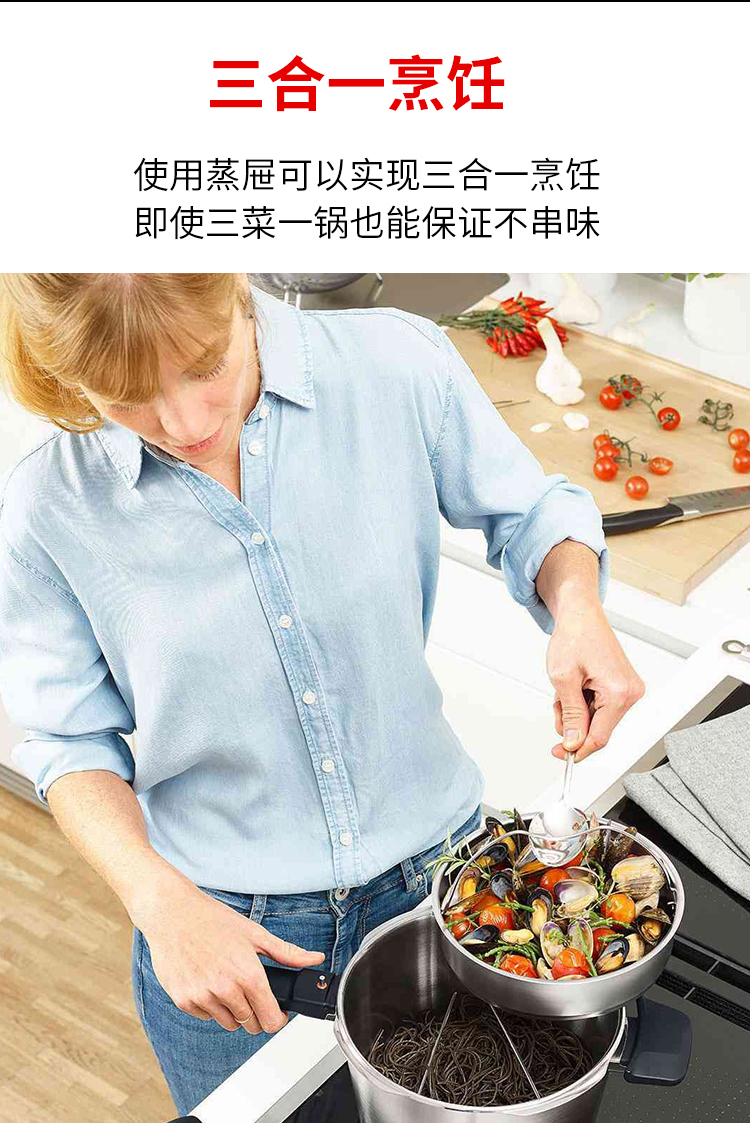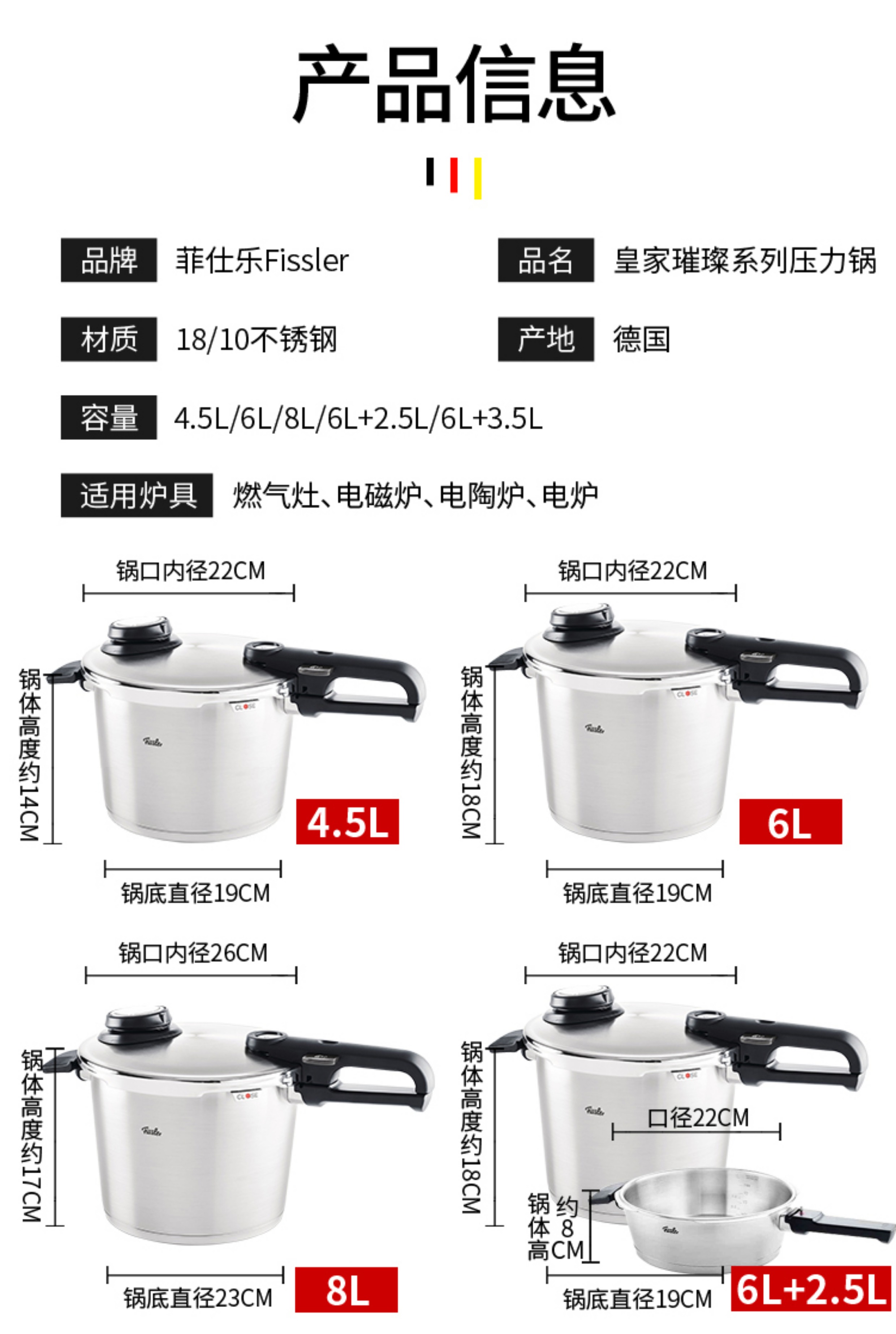 德国进口菲仕乐(Fissler)味达维皇家系列高压锅套组 (6升+3,5升+锅盖+蒸笼)