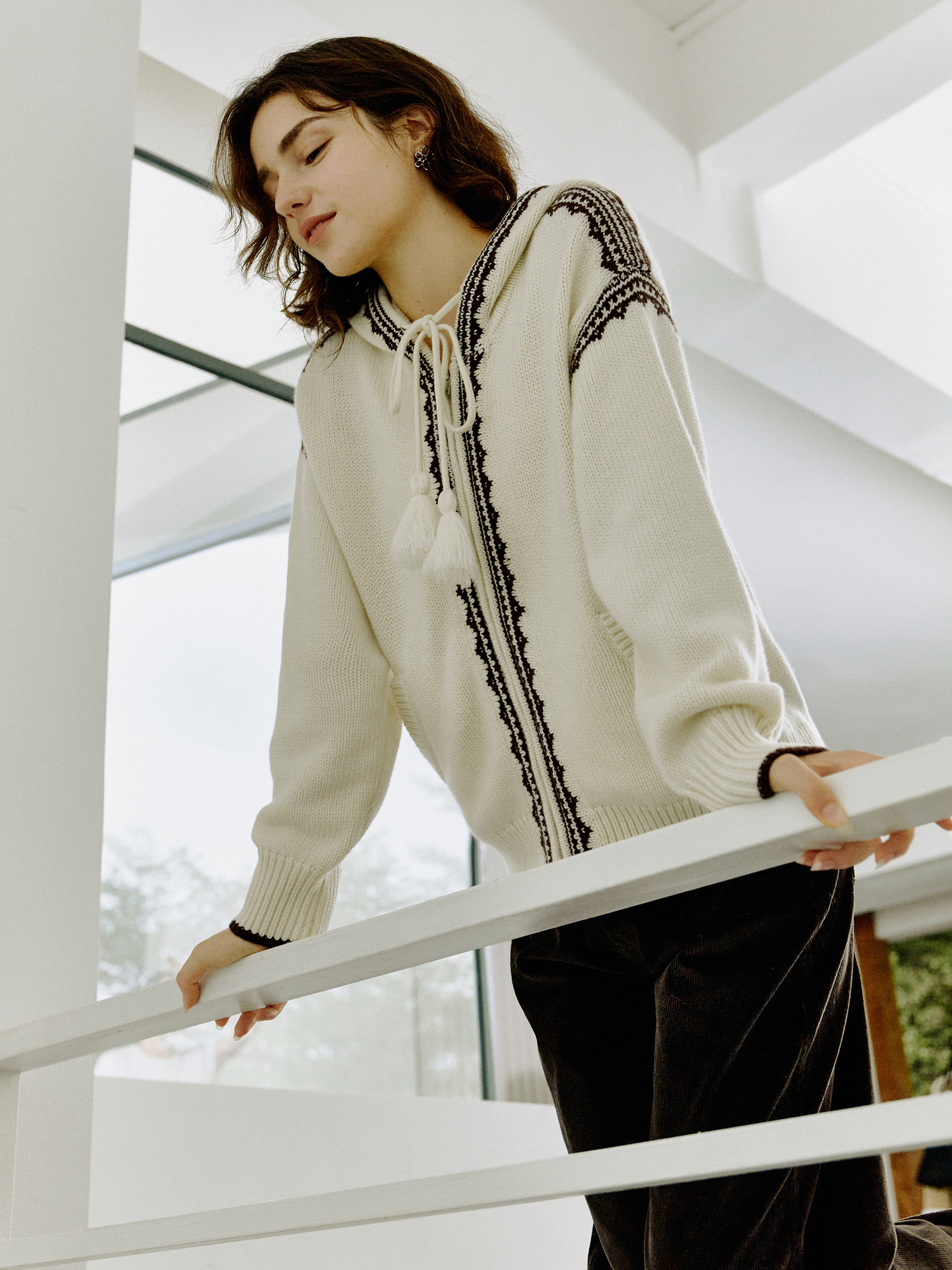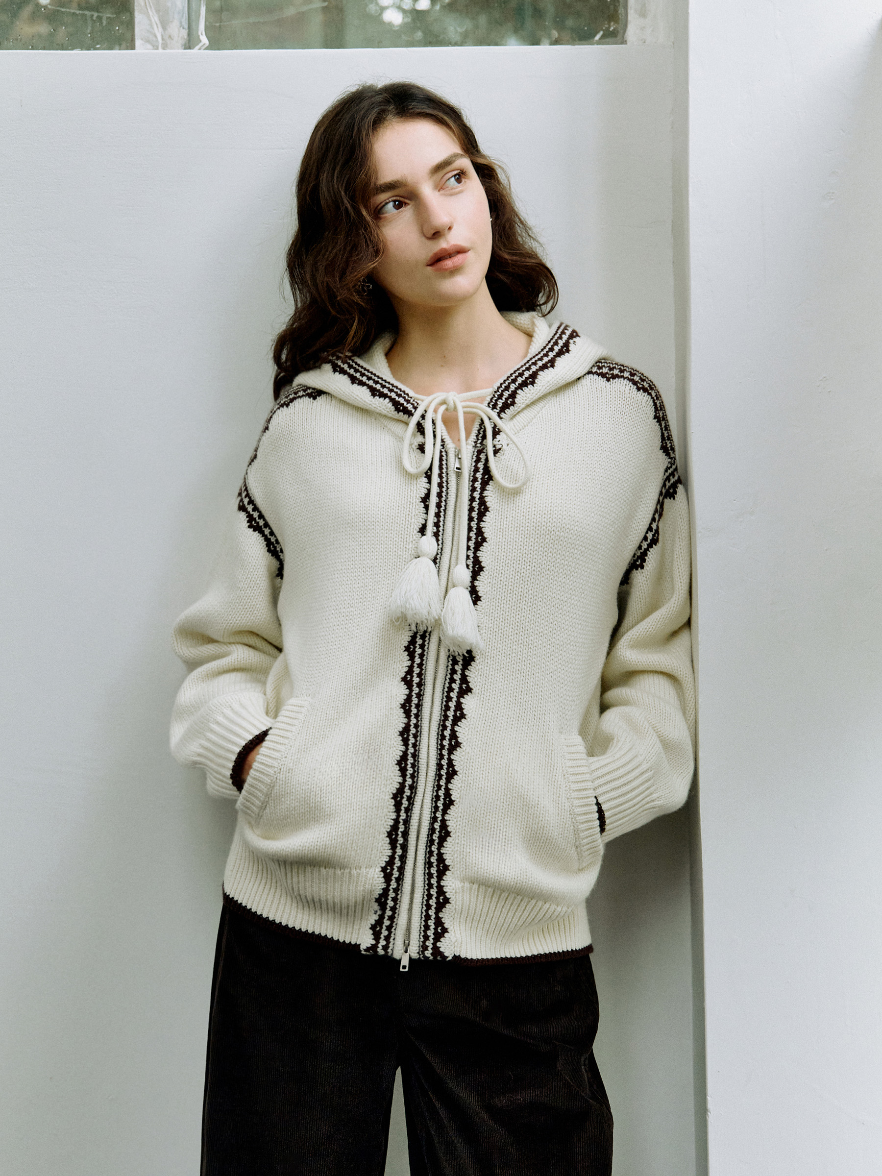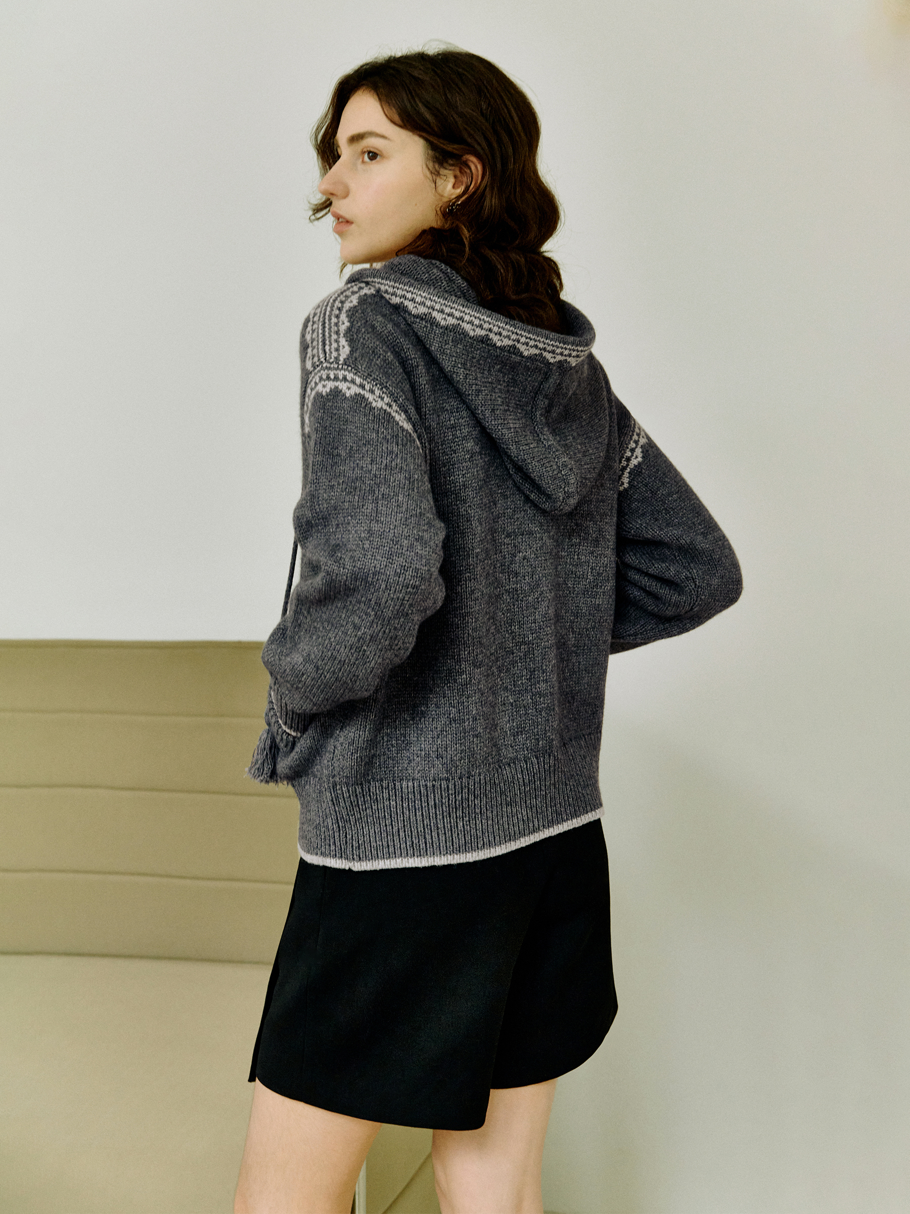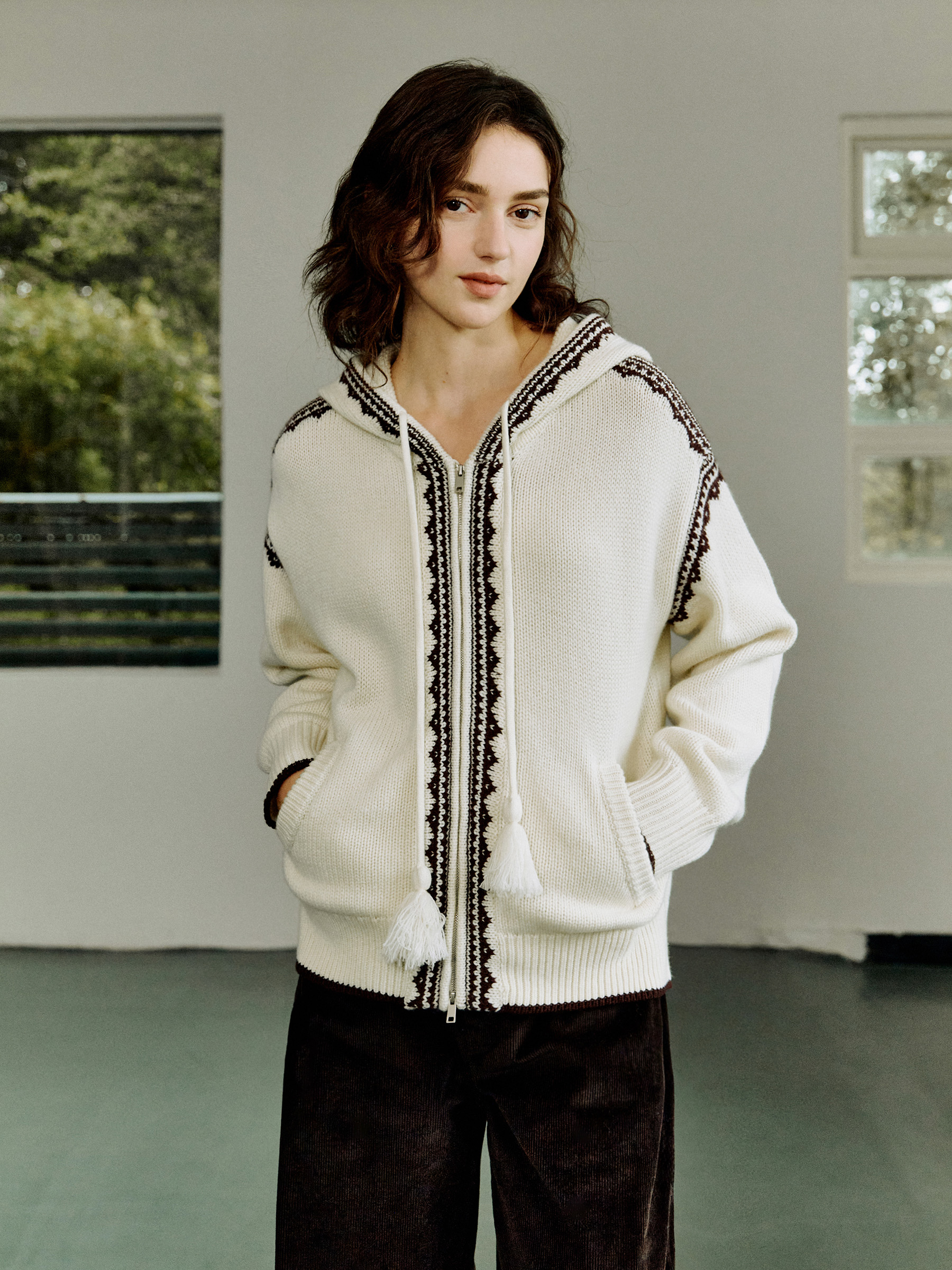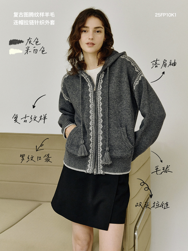 ForPoem 现货 25/FW原创设计复古费尔岛羊毛连帽拉链针织开衫外套