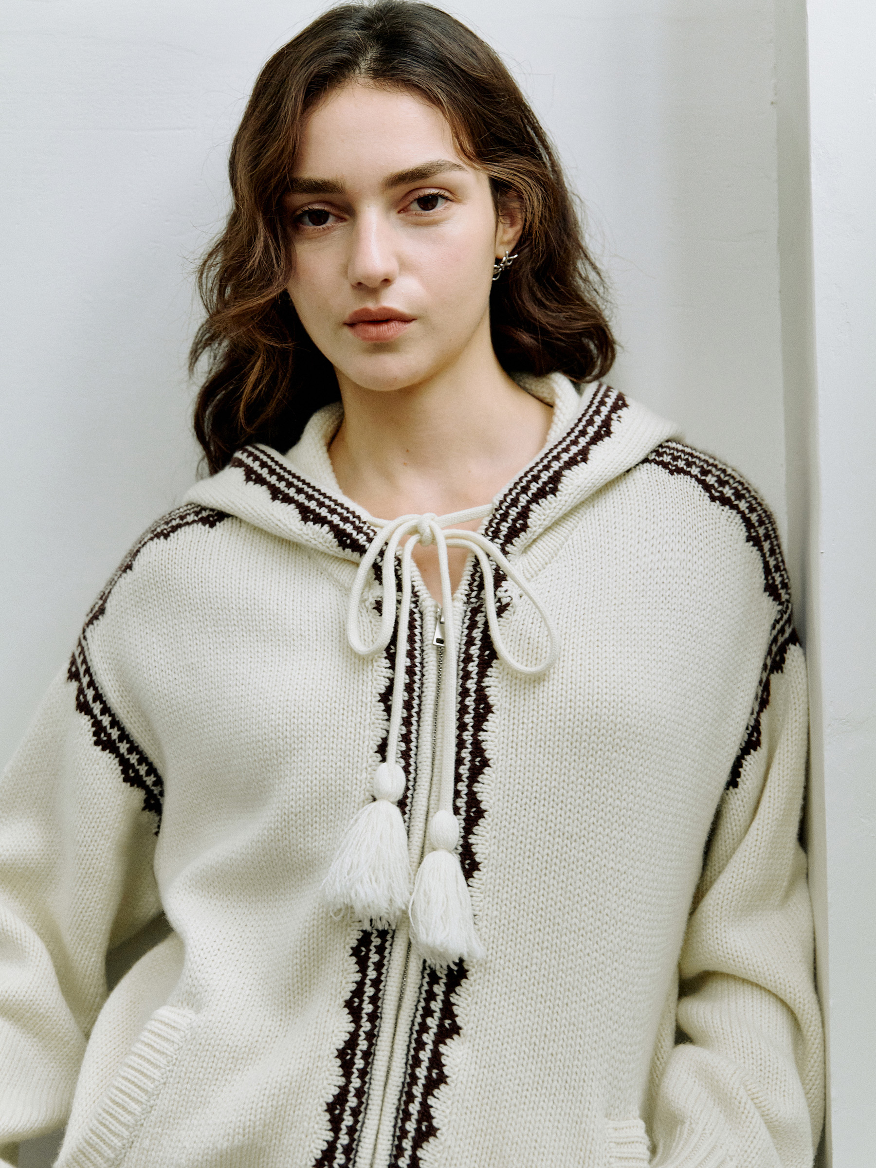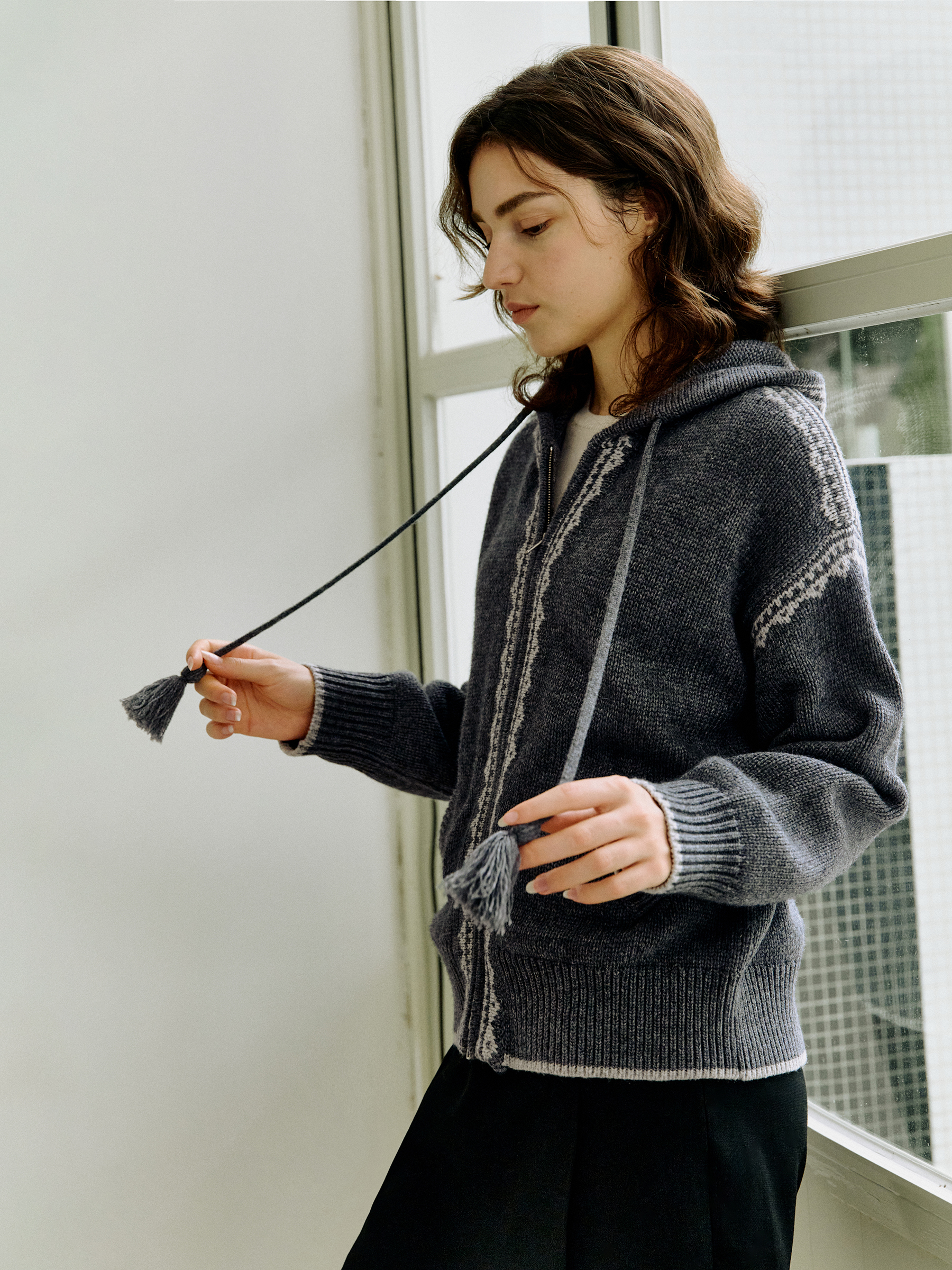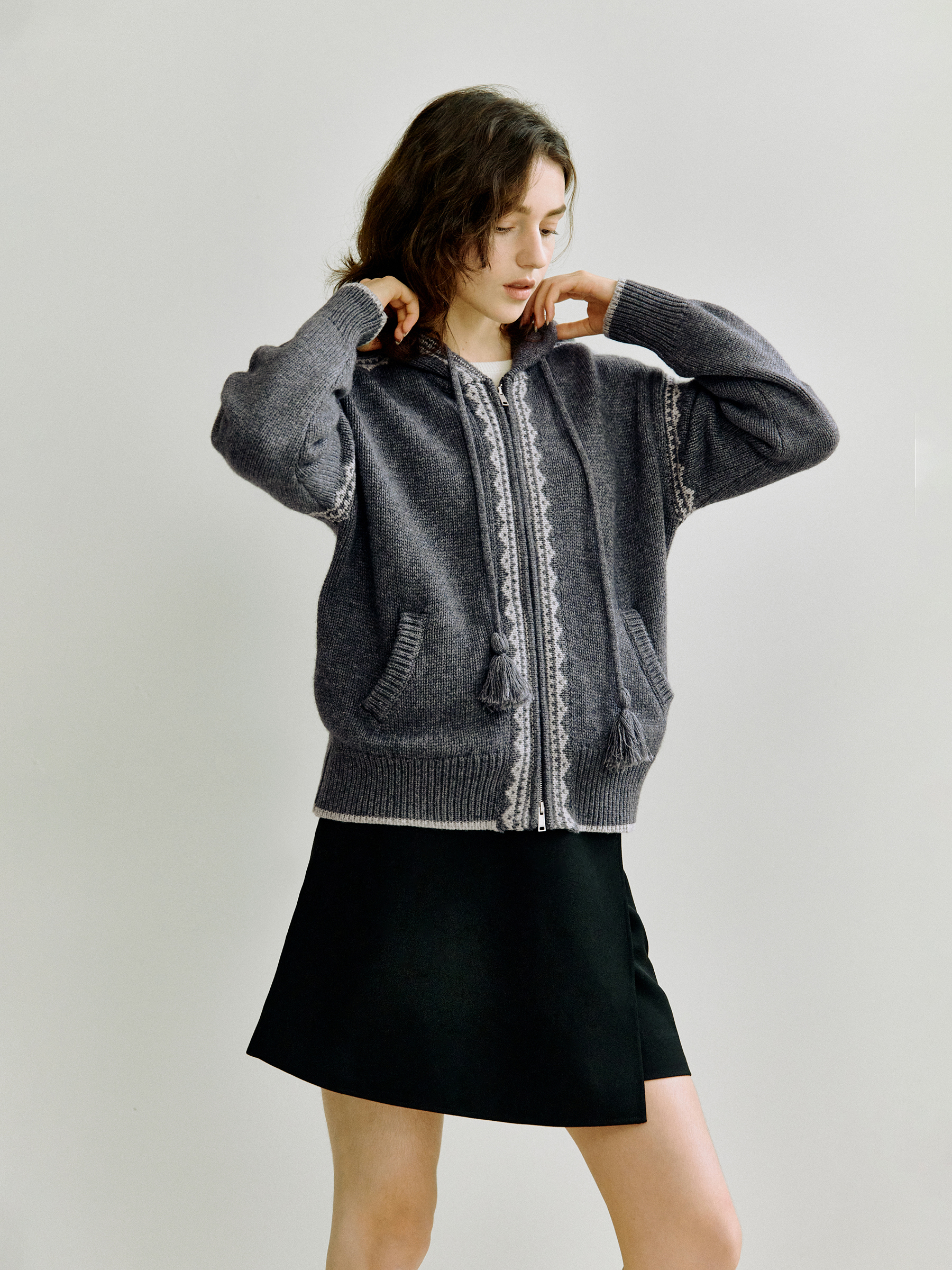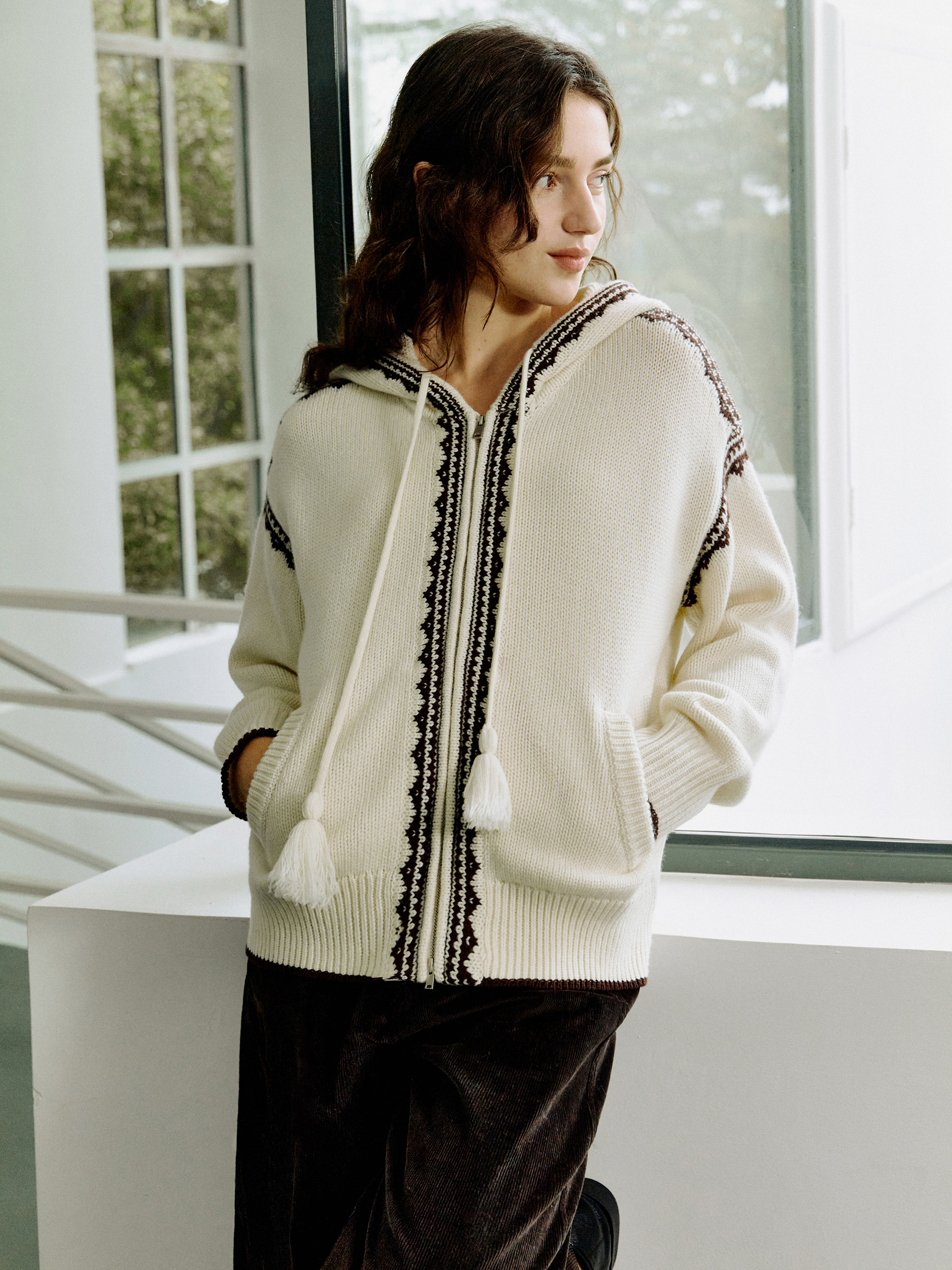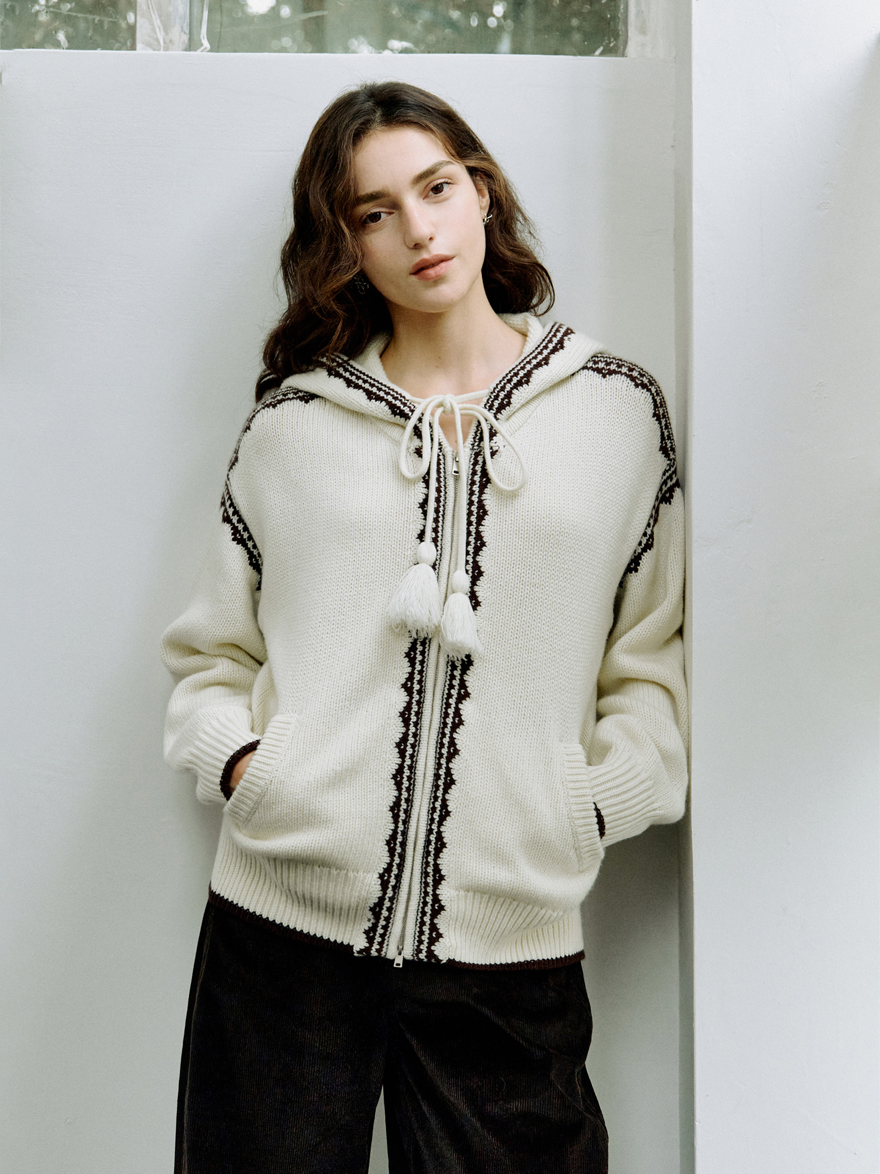 ForPoem 现货 25/FW原创设计复古费尔岛羊毛连帽拉链针织开衫外套