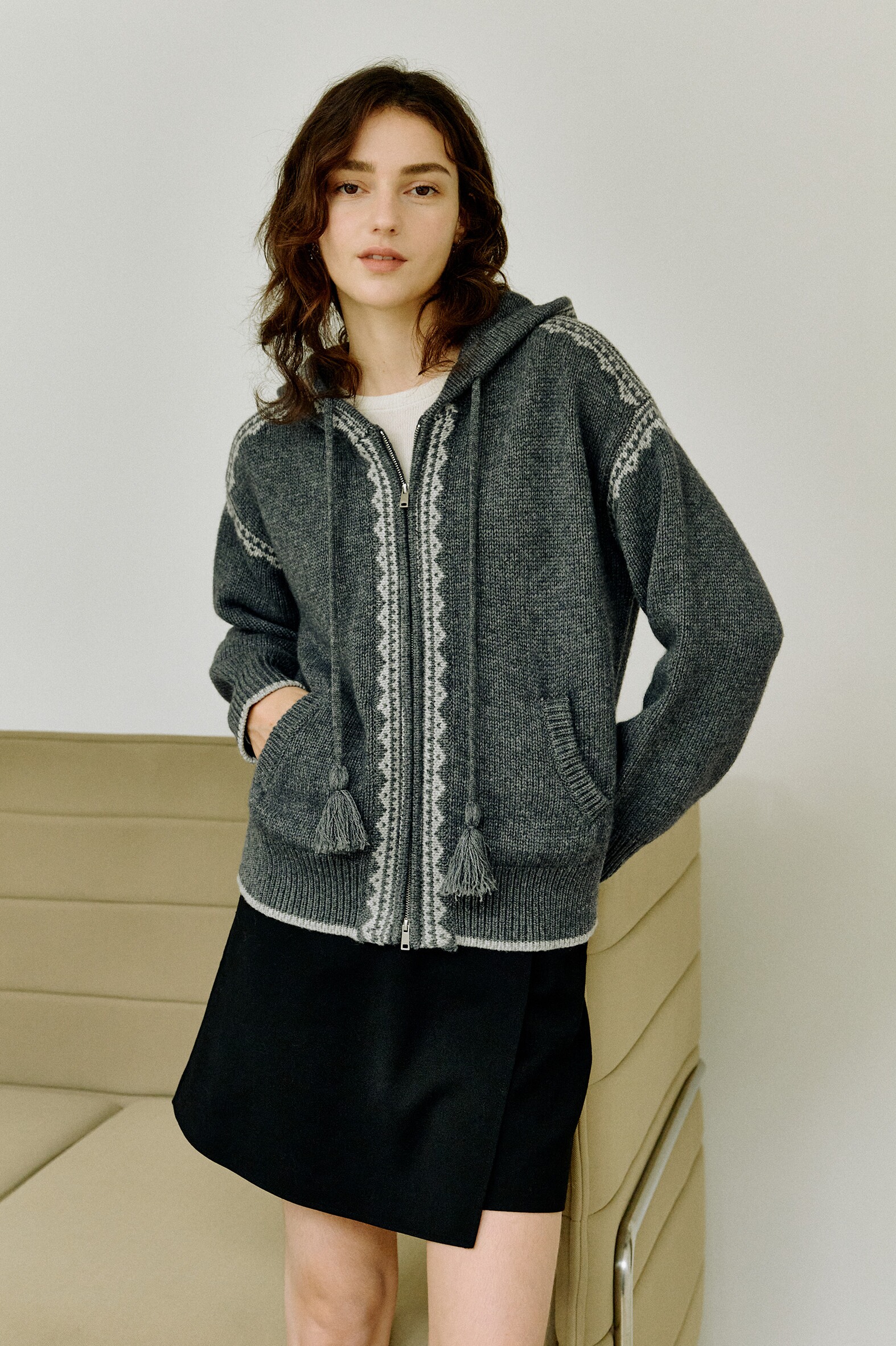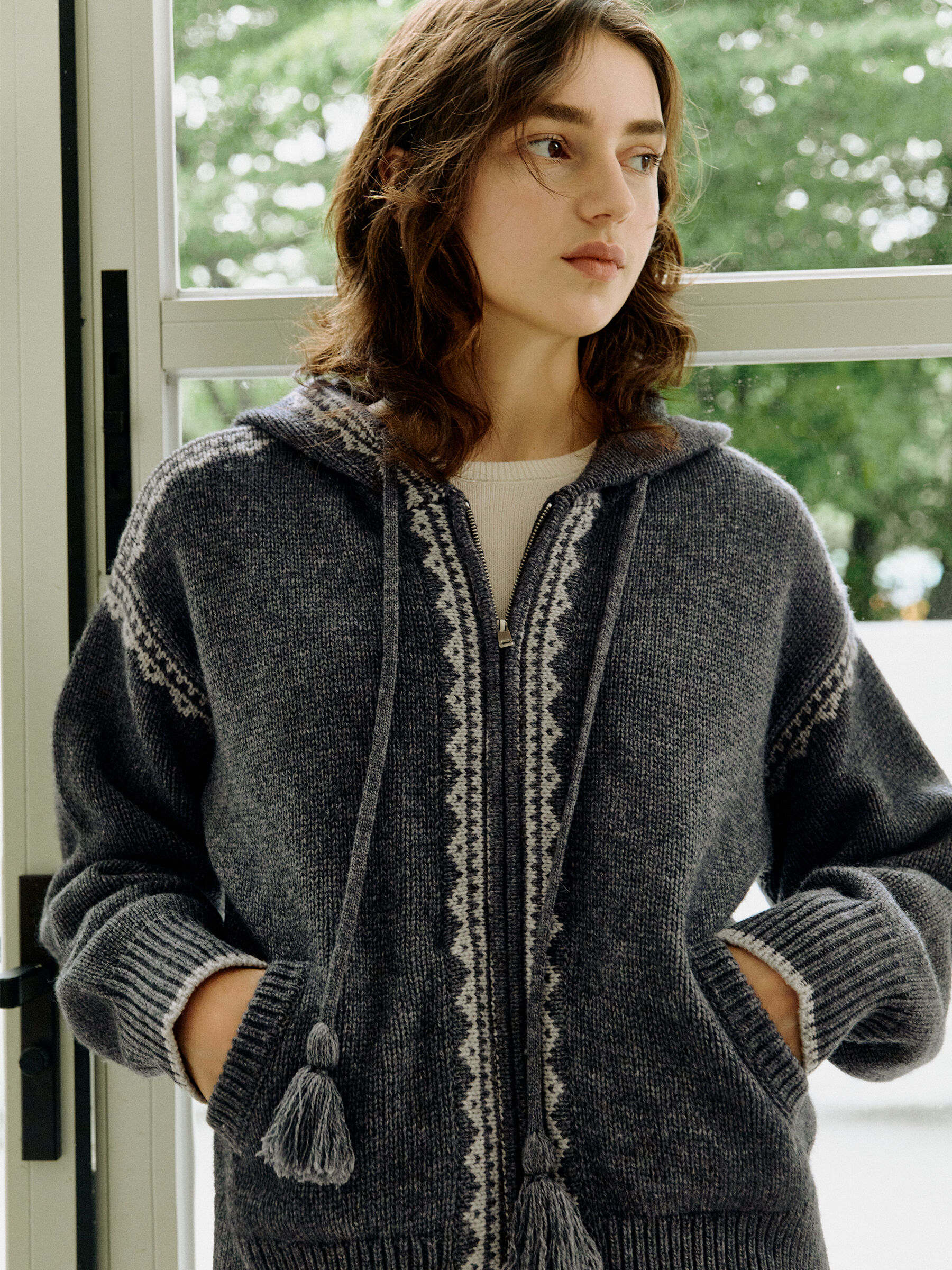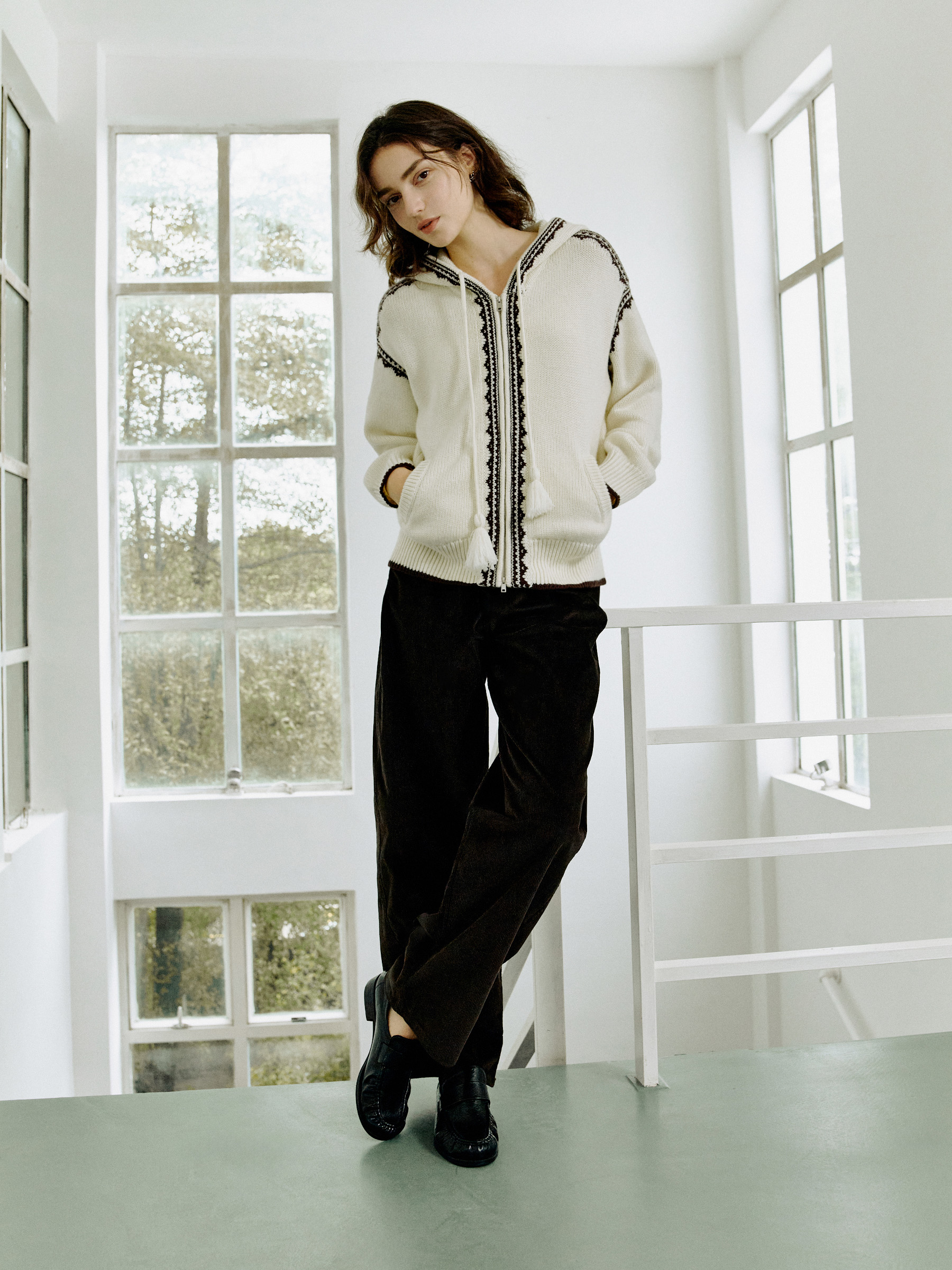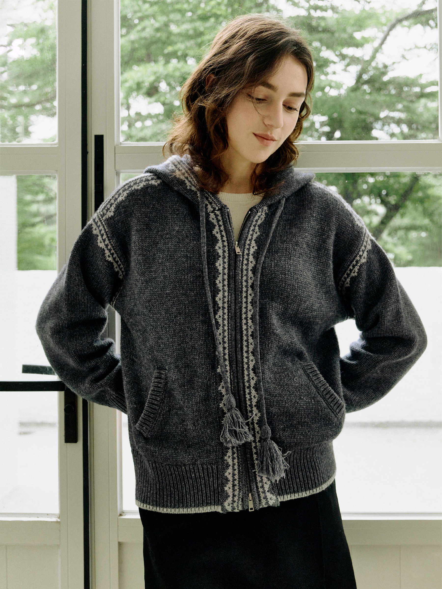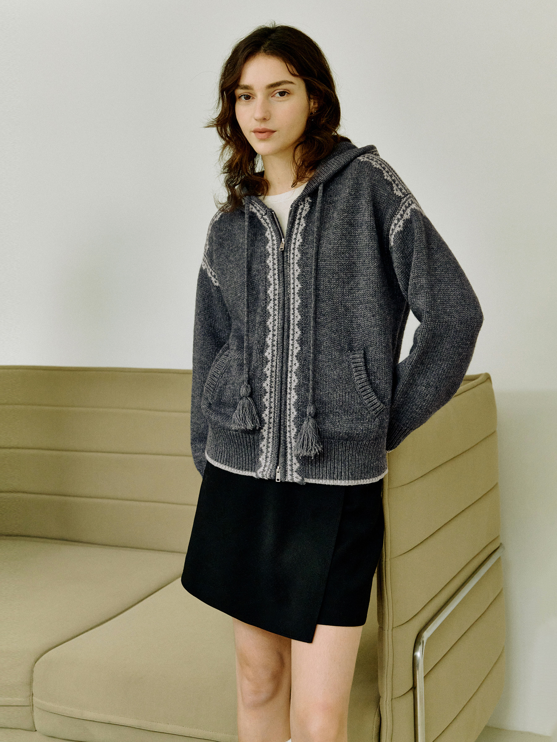 ForPoem 现货 25/FW原创设计复古费尔岛羊毛连帽拉链针织开衫外套