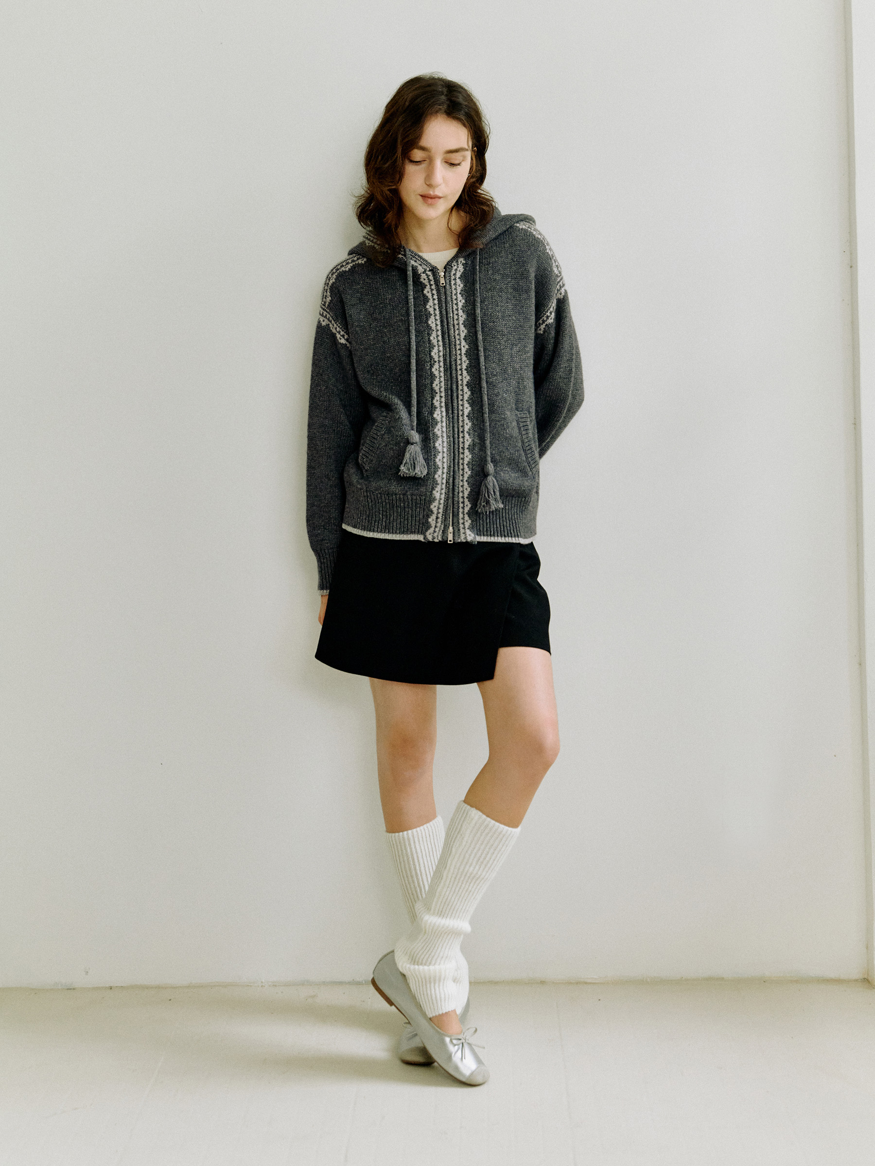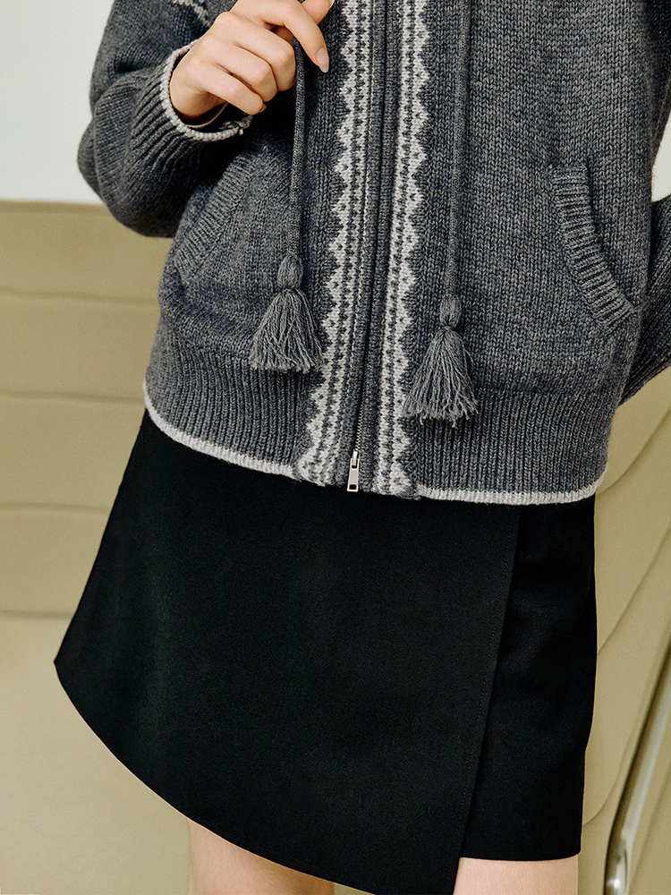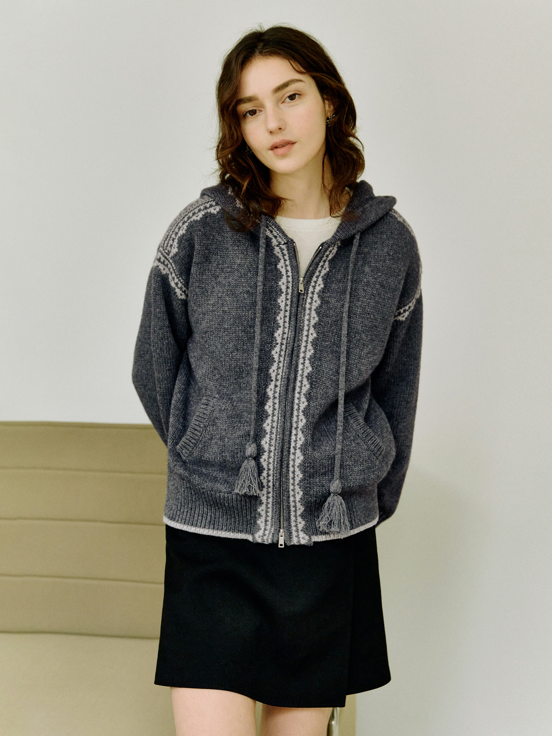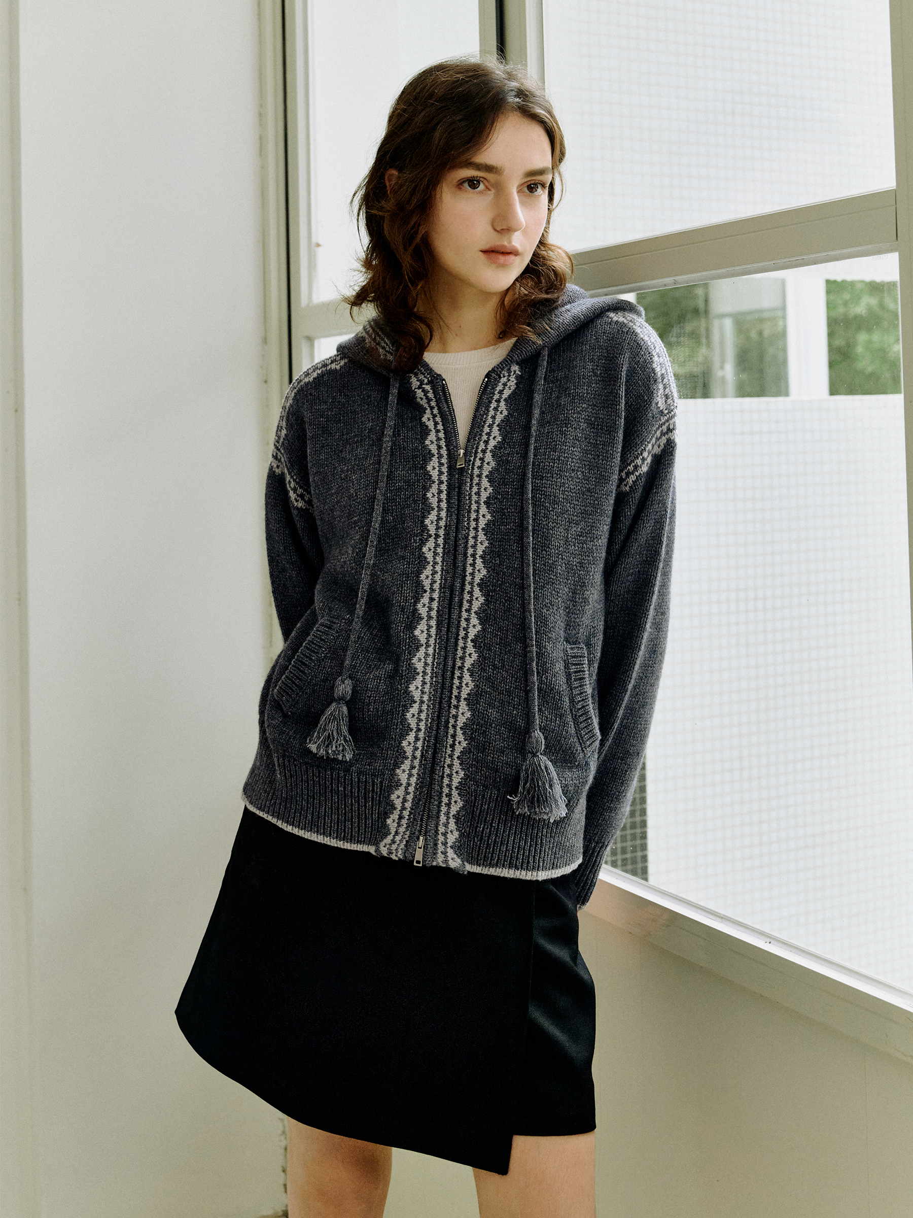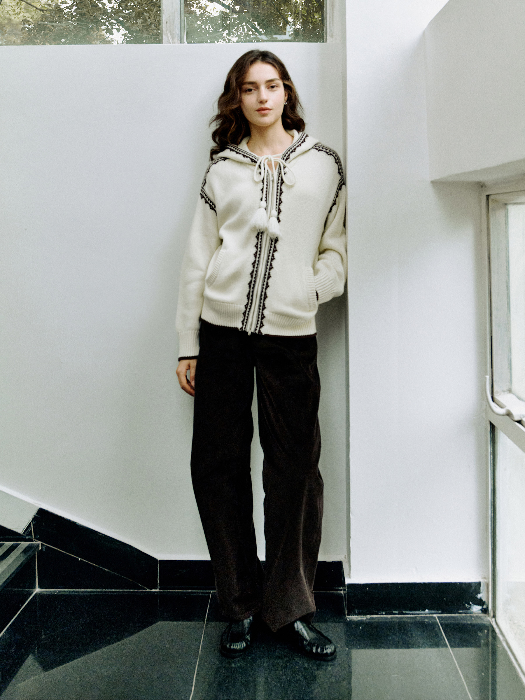 ForPoem 现货 25/FW原创设计复古费尔岛羊毛连帽拉链针织开衫外套