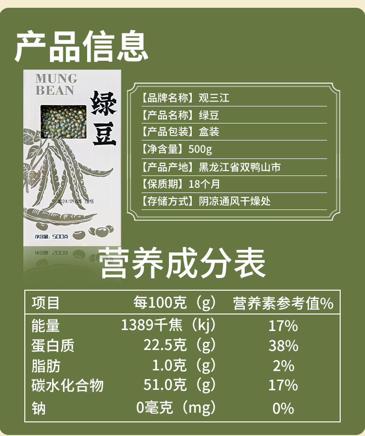 观三江东北精品绿豆 500g—rxs