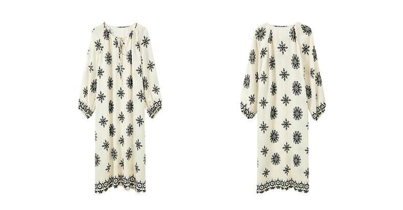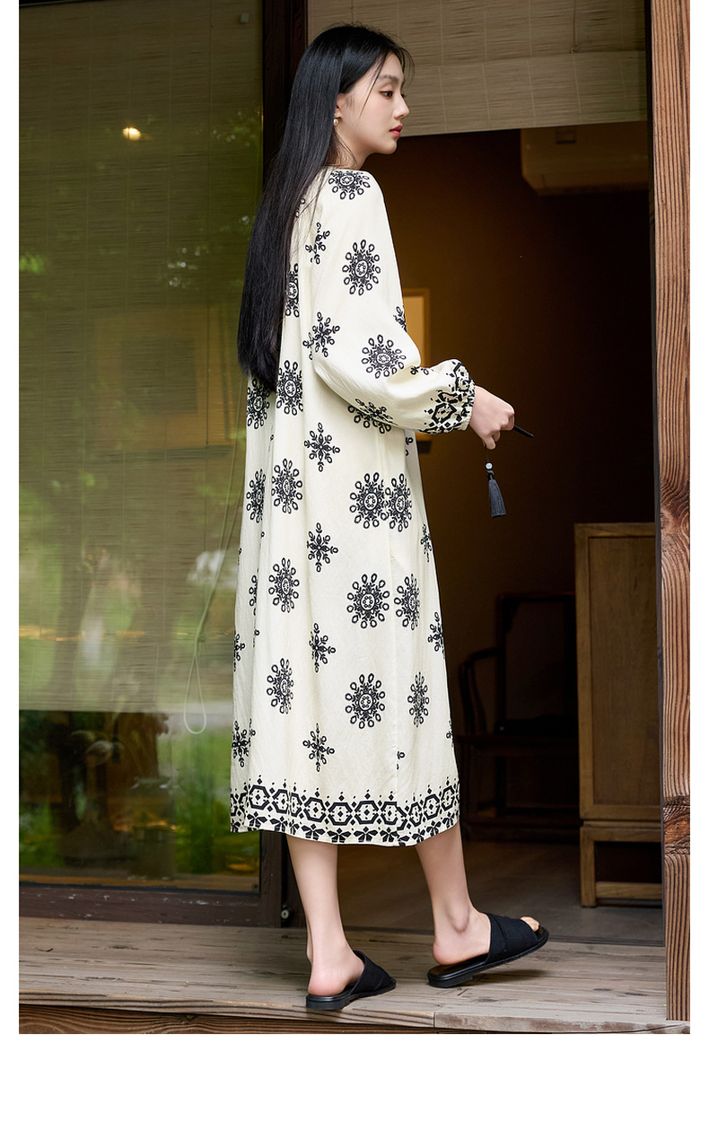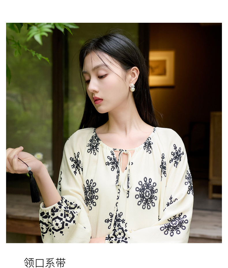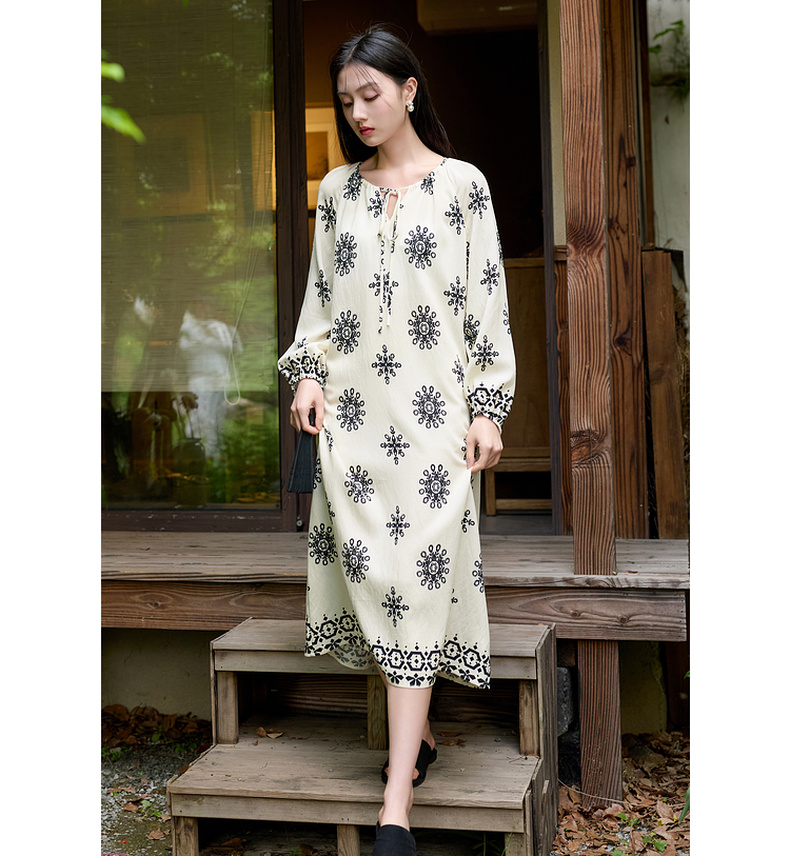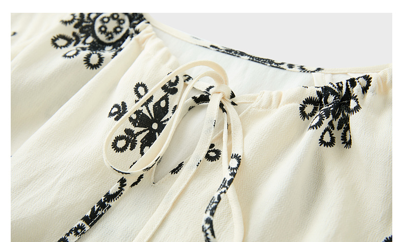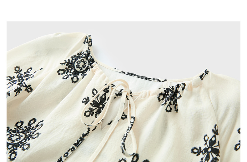 三彩2025秋季新款家居服睡裙印花连衣裙圆领系带长裙M