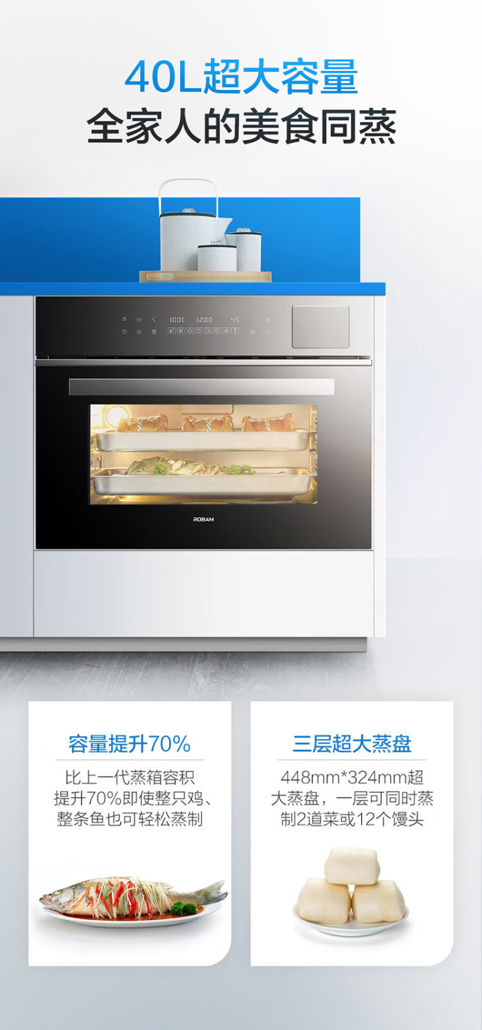 老板ZQB400-SQ229蒸箱40L大容量家用全屏触控外置水箱纯电蒸箱