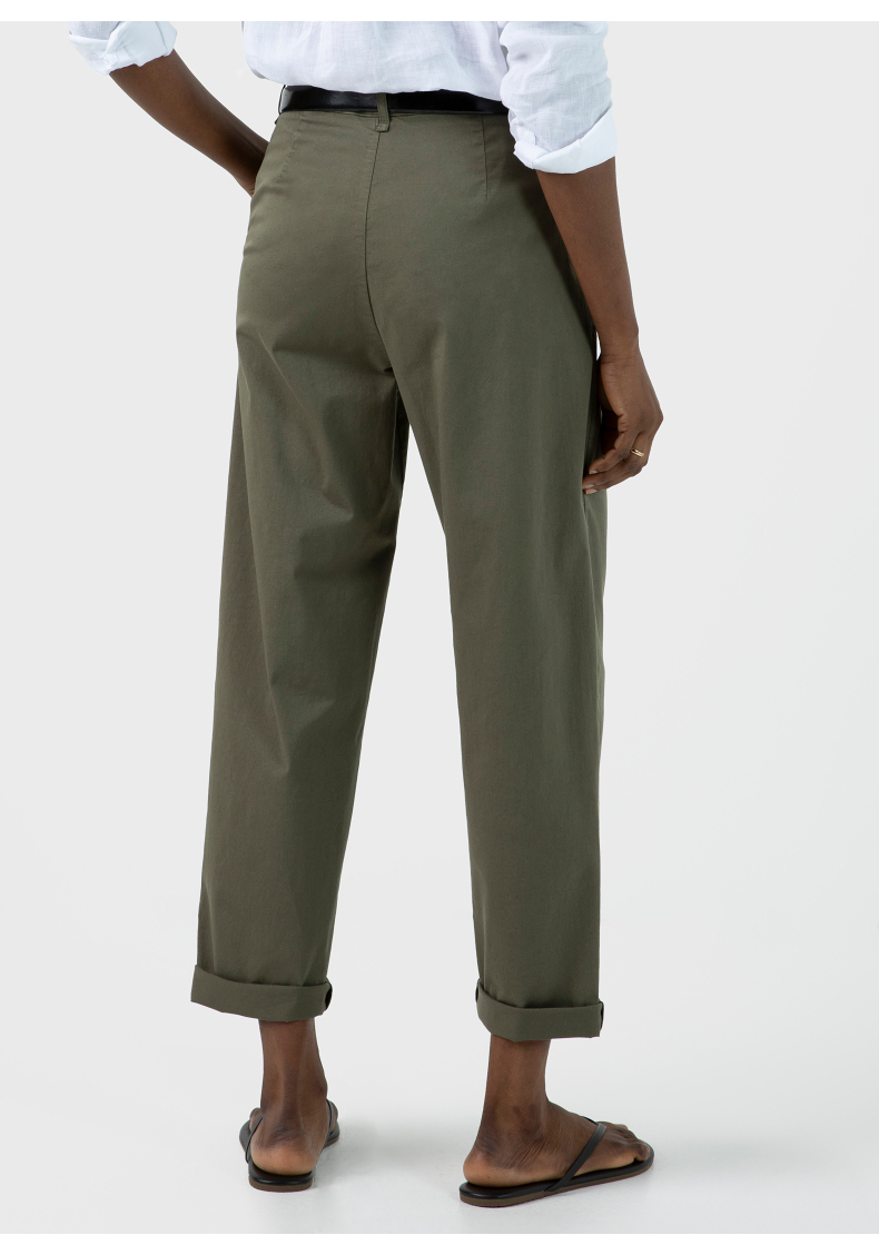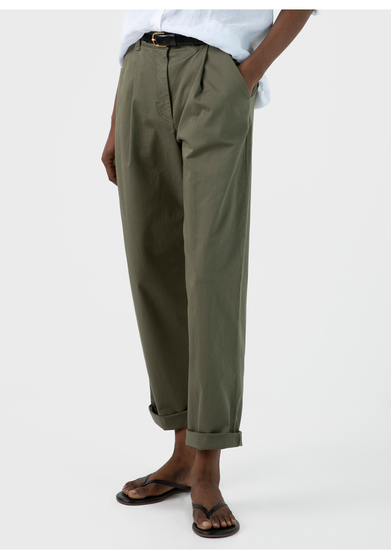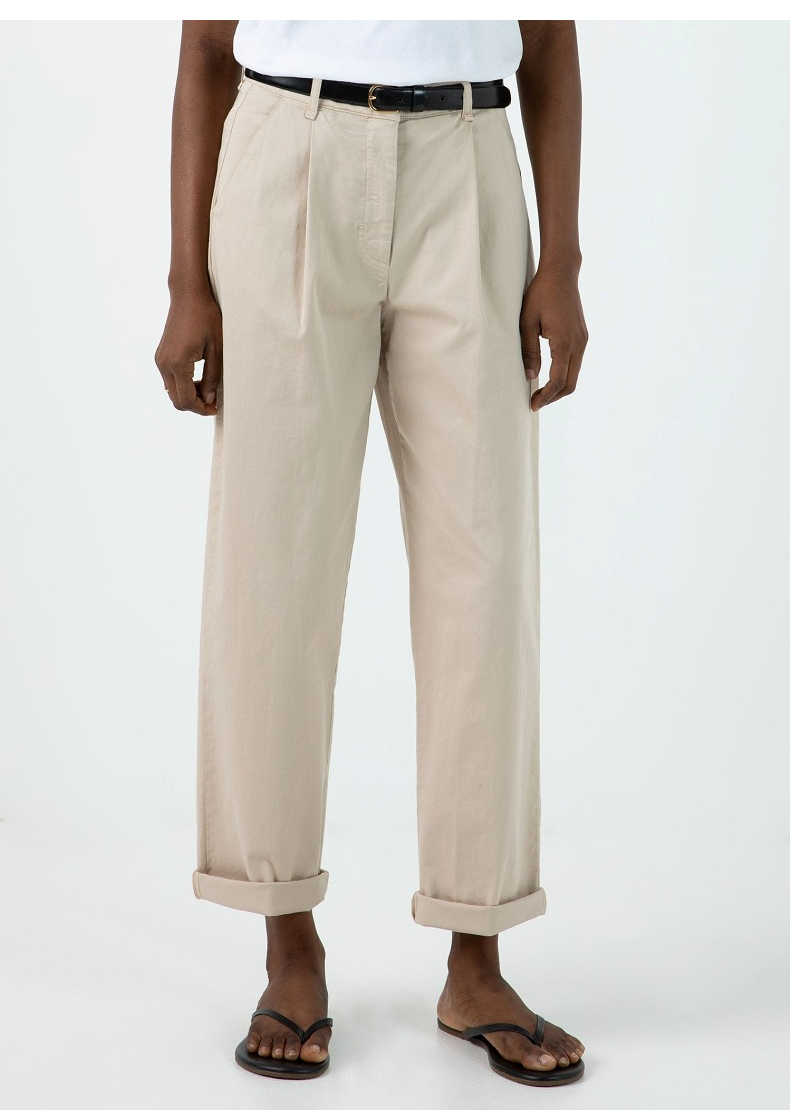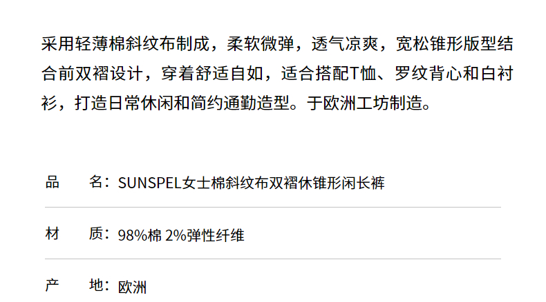 SUNSPEL女士秋冬斜纹双褶锥形休闲长裤全棉舒适休闲通勤