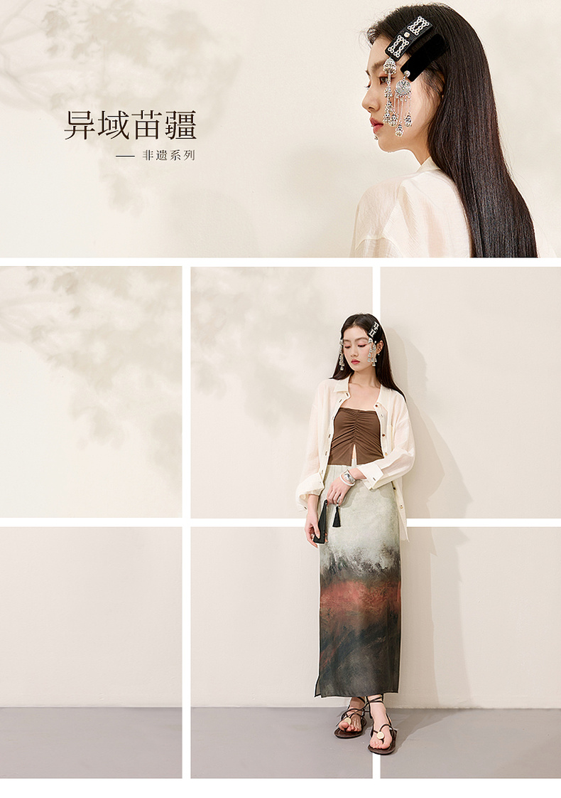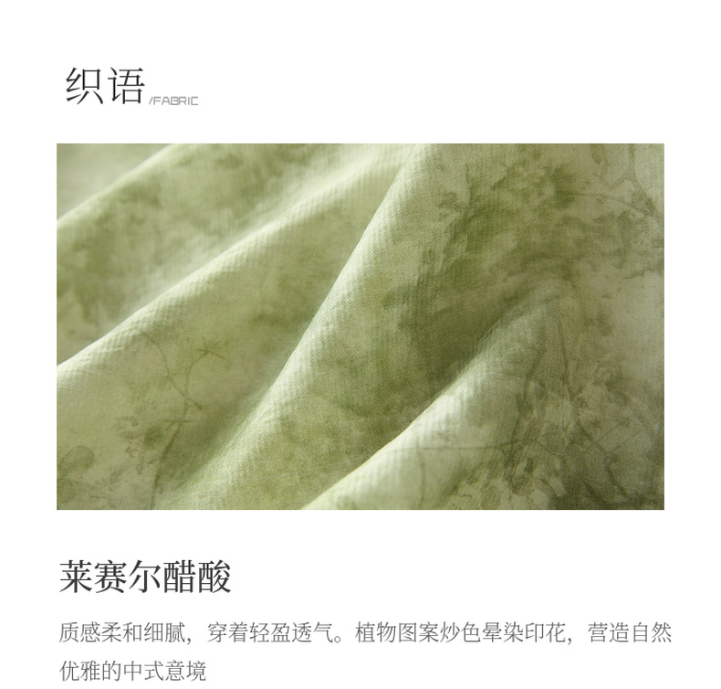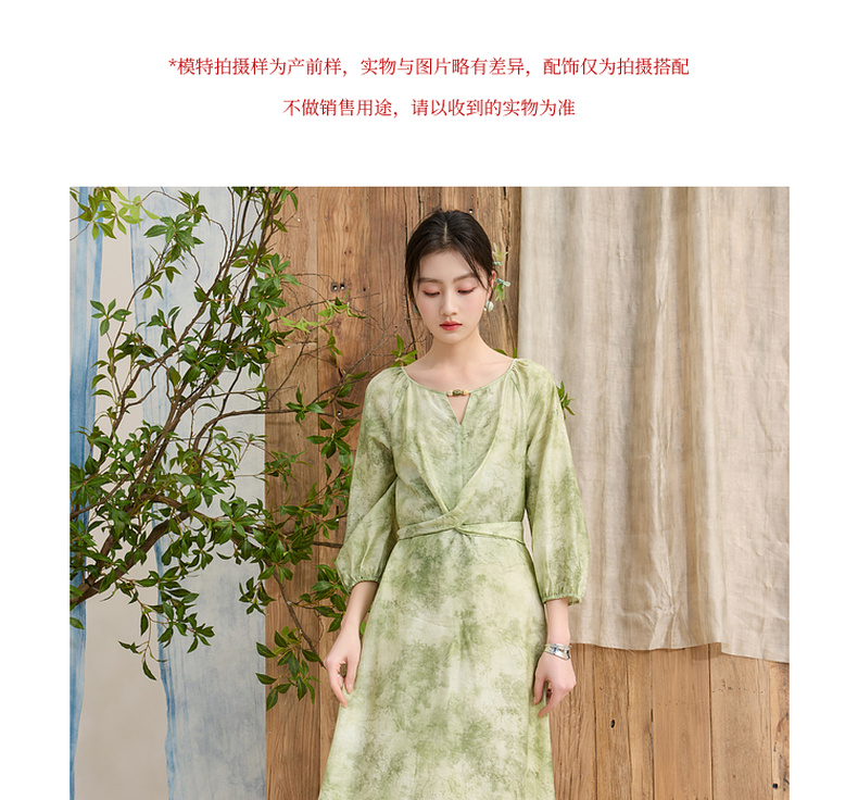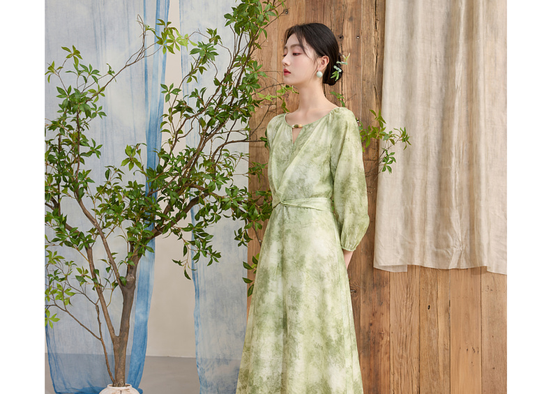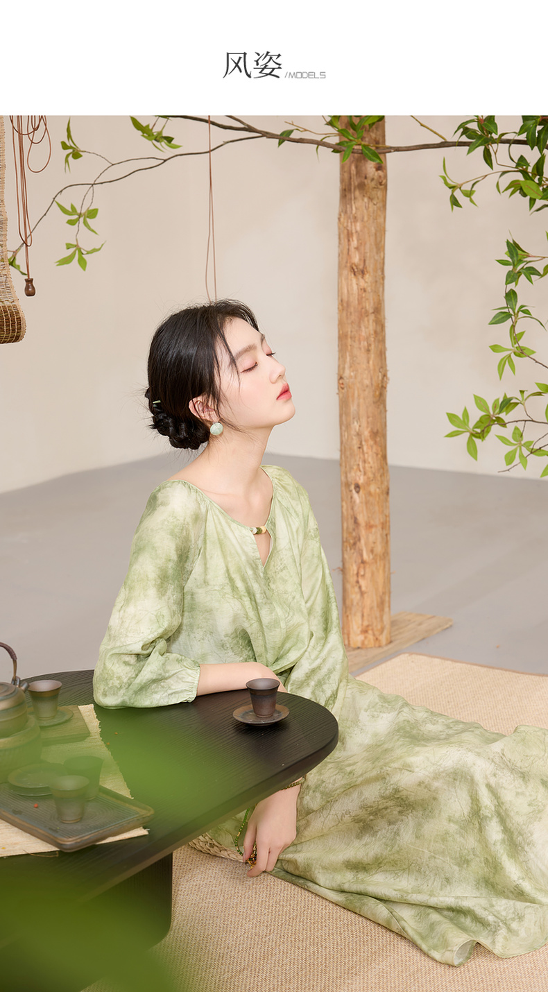 三彩【云影拂翠】2025春季新款新中式晕染印花长裙连衣裙插肩袖C