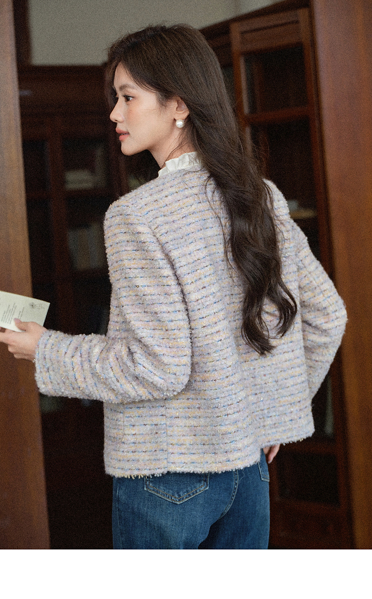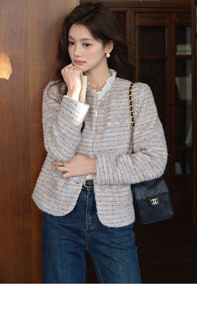 鹿向南「阑珊星光」紫色小香风短外套女2025秋冬新款轻奢气质上衣L57926