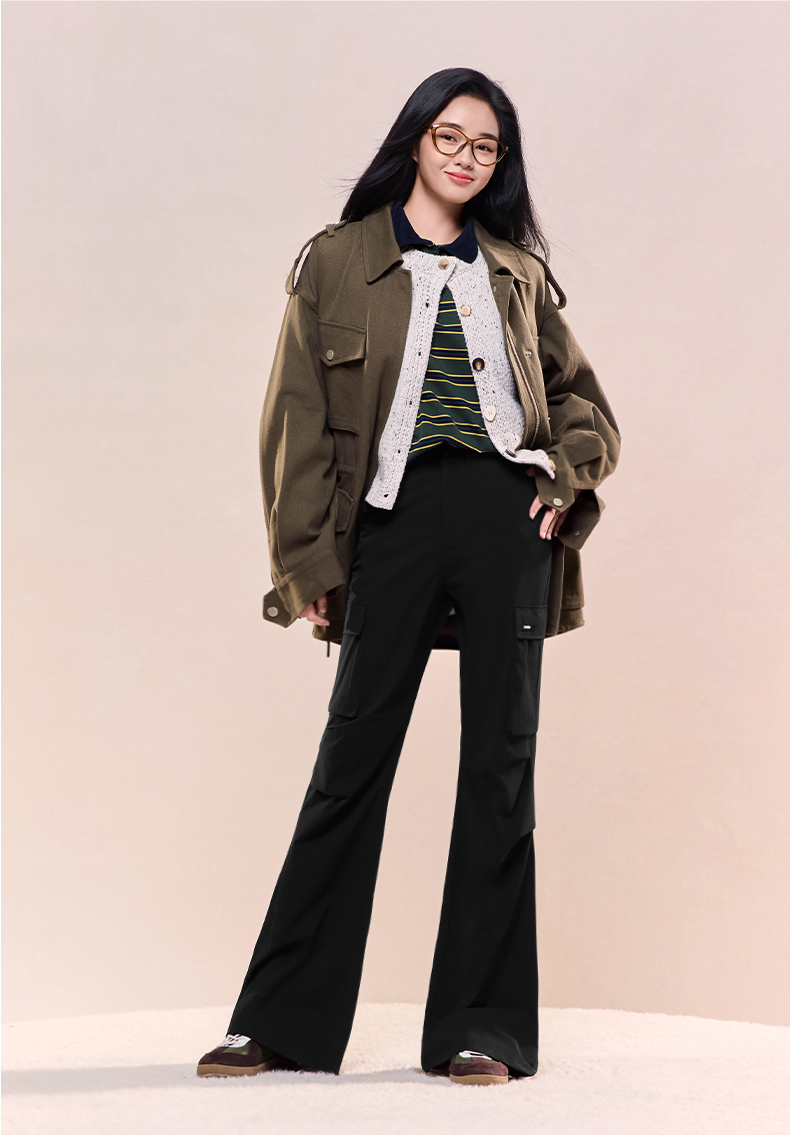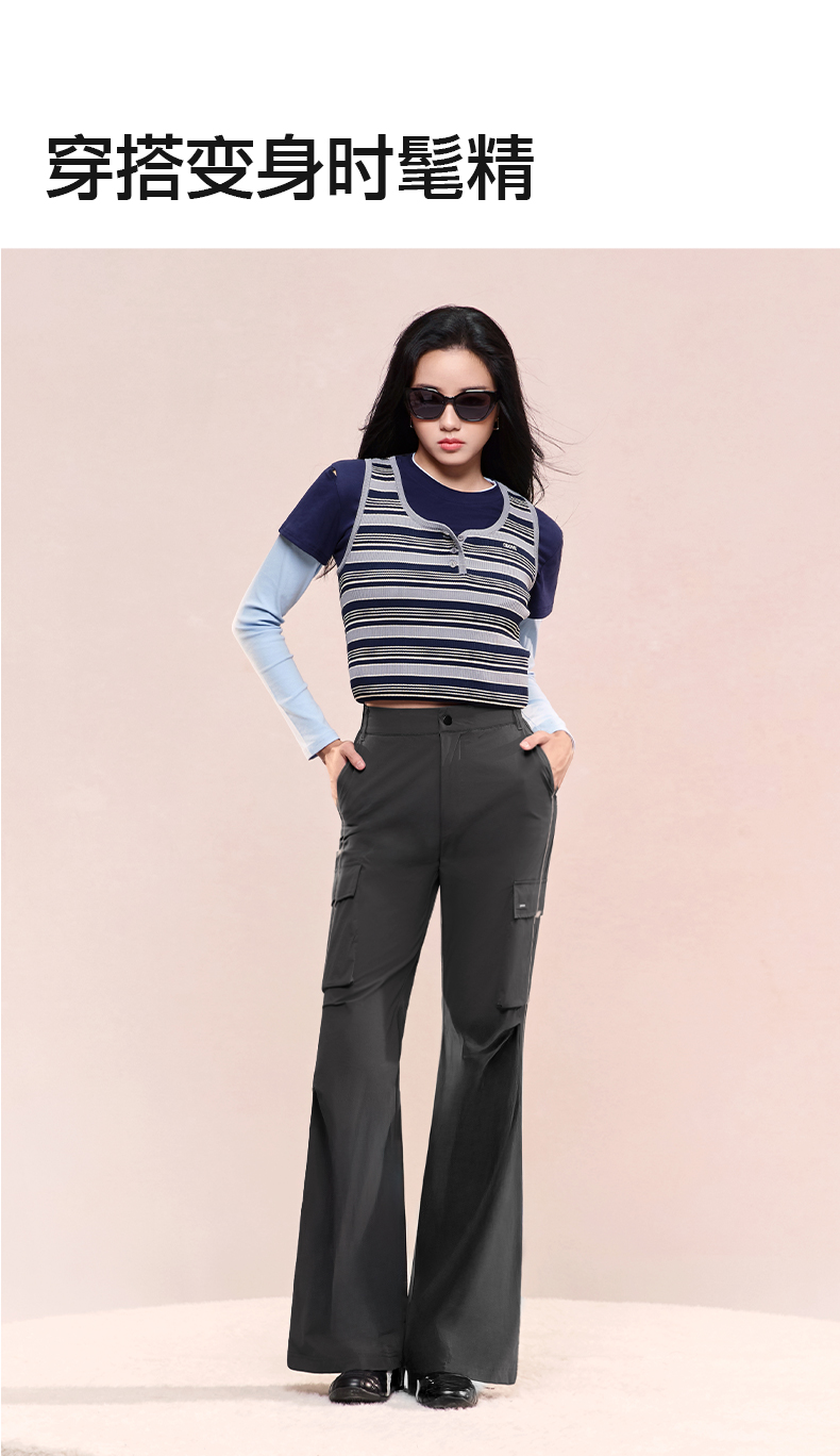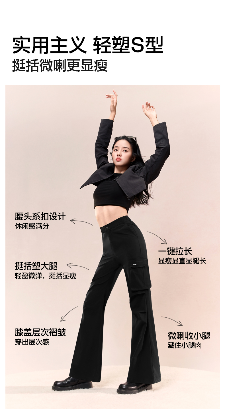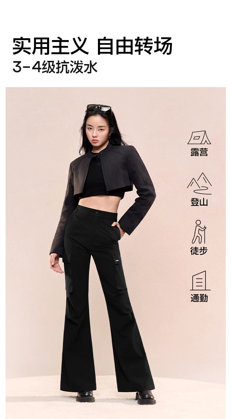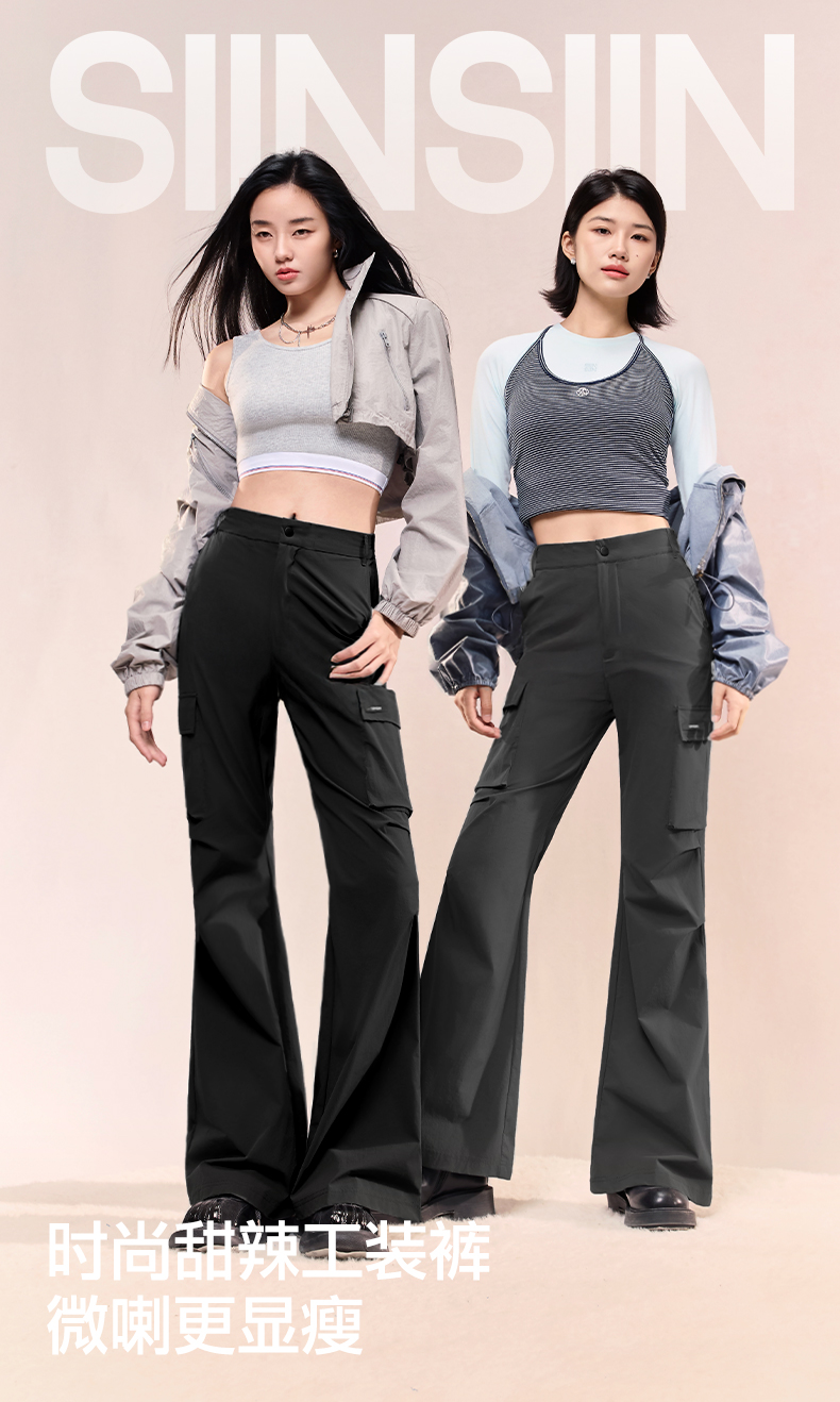【拍2件赠保暖套装】SIINSIIN微喇工装裤女新款显瘦秋季登山运动速干运动喇叭裤