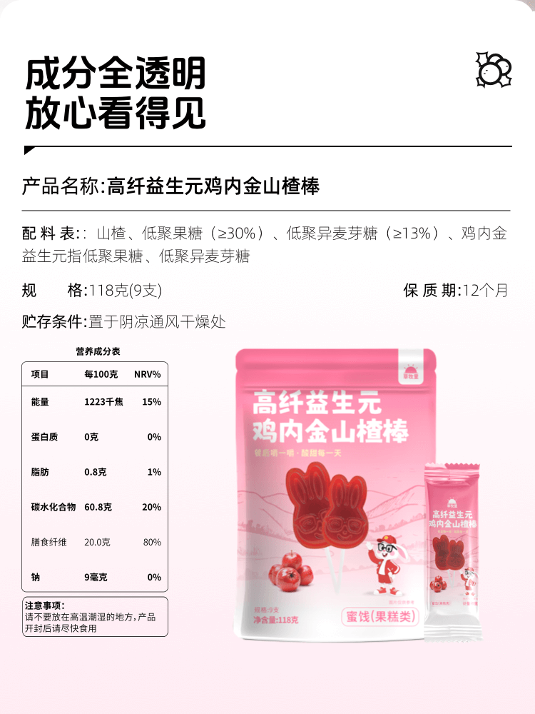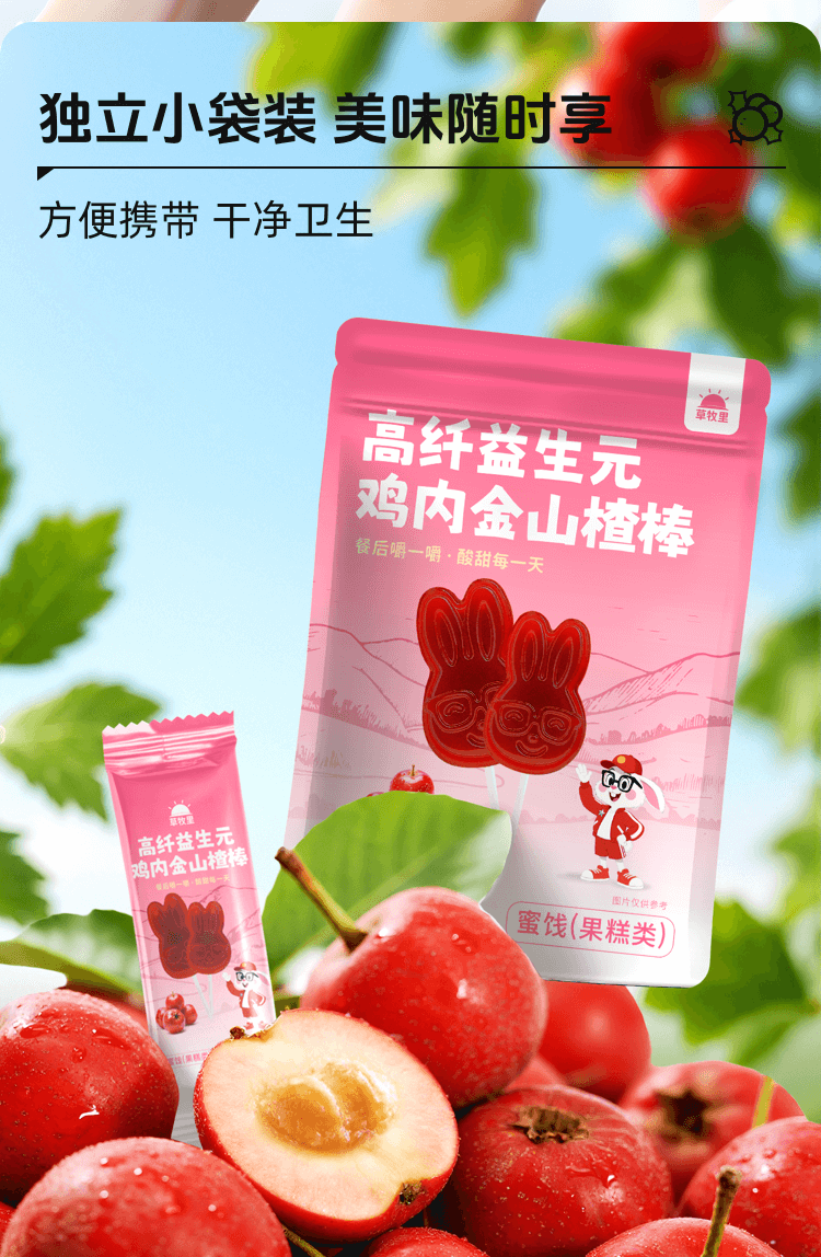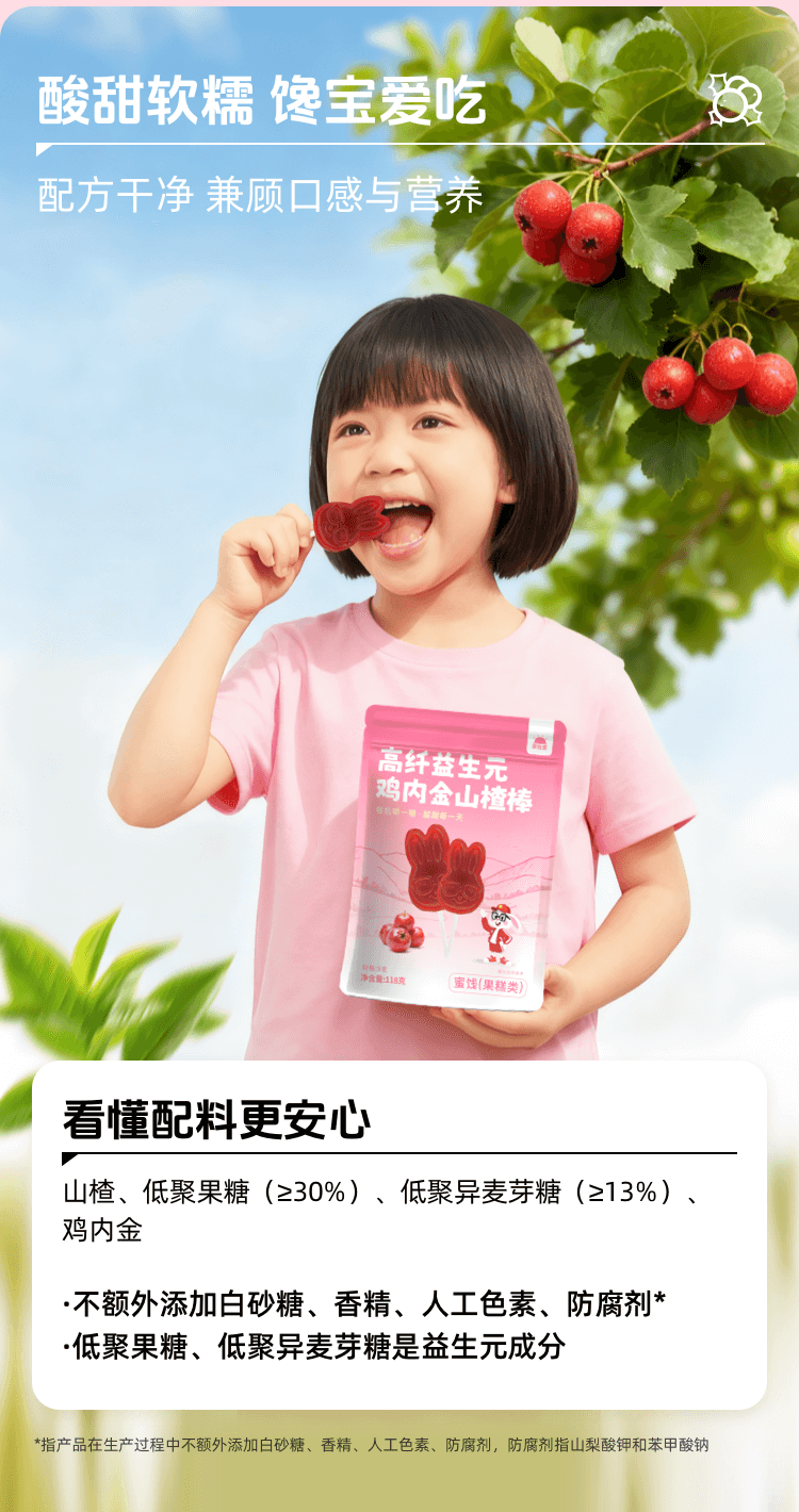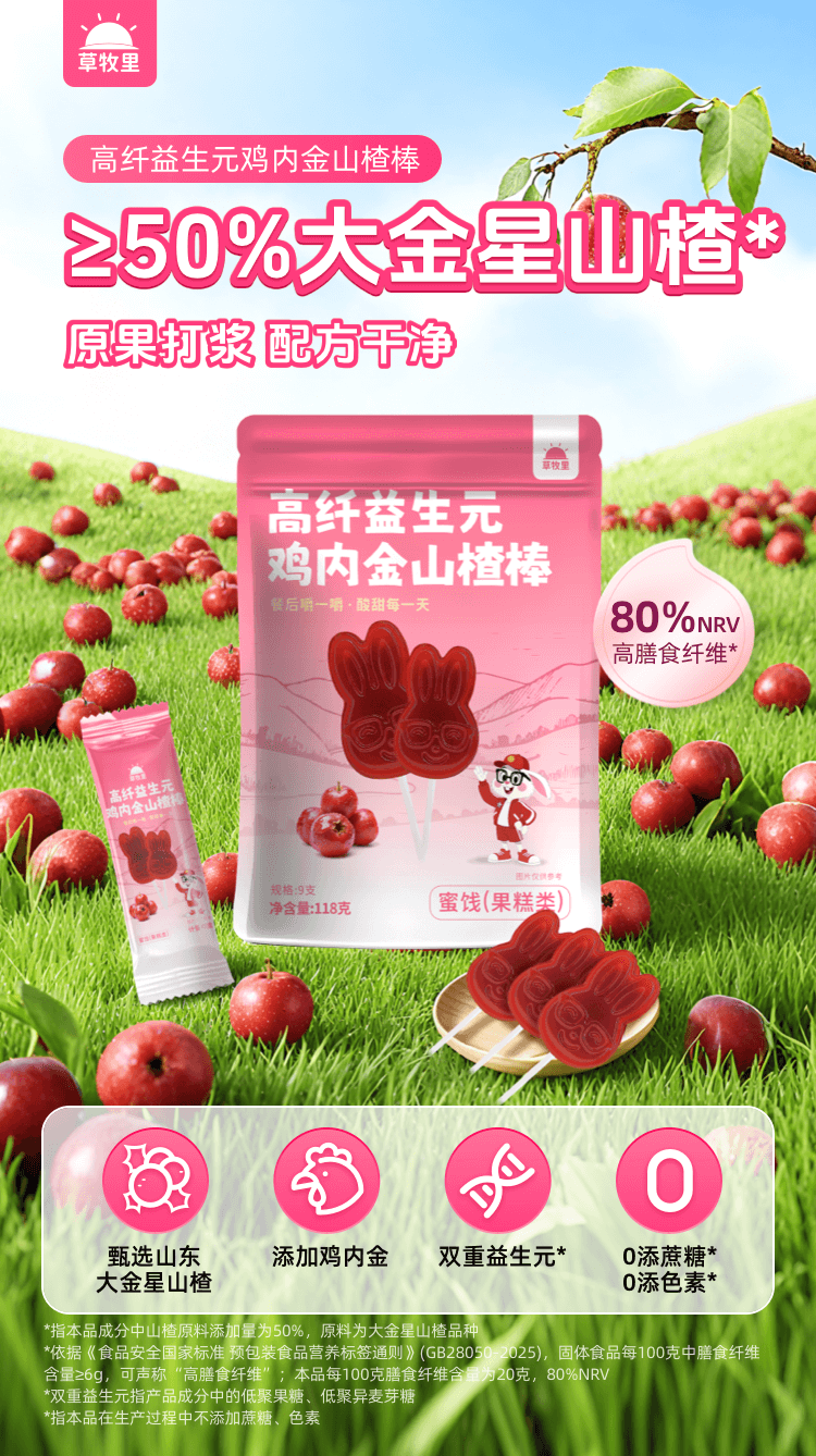 【儿童食品食疗用户不可食用】草牧里 高纤益生元鸡内金山楂棒 9支/袋 酸甜软糯配方干净