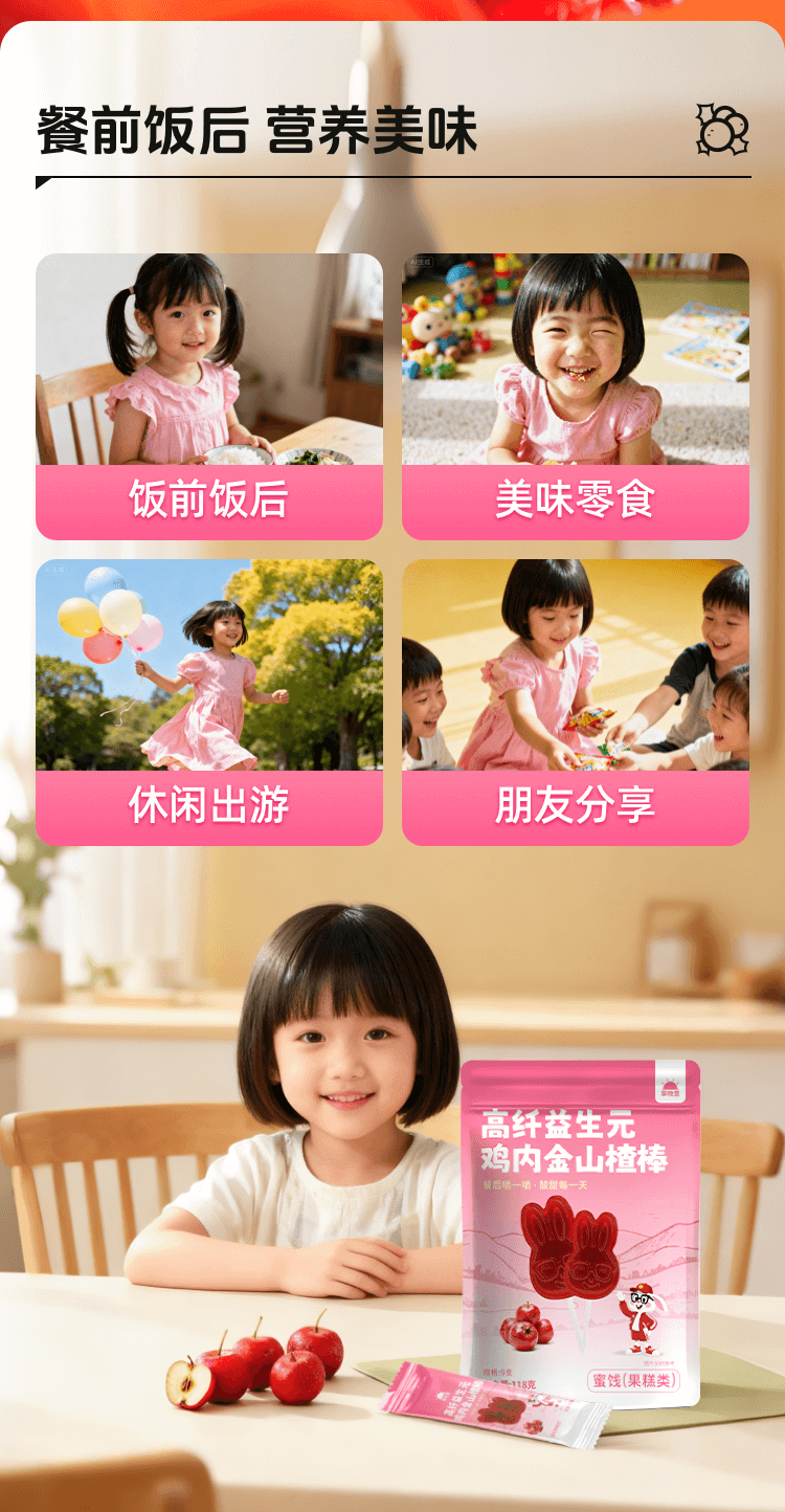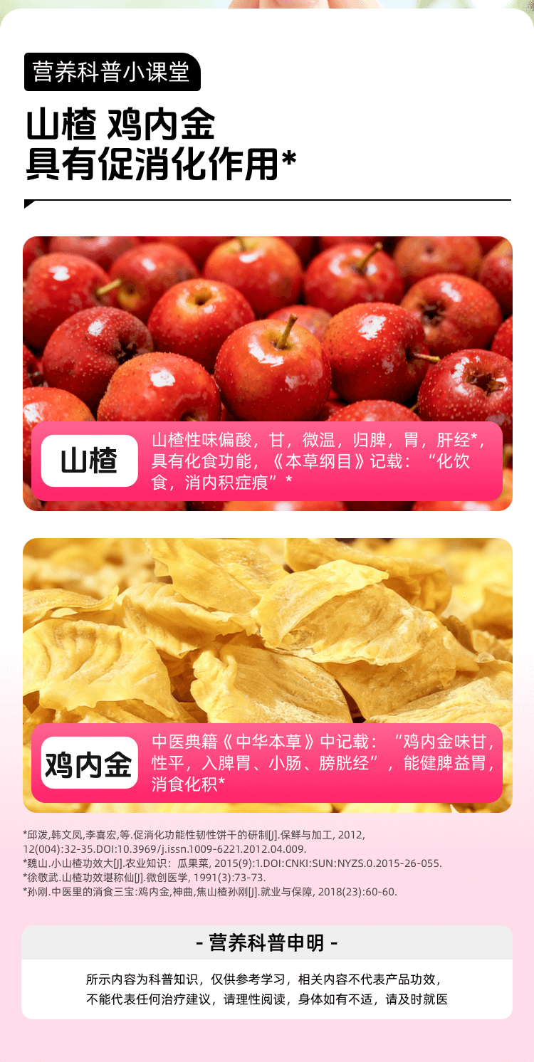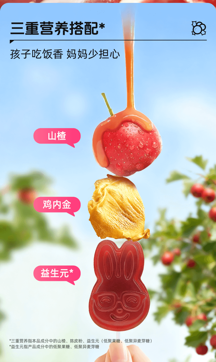 【儿童食品食疗用户不可食用】草牧里 高纤益生元鸡内金山楂棒 9支/袋 酸甜软糯配方干净
