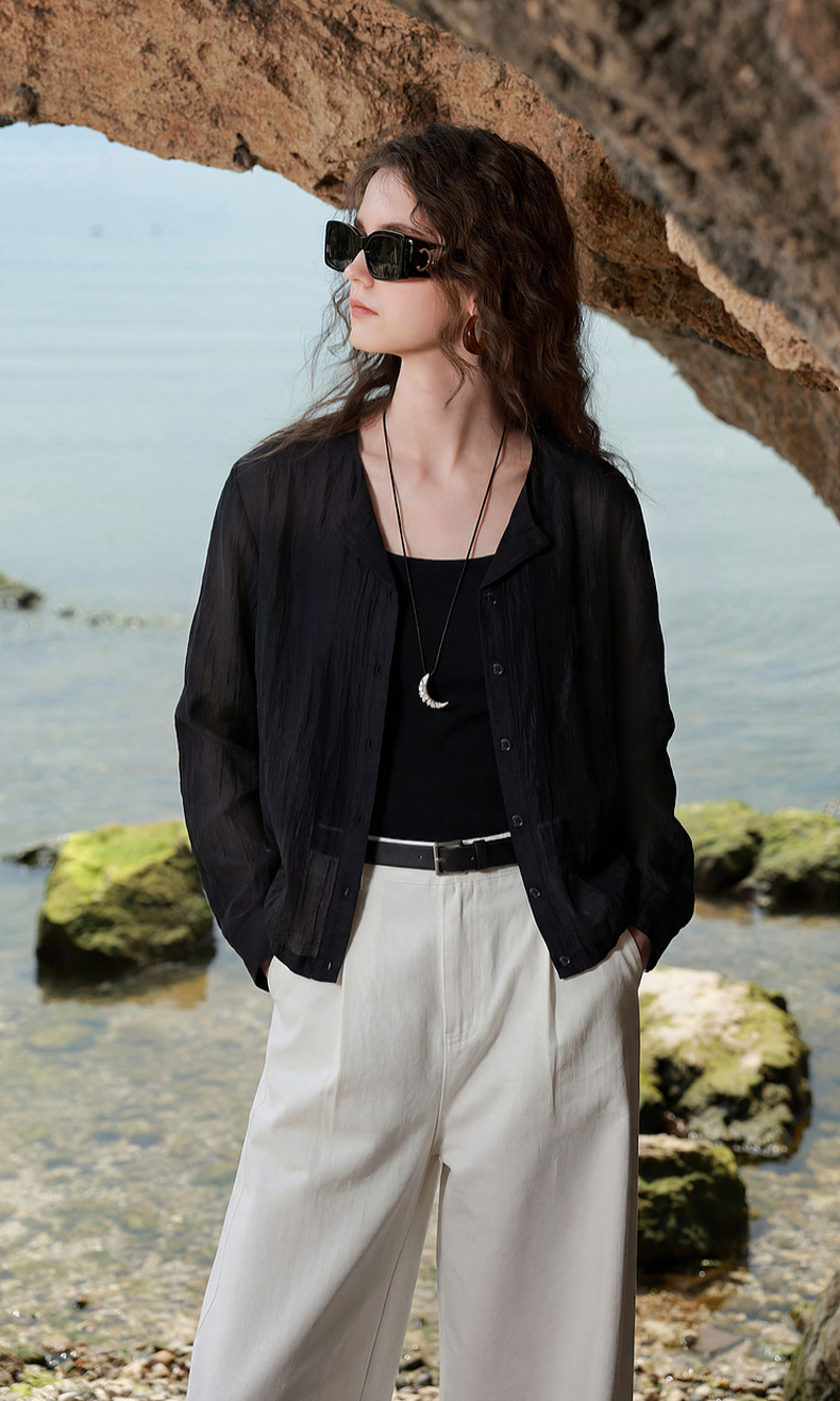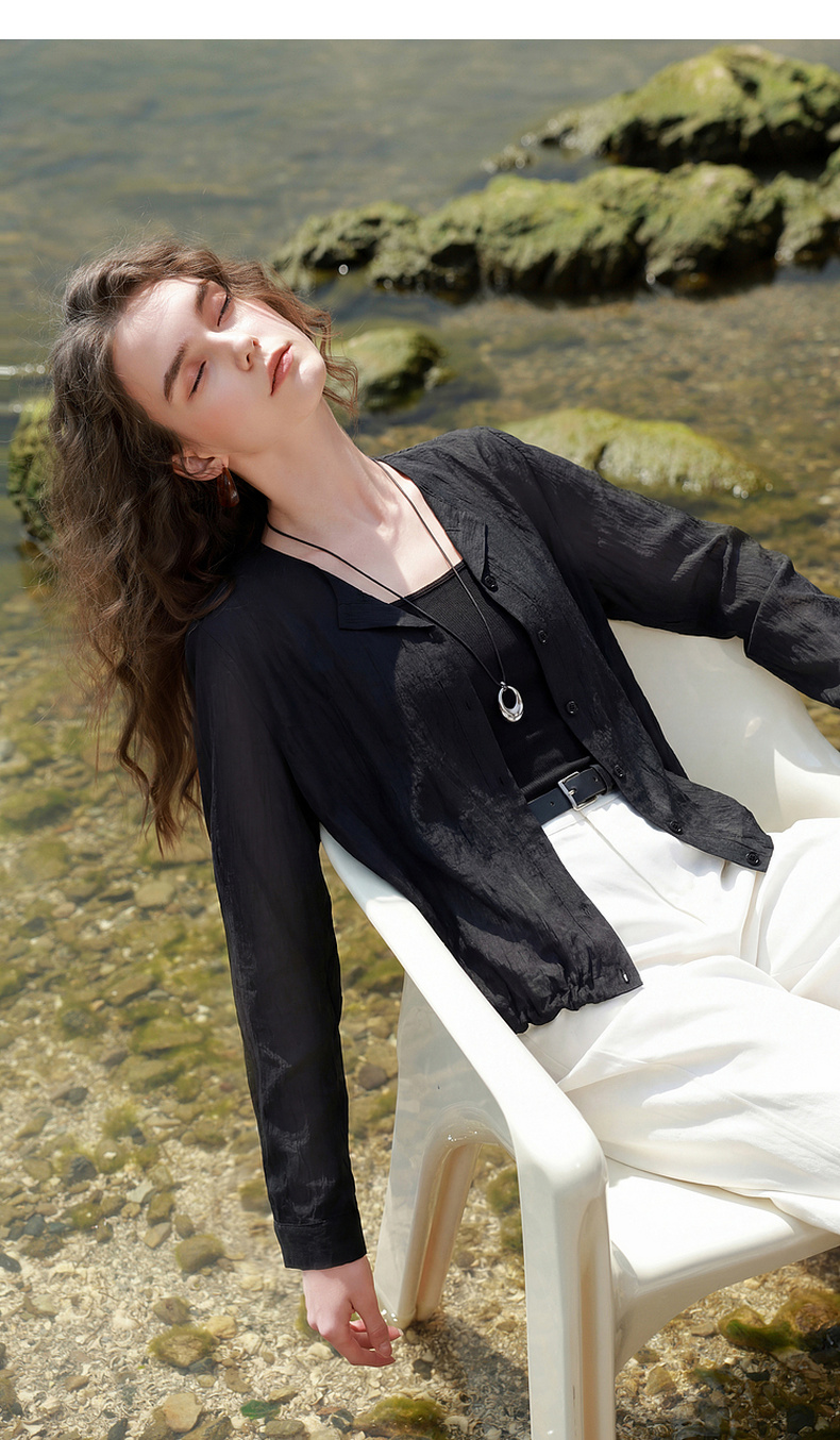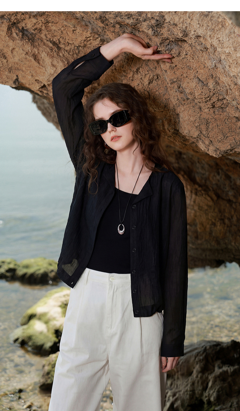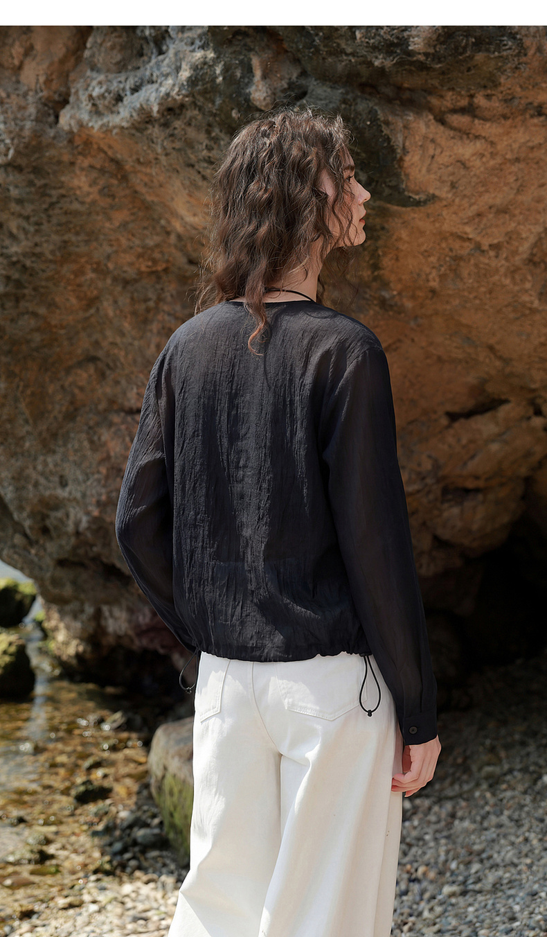 【醋酸】三彩2026夏季新款轻奢短外套开衫宽松轻薄长袖上衣M