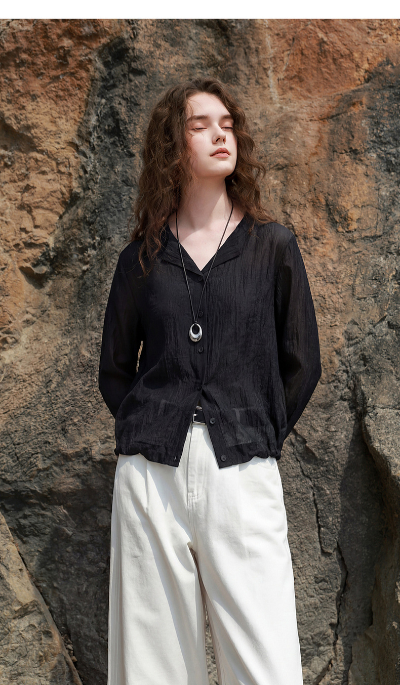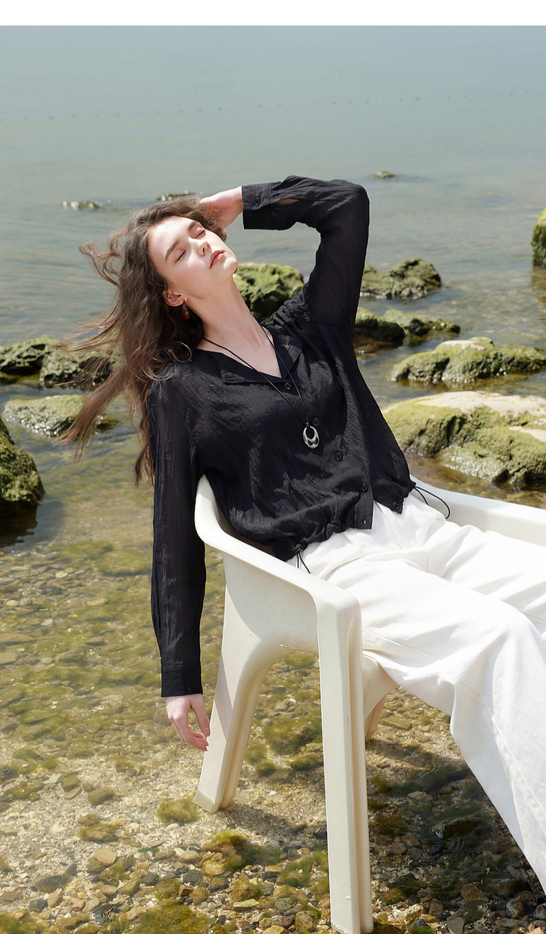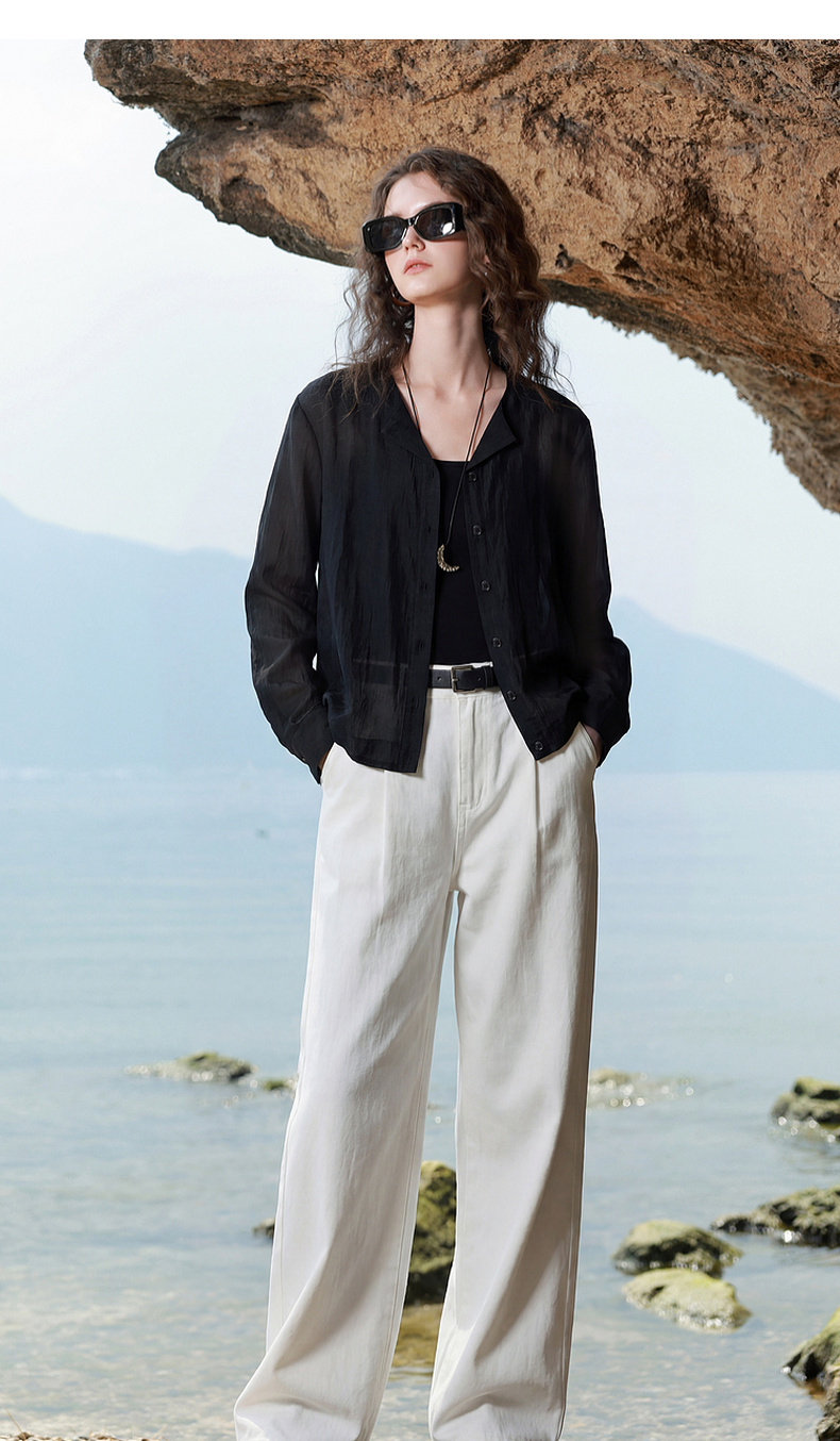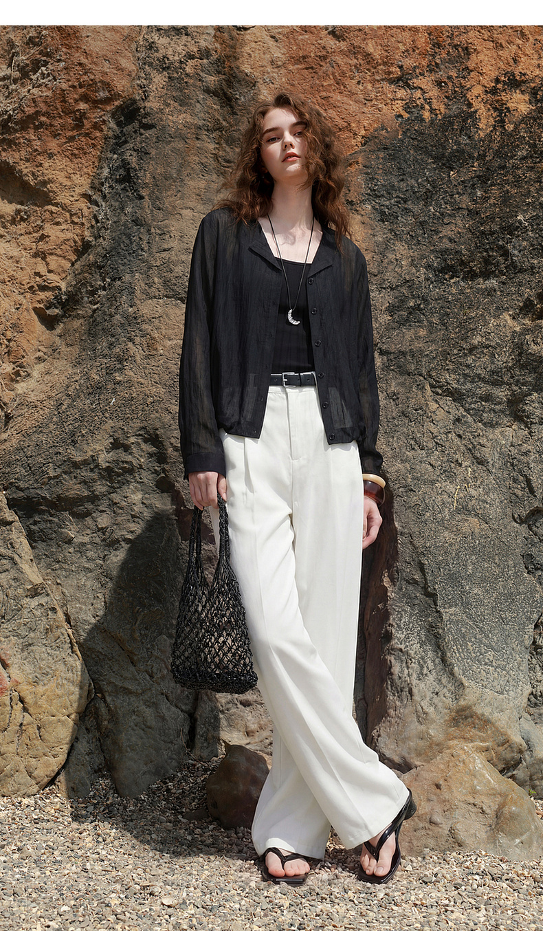 【醋酸】三彩2026夏季新款轻奢短外套开衫宽松轻薄长袖上衣M